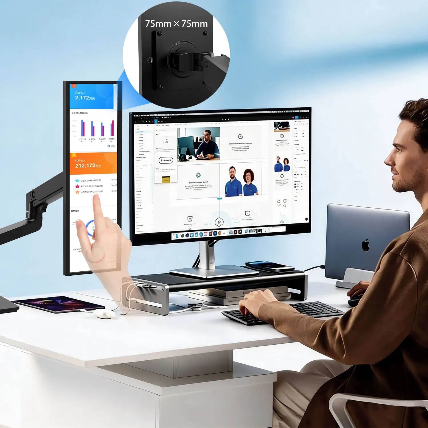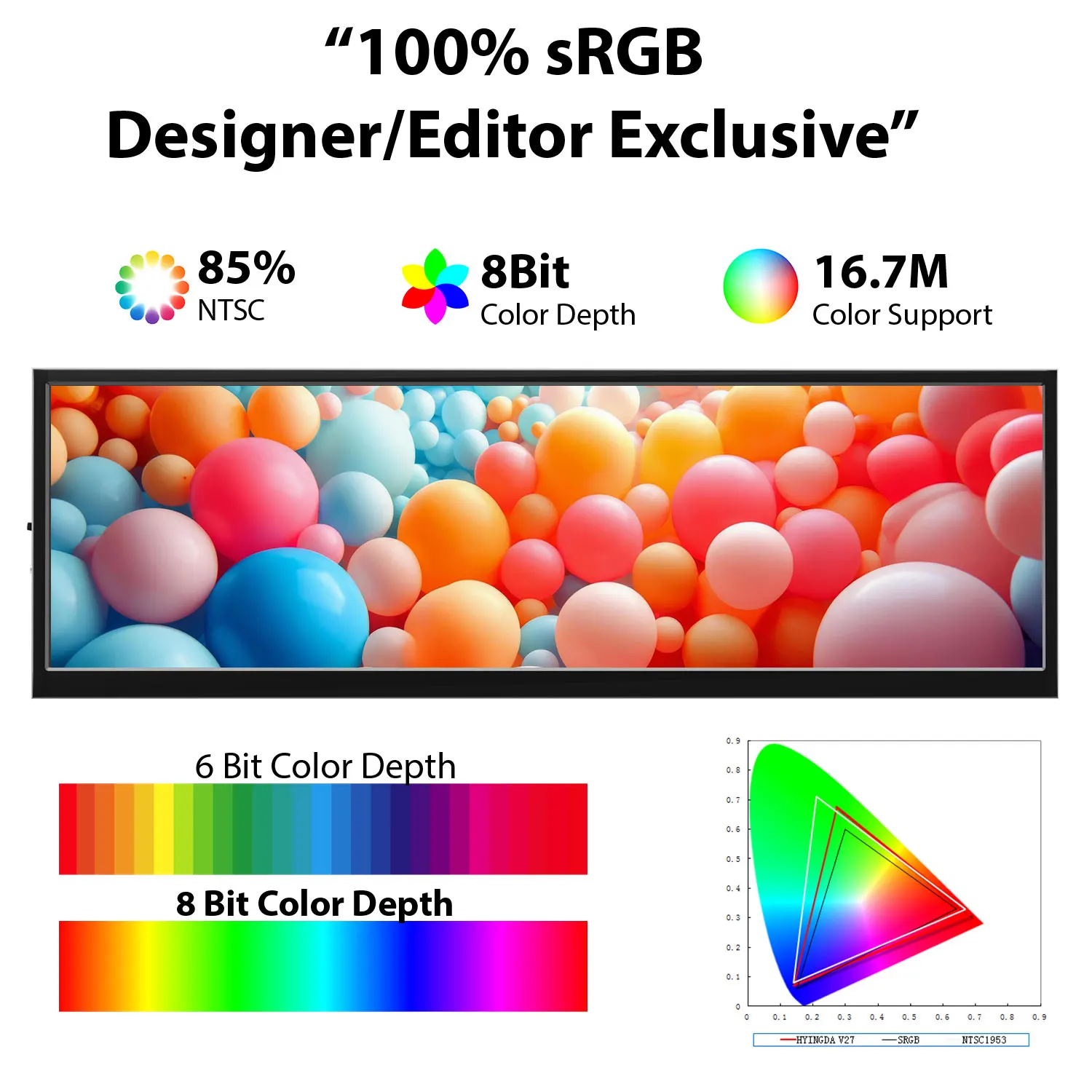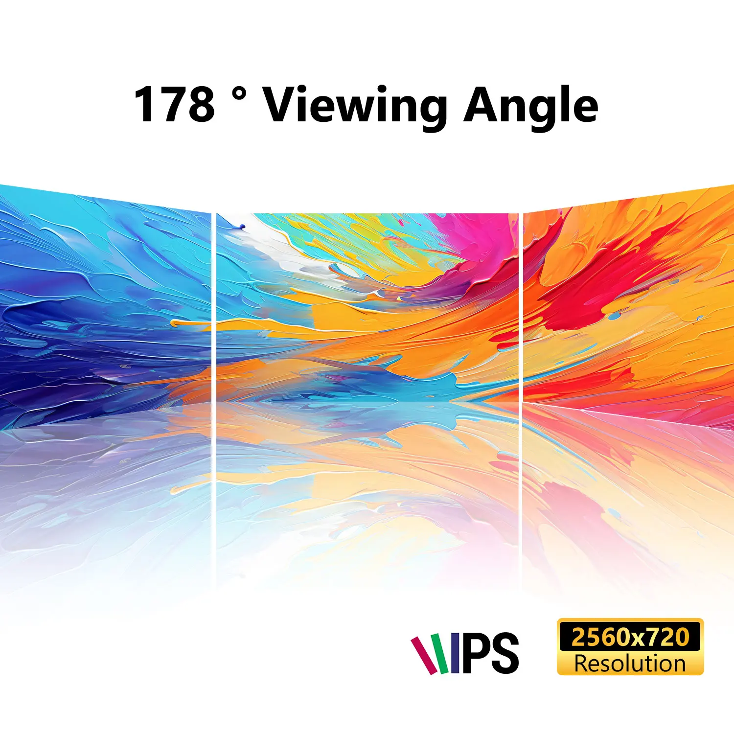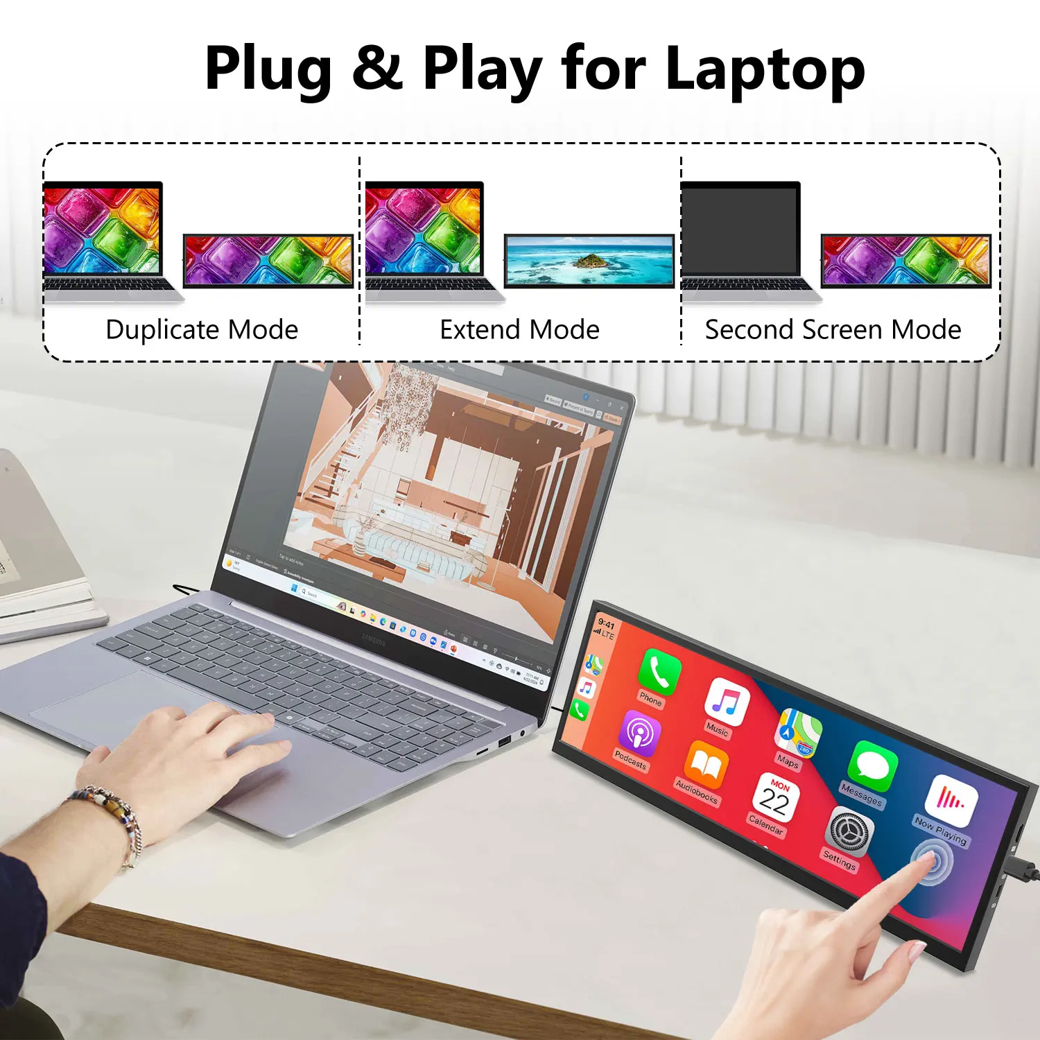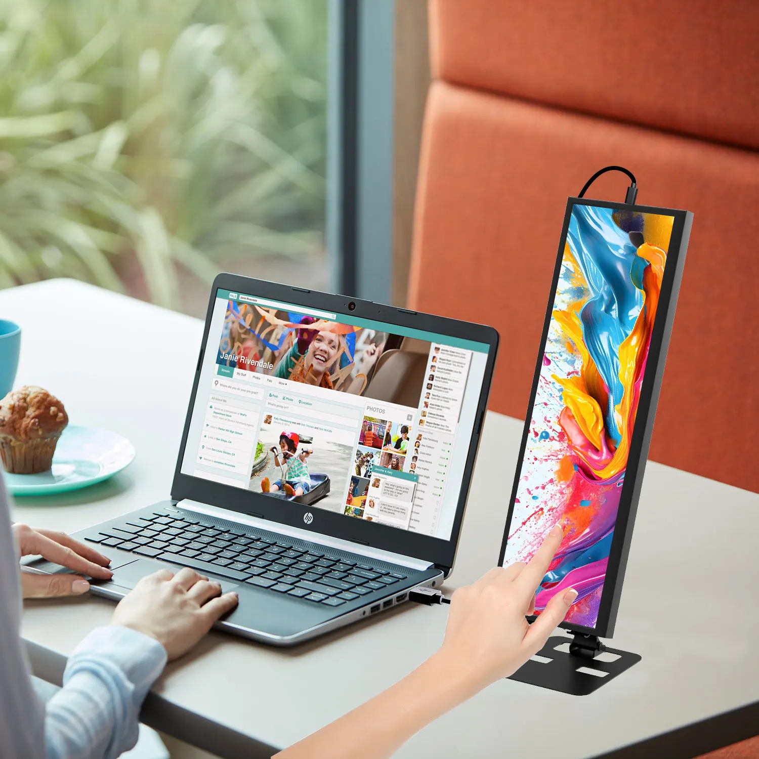 - > Monitor de Barra Esticada Touchscreen 2K de 14,5 Polegadas 2560x720 IPS LCD, Entrada USB-C, Tela Secundária Sensível ao Toque para Gabinete de PC, CPU, GPU