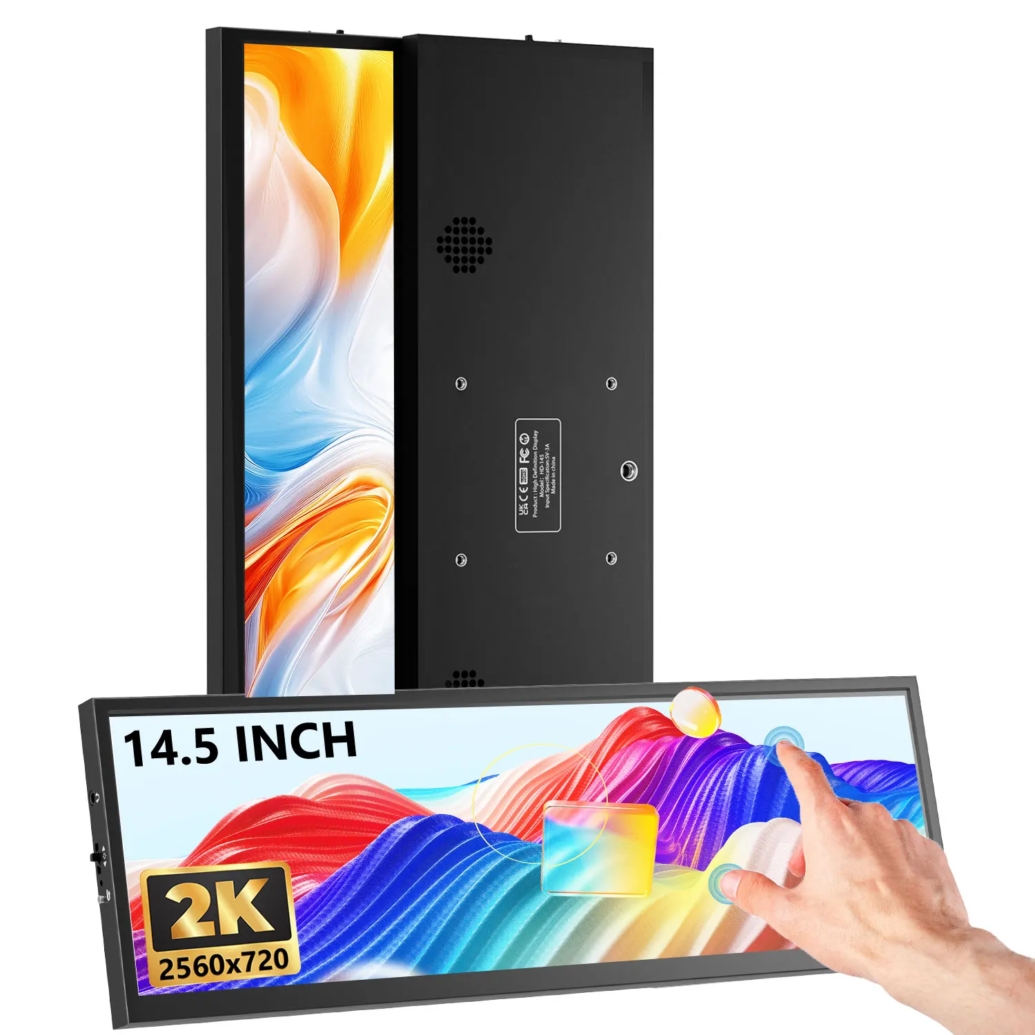 Monitor de Barra Esticada Touchscreen 2K de 14,5 Polegadas 2560x720 IPS LCD, Entrada USB-C, Tela Secundária Sensível ao Toque para Gabinete de PC, CPU, GPU