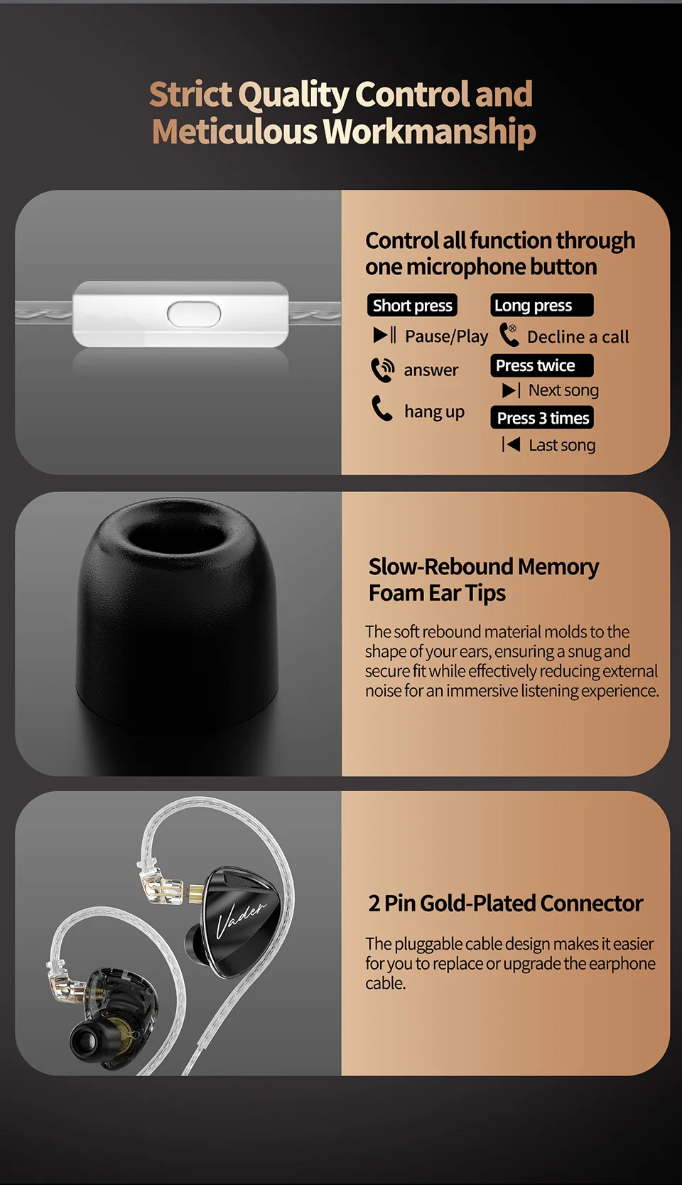 - > Monitor intra-auricular KZ Vader, fone de ouvido HiFi, ajuste de interruptor de fone de ouvido personalizável, design de fone de ouvido de rede Zobel