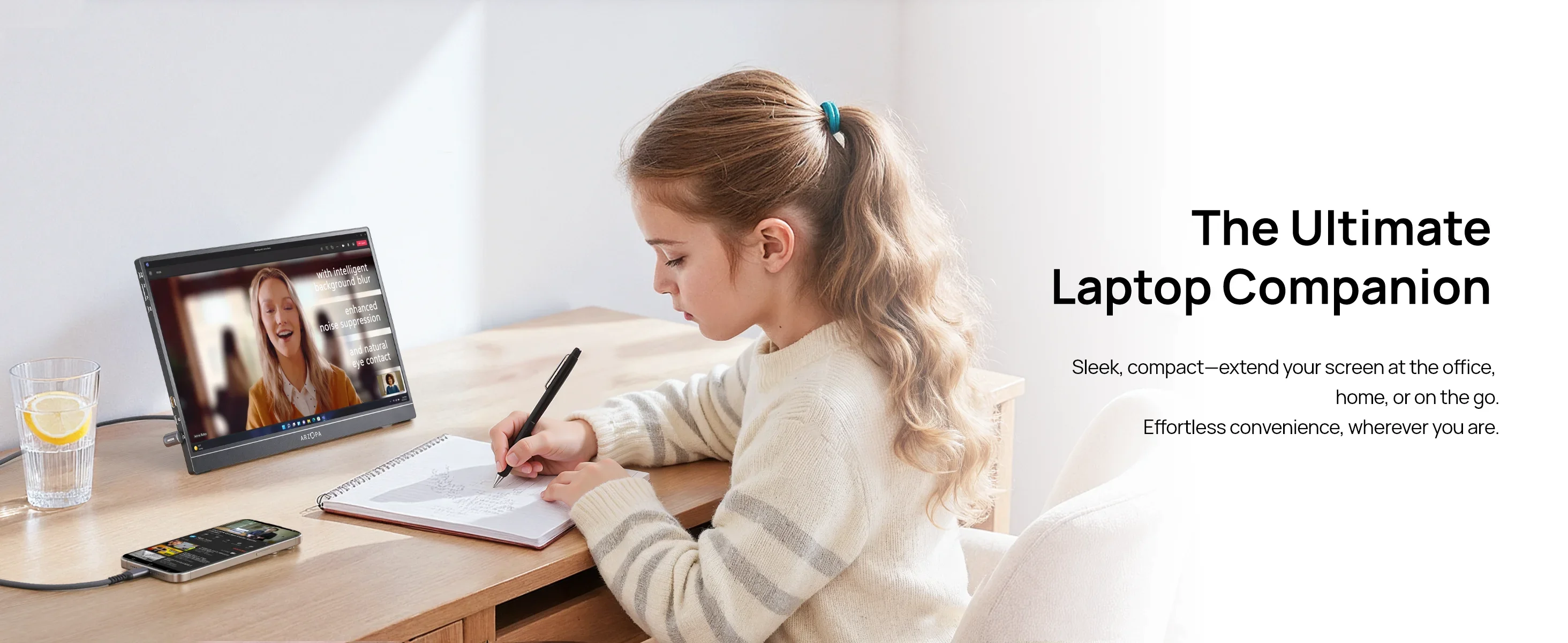Elegante e compacto - expanda sua tela no escritório, em casa ou em qualquer lugar. Conveniência sem esforço, onde quer que você esteja.
