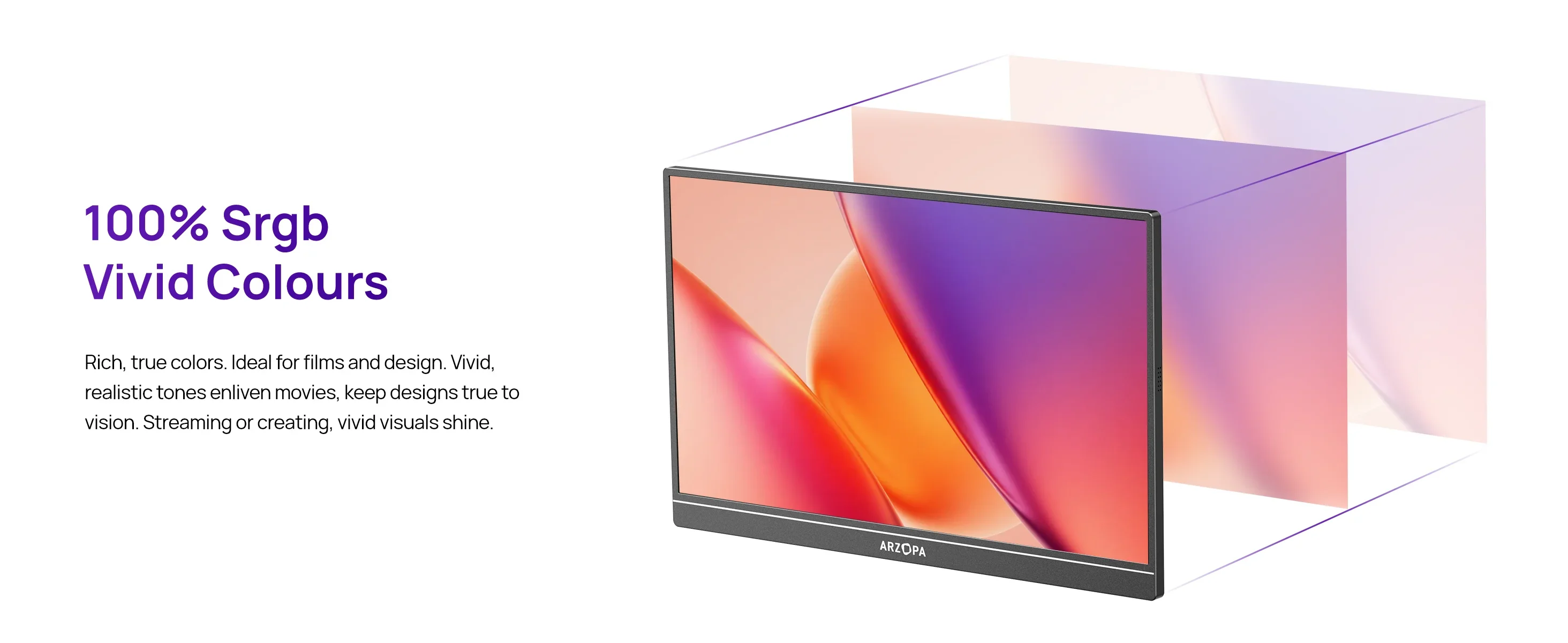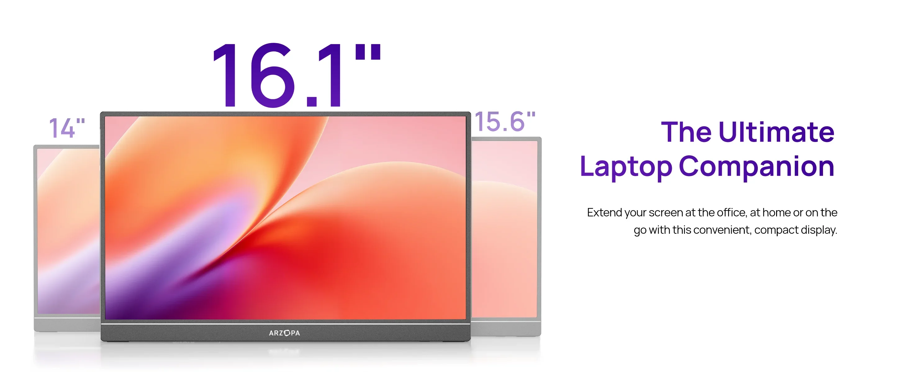 - > Monitor Portátil ARZOPA de 16,1 polegadas 100% sRGB 1920*1080, Segundo Monitor, Tela Externa para MAC, Laptop, PC, Xbox/PS/Switch, Z1C
