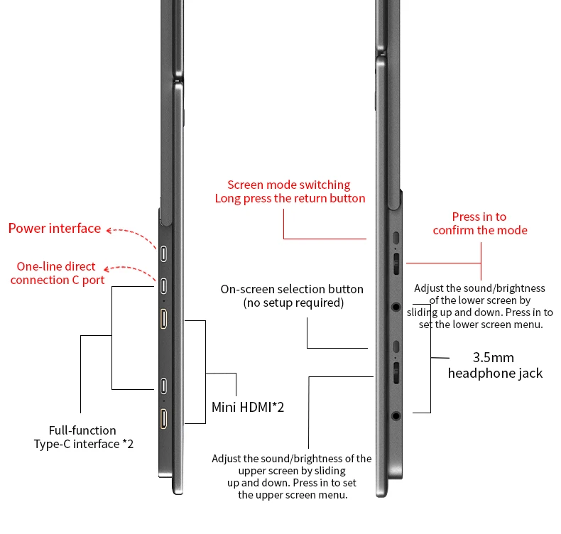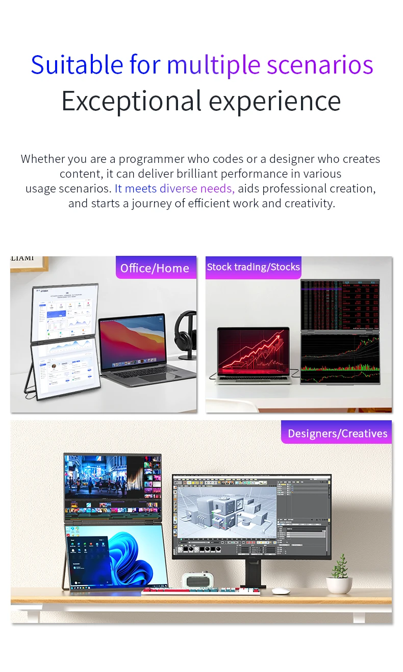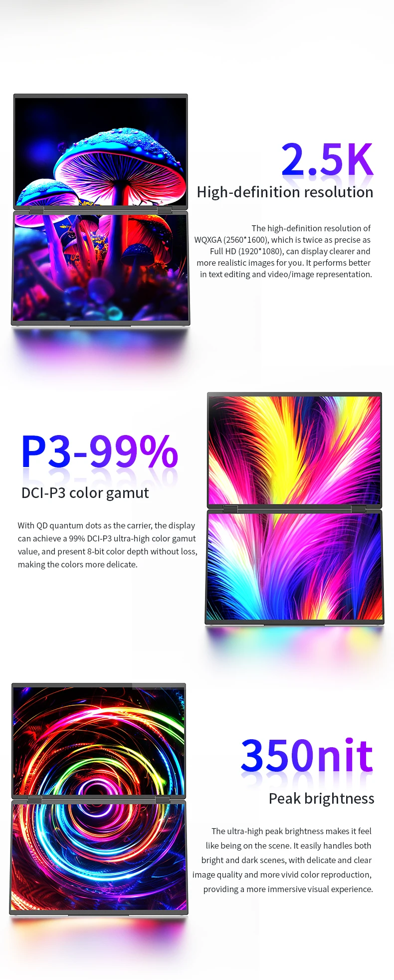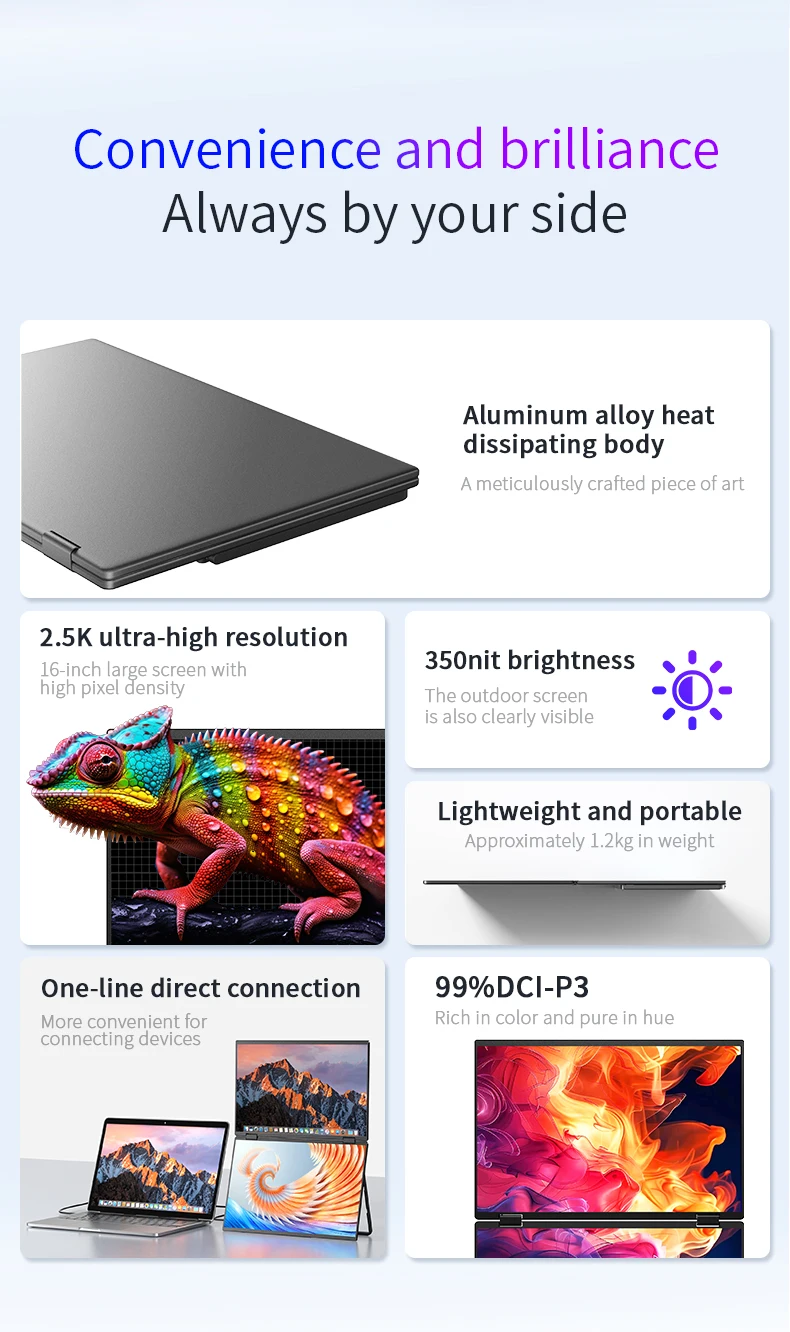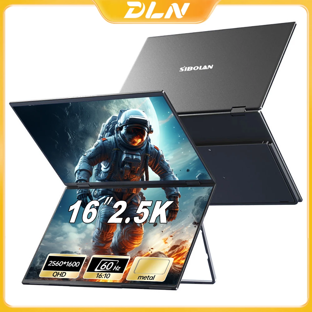 - > Monitor Portátil DLN de 16 Polegadas com Tela Dupla para Laptop, Extensor Metálico Dobrável 16:10 2.5K 60Hz com Portas USB-C e HDMI para Jogos e Mac, Windows