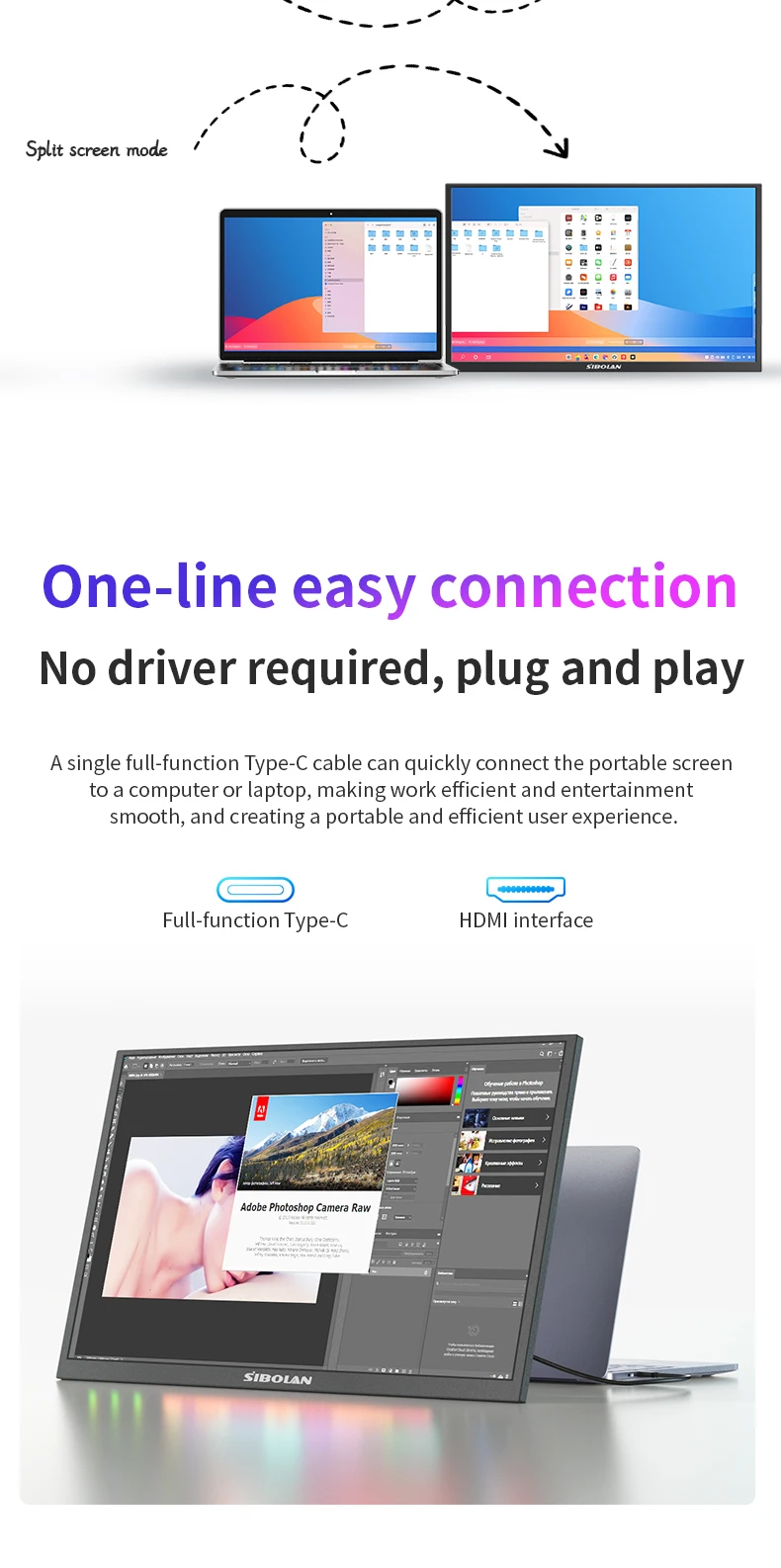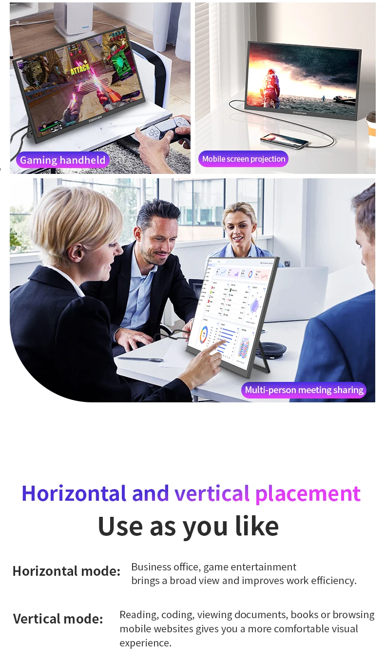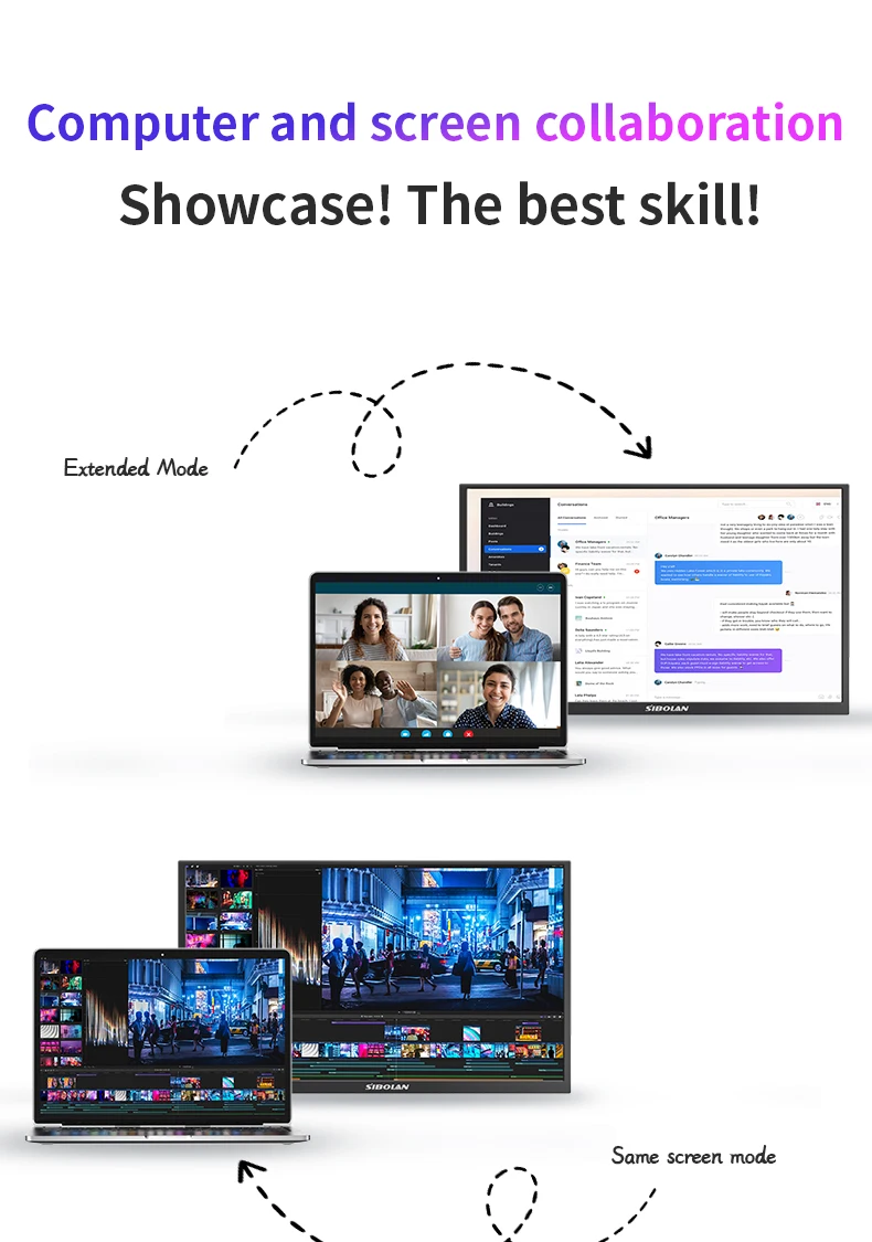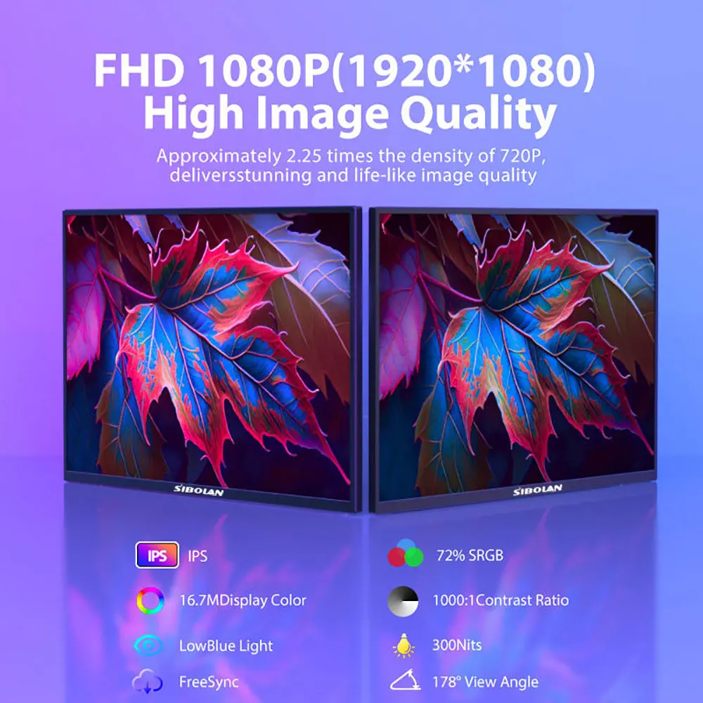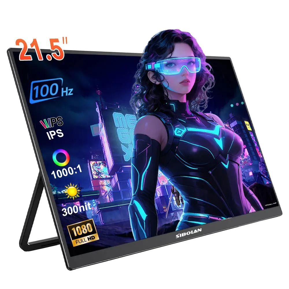 - > Monitor Portátil Sibolan de 21,5 polegadas 1080P 100Hz 72% sRGB USB C HDMI HDR com Suporte, Extensor de Tela IPS para Windows e Mac, para Jogos