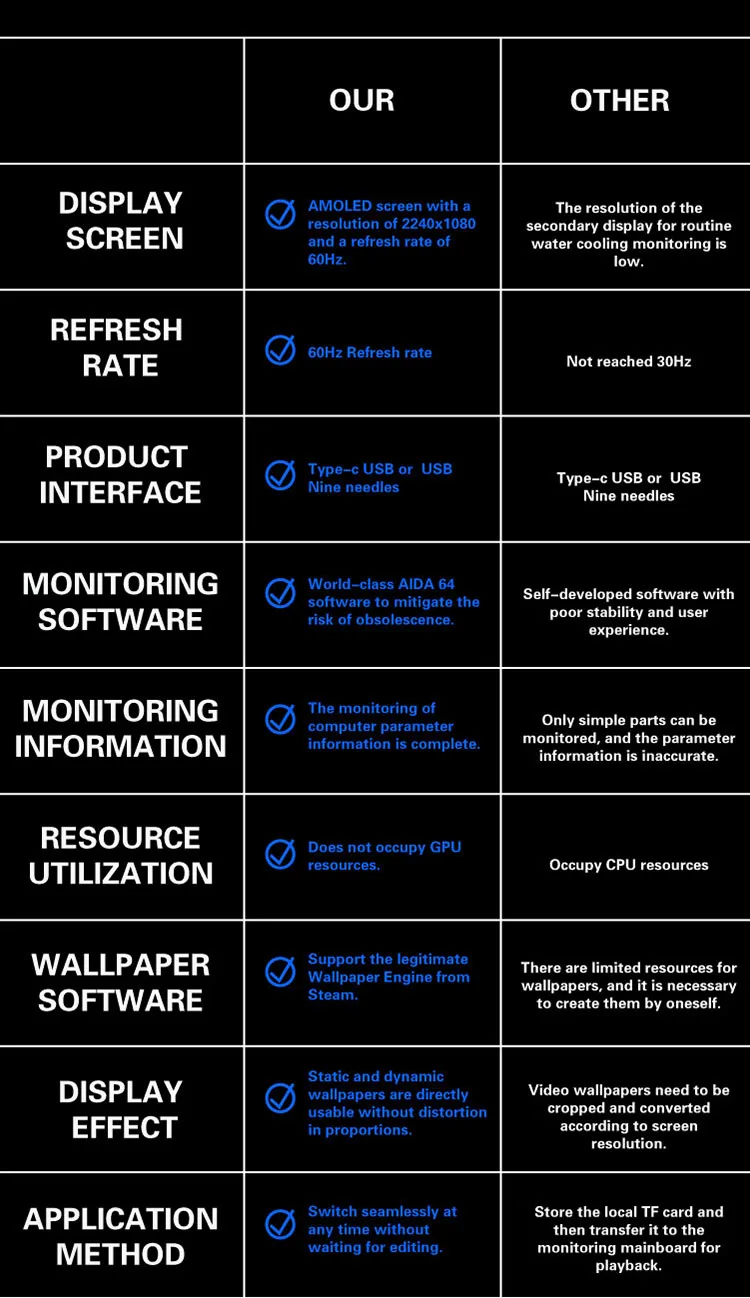 Uma comparação entre a tela curva refrigerada a água da nossa família e as disponíveis no mercado.