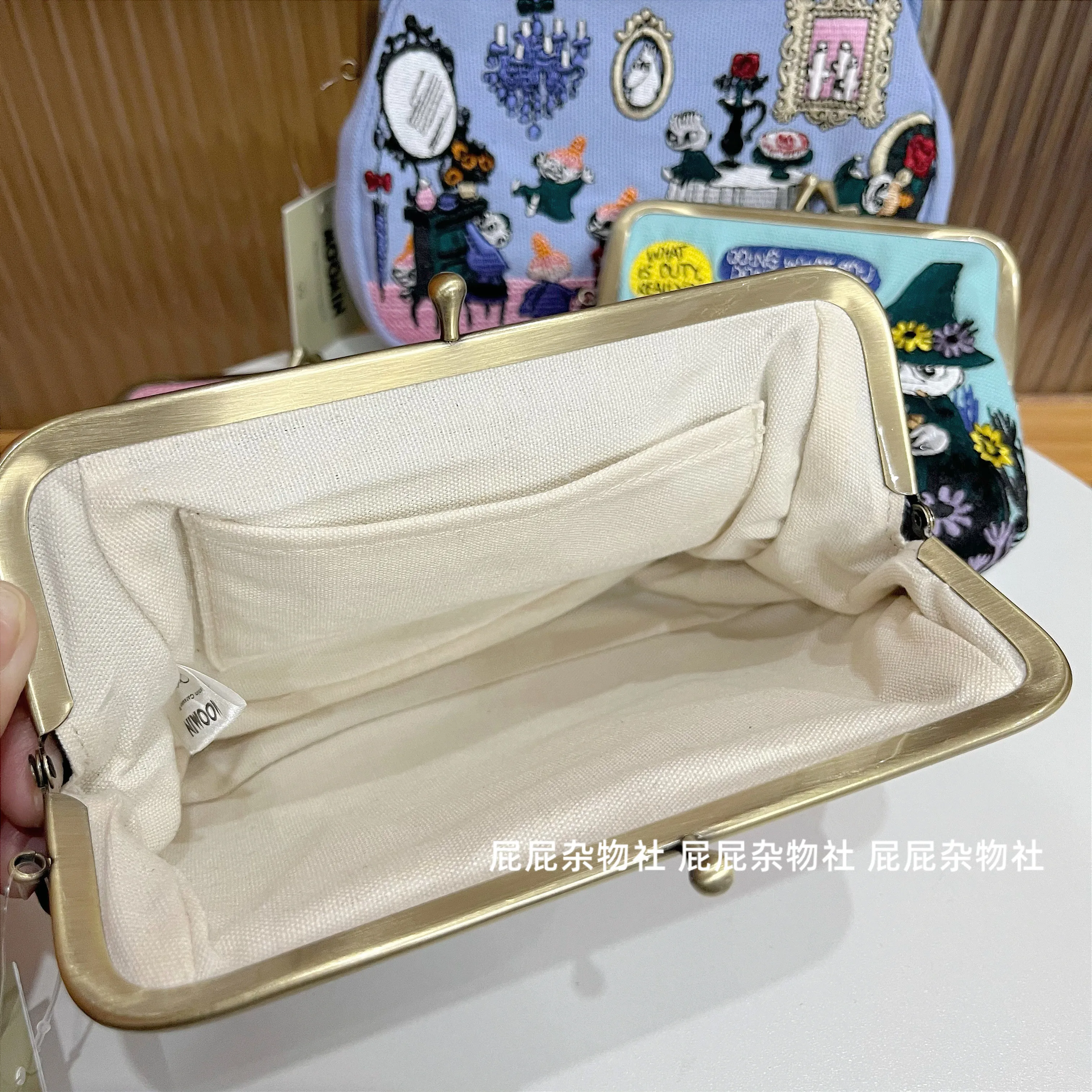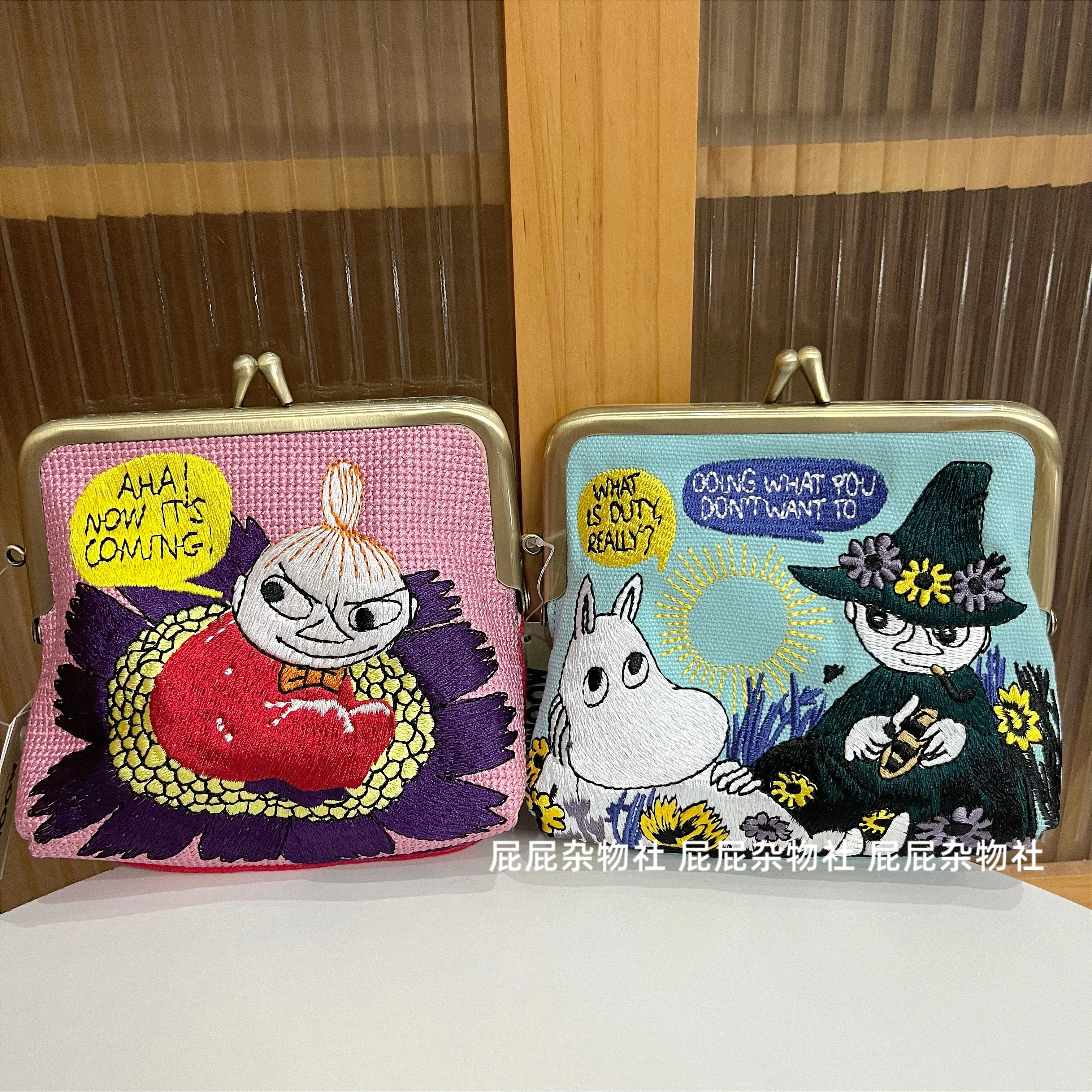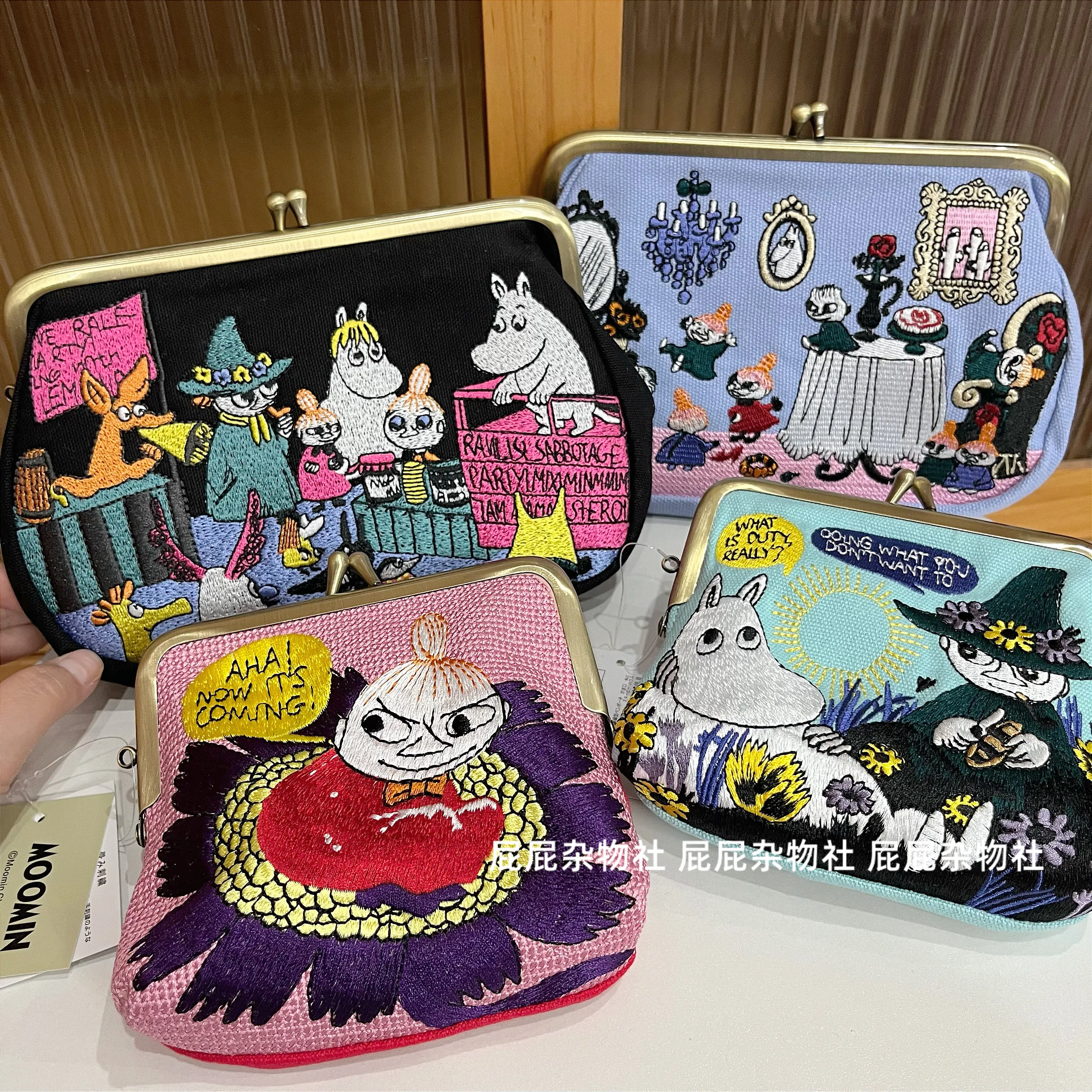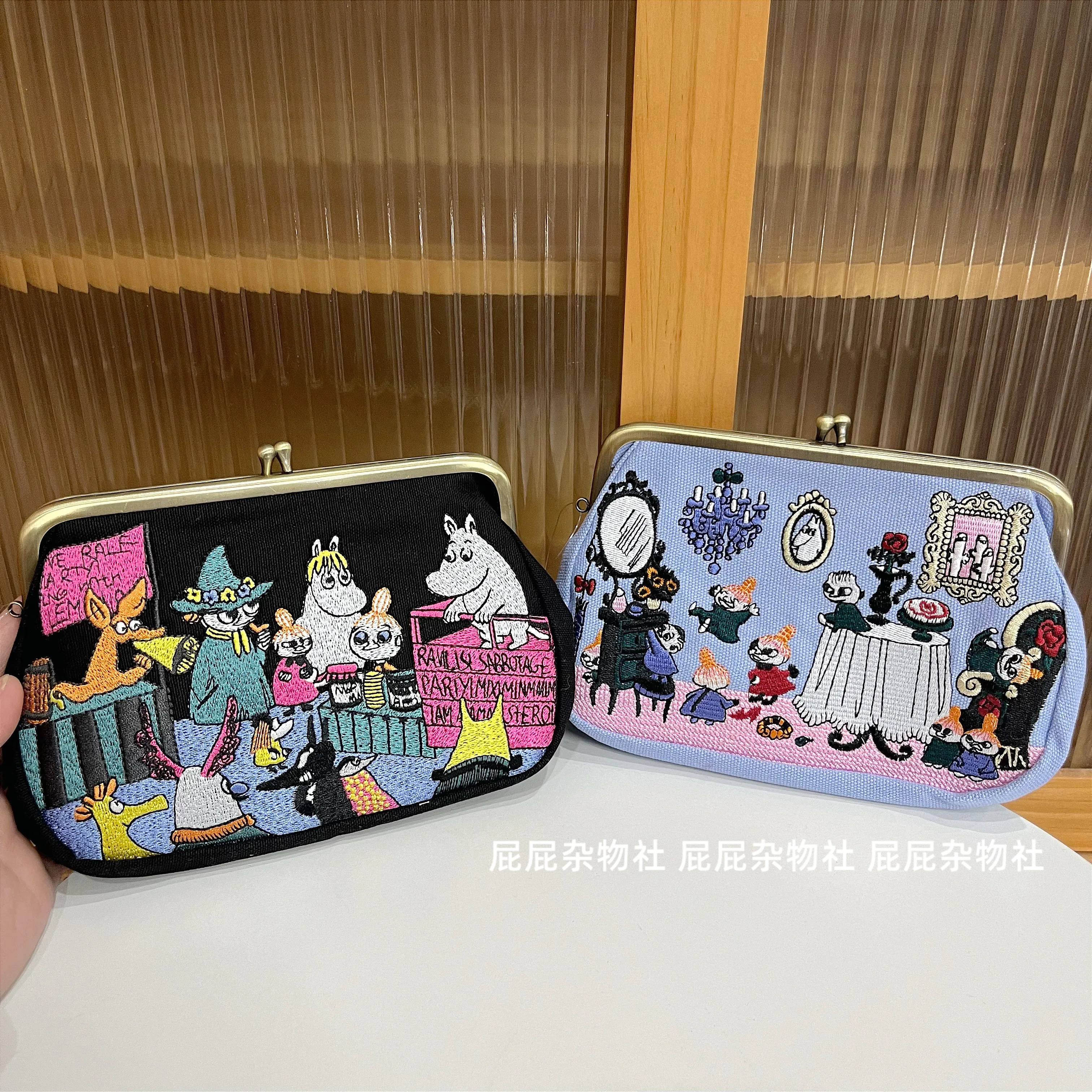 - > Moomin dos desenhos animados personagens periférico bordado quadro saco de armazenamento de maquiagem fones de ouvido mudança cartão pacote presente das crianças