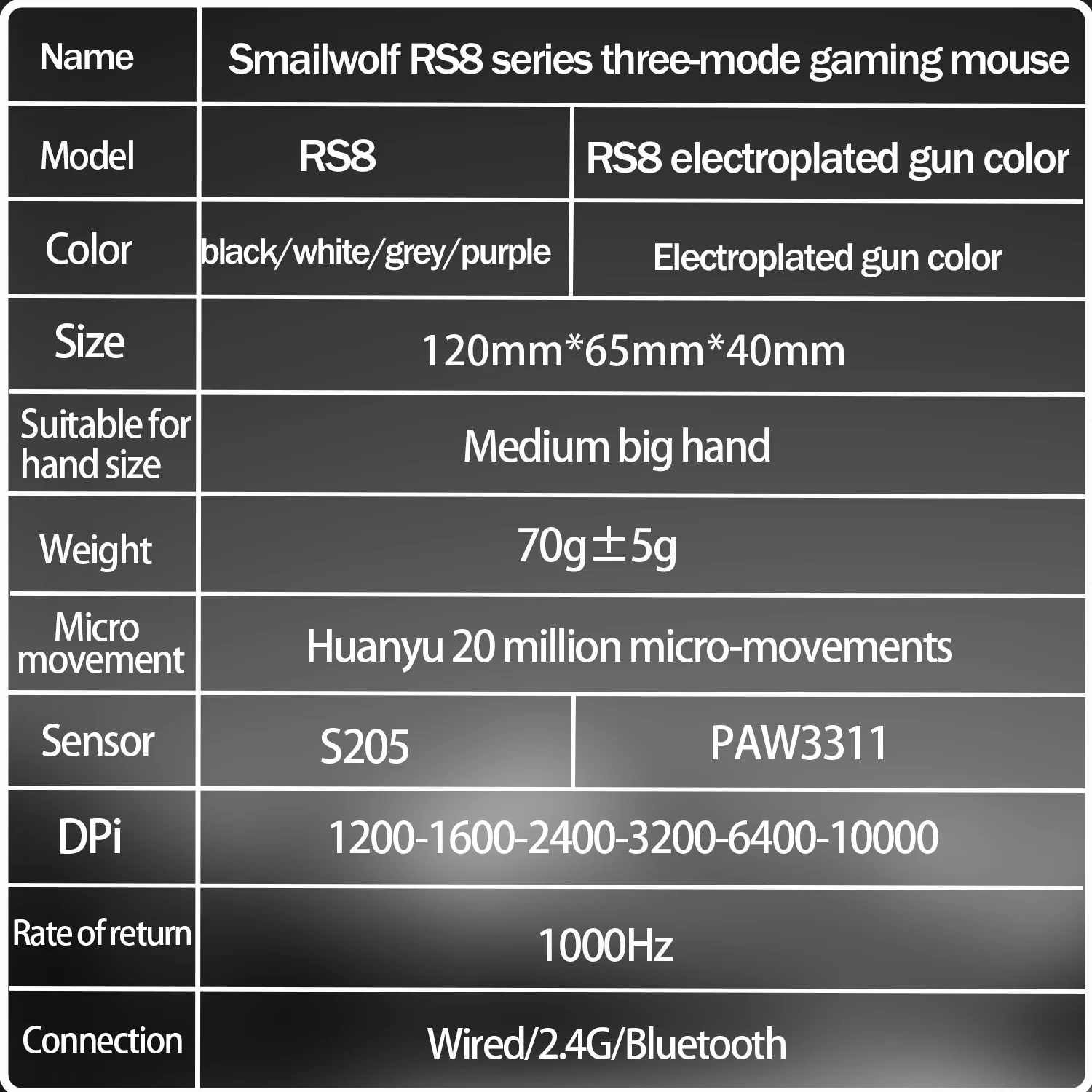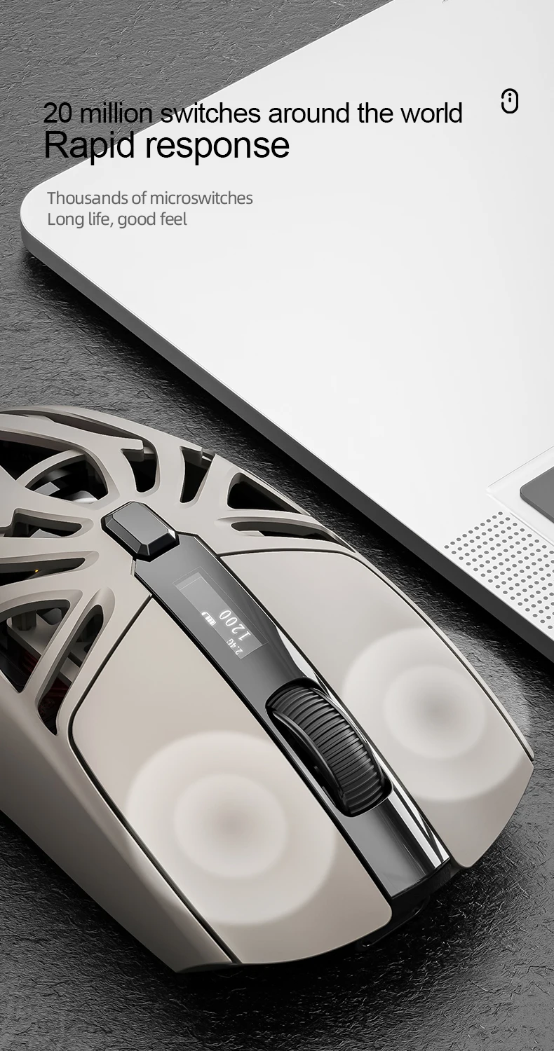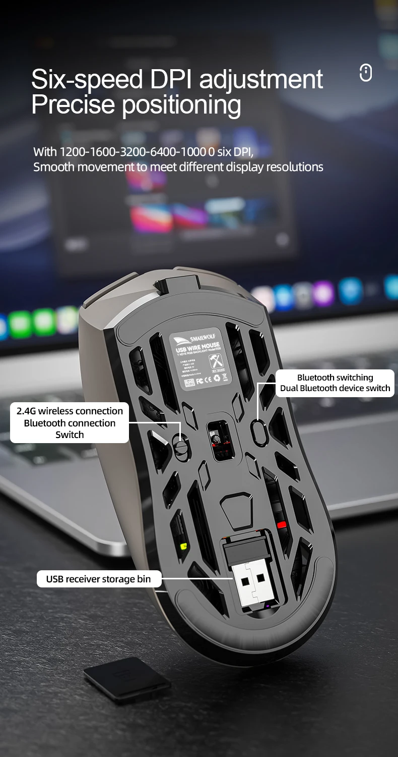 - > Mouse Gamer Sem Fio SMAILWOLF RS8 Bluetooth 2.4g Três Modos Leve PAW3311 para E-sports Taxa de Retorno de 1K 10000DPI para Computador