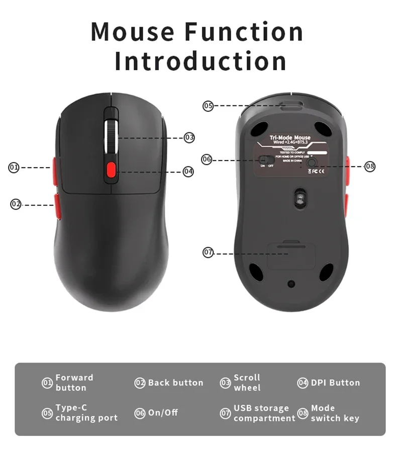 - > Mouse Lenovo de Modo Triplo Leve Recarregável Portátil Sem Fio Bluetooth para PC Smartphone Escritório Universal Mouse Gamer