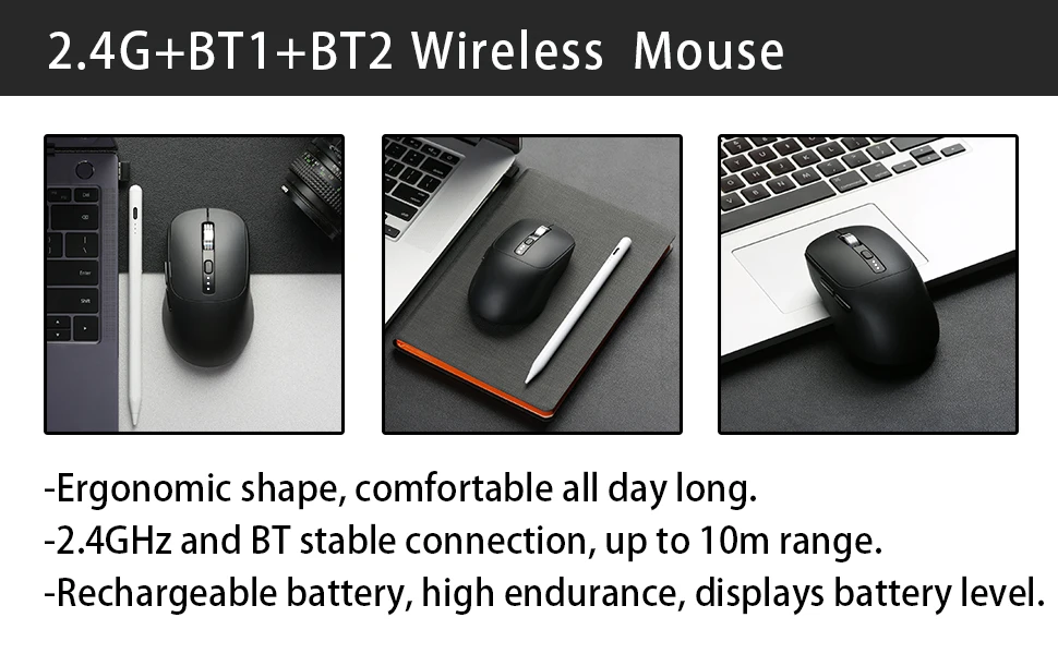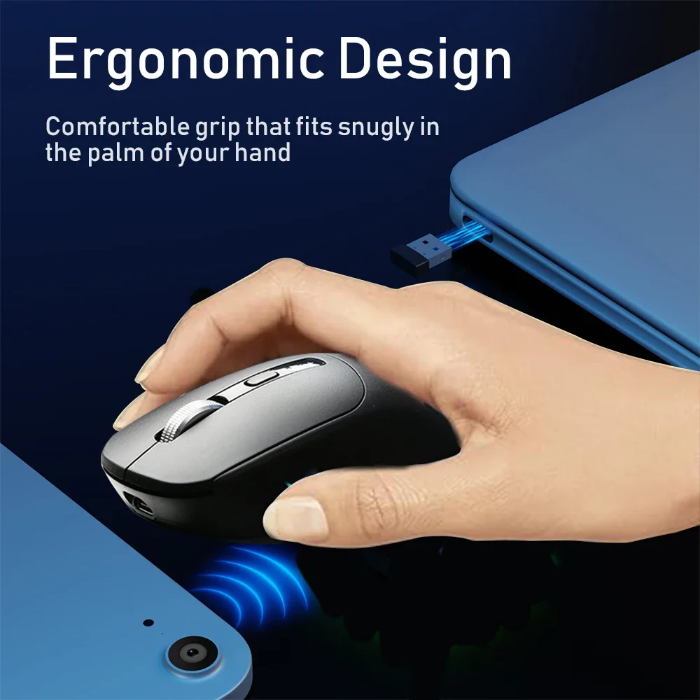 Mouse sem fio para jogos compatível com bluetooth (modo duplo: bt1 + bt2 + 2.4ghz) mouse ergonômico recarregável para pc/laptop/macbook ?
