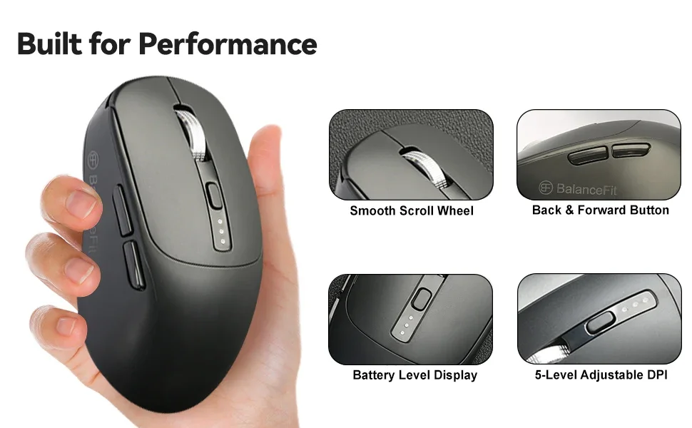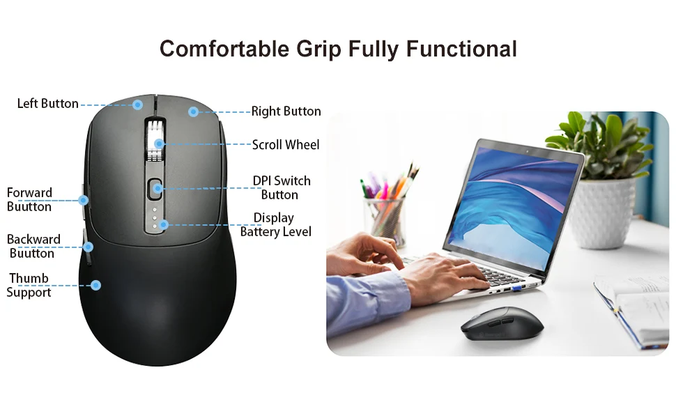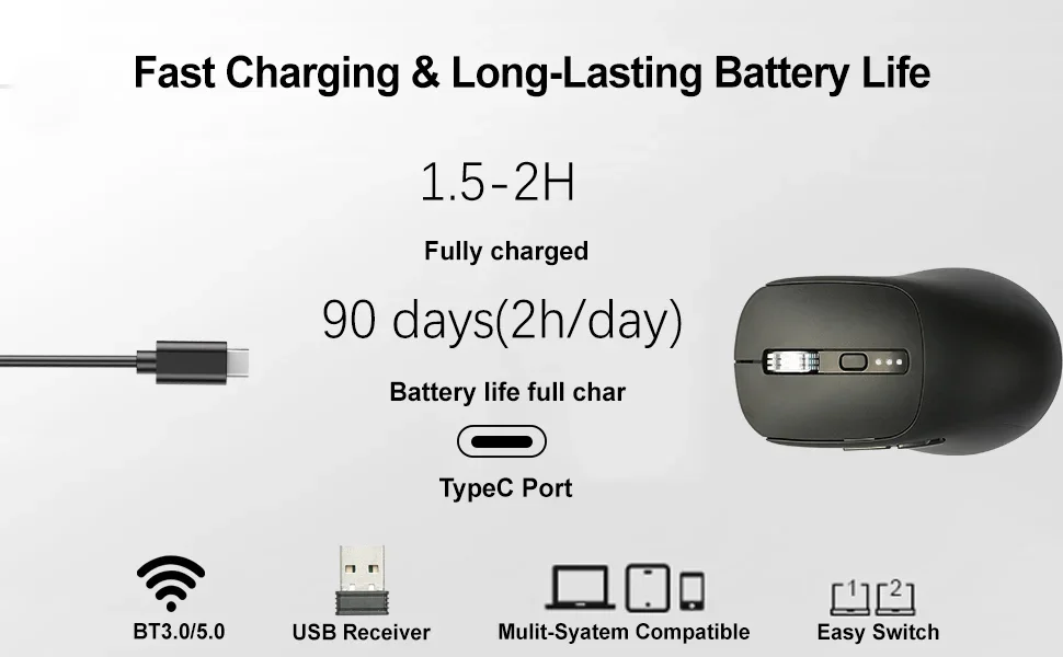 - > Mouse sem fio para jogos compatível com bluetooth (modo duplo: bt1 + bt2 + 2.4ghz) mouse ergonômico recarregável para pc/laptop/macbook ?