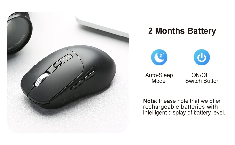 2. economia de energia recarregável: o mouse sem fio contém bateria de íon de lítio durável, ciclo de vida alto.