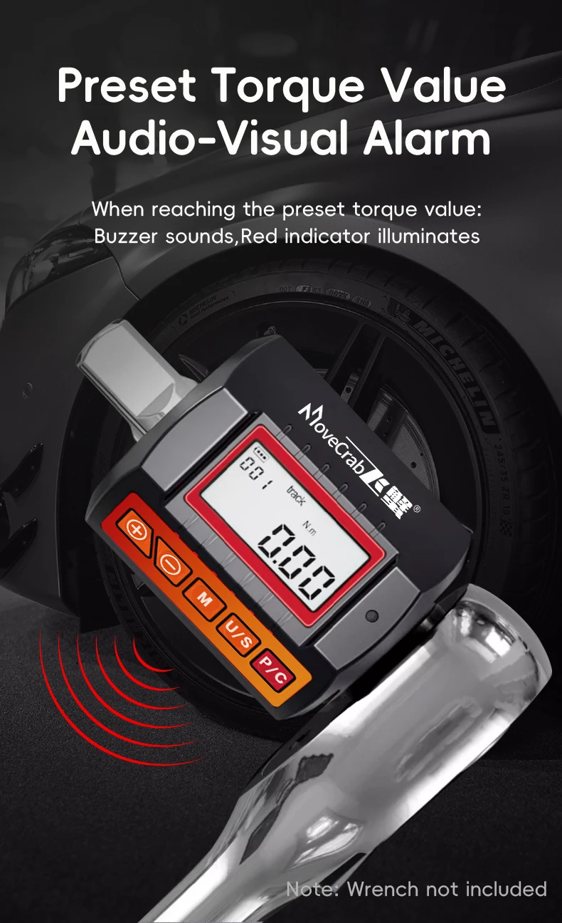 MoveCrab Adaptador de torque digital 1/2 "Drive inclui adaptadores para chave de torque eletrônica de 3/8" e 1/4 "conjunto de bicicleta para reparo de carro