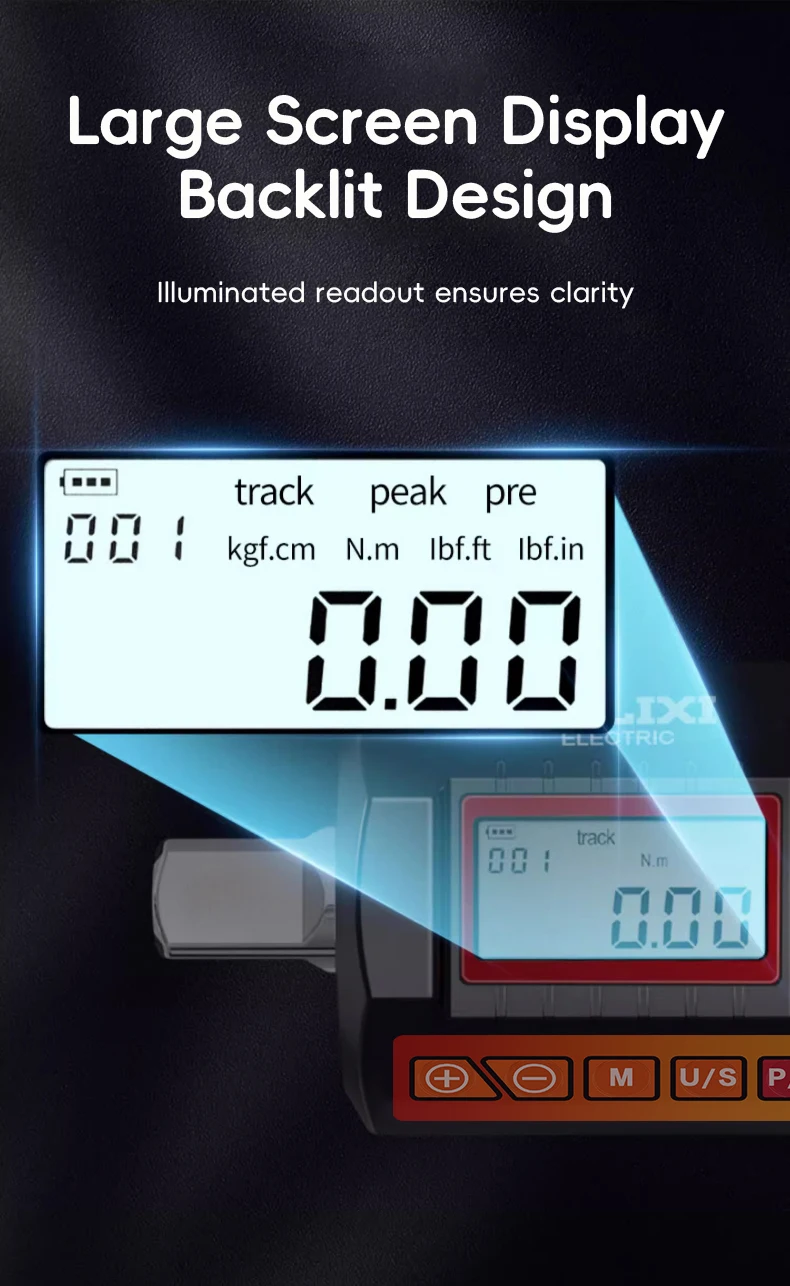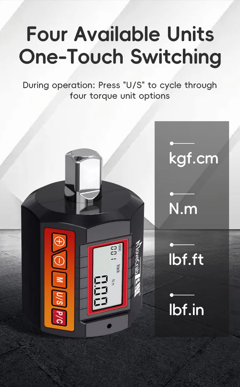 Múltiplas unidades de torque: alterne entre kgf.cm, Nm, lbf.ft e lbf.in com facilidade, garantindo versatilidade para diversas aplicações.
