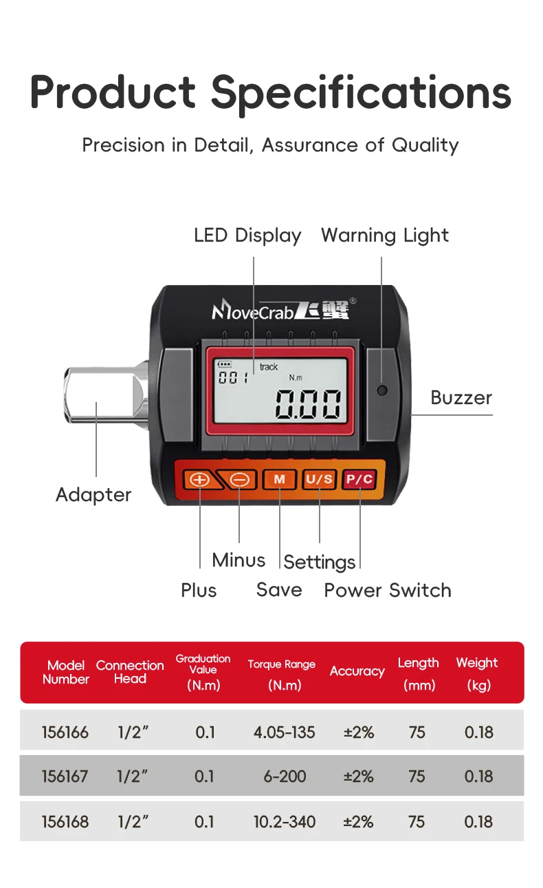 - > MoveCrab Adaptador de torque digital 1/2 "Drive inclui adaptadores para chave de torque eletrônica de 3/8" e 1/4 "conjunto de bicicleta para reparo de carro