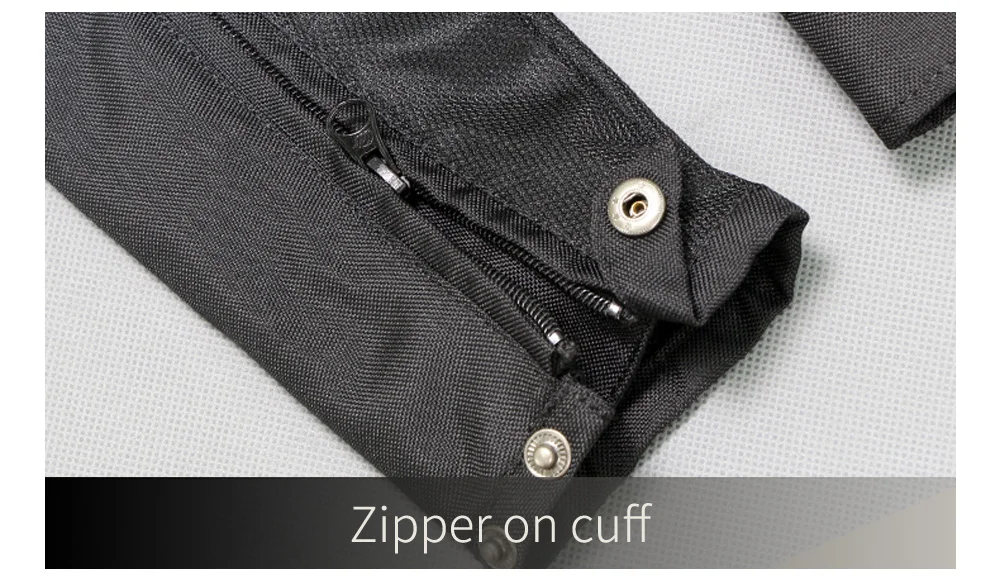 5.Ajustabilidade: Zíper e botão no punho, velcro na cintura, botão na gola.