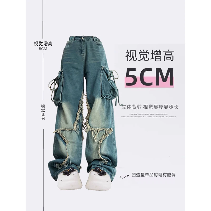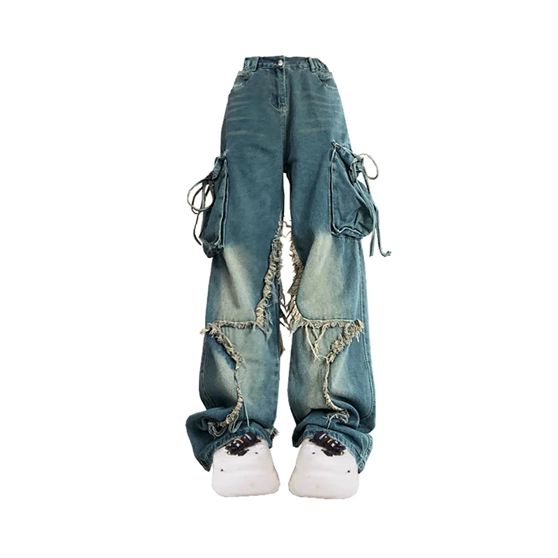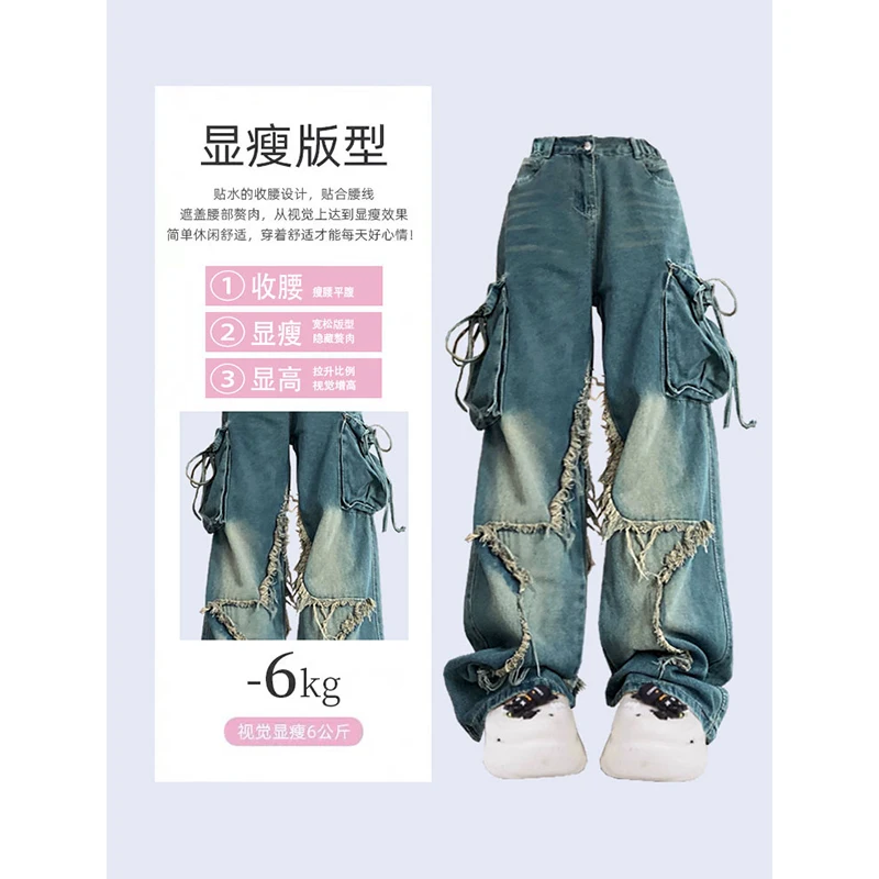 Mulheres azul carga jeans baggy vintage 90s estética cintura alta calças de cowboy harajuku denim y2k trashy 2000s roupas 2024