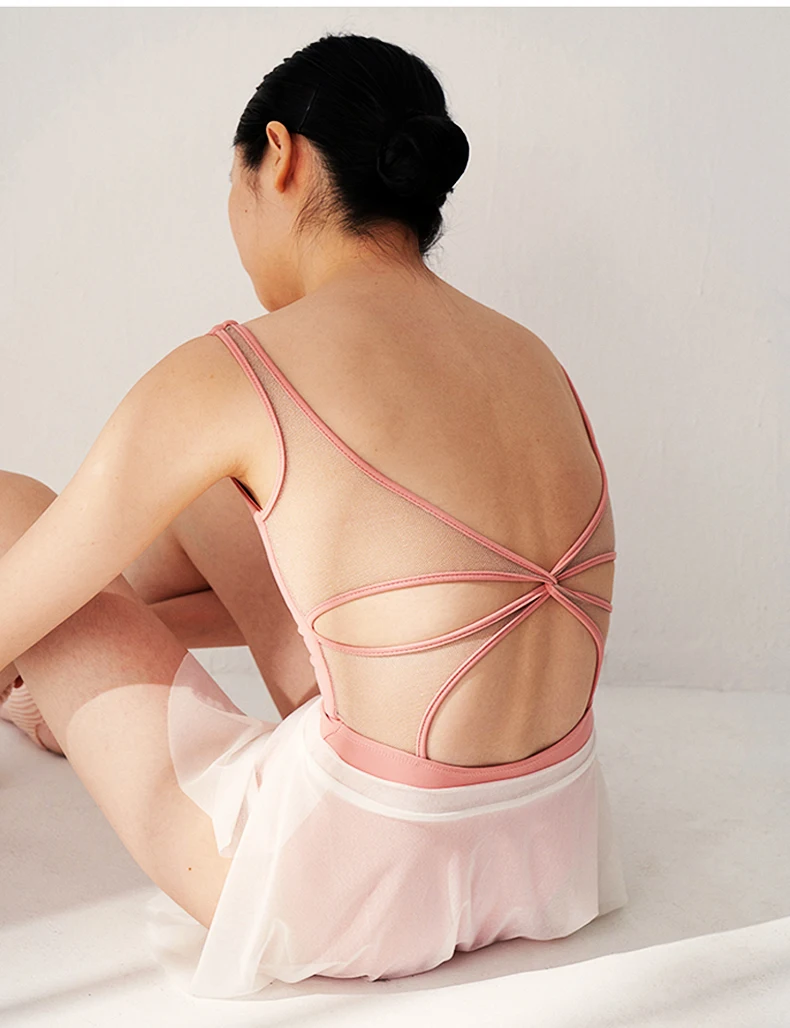 - > Mulheres ballet collants trompete manga dança collant gola plissado malha splice ginástica collant feminino ballet bodysuit