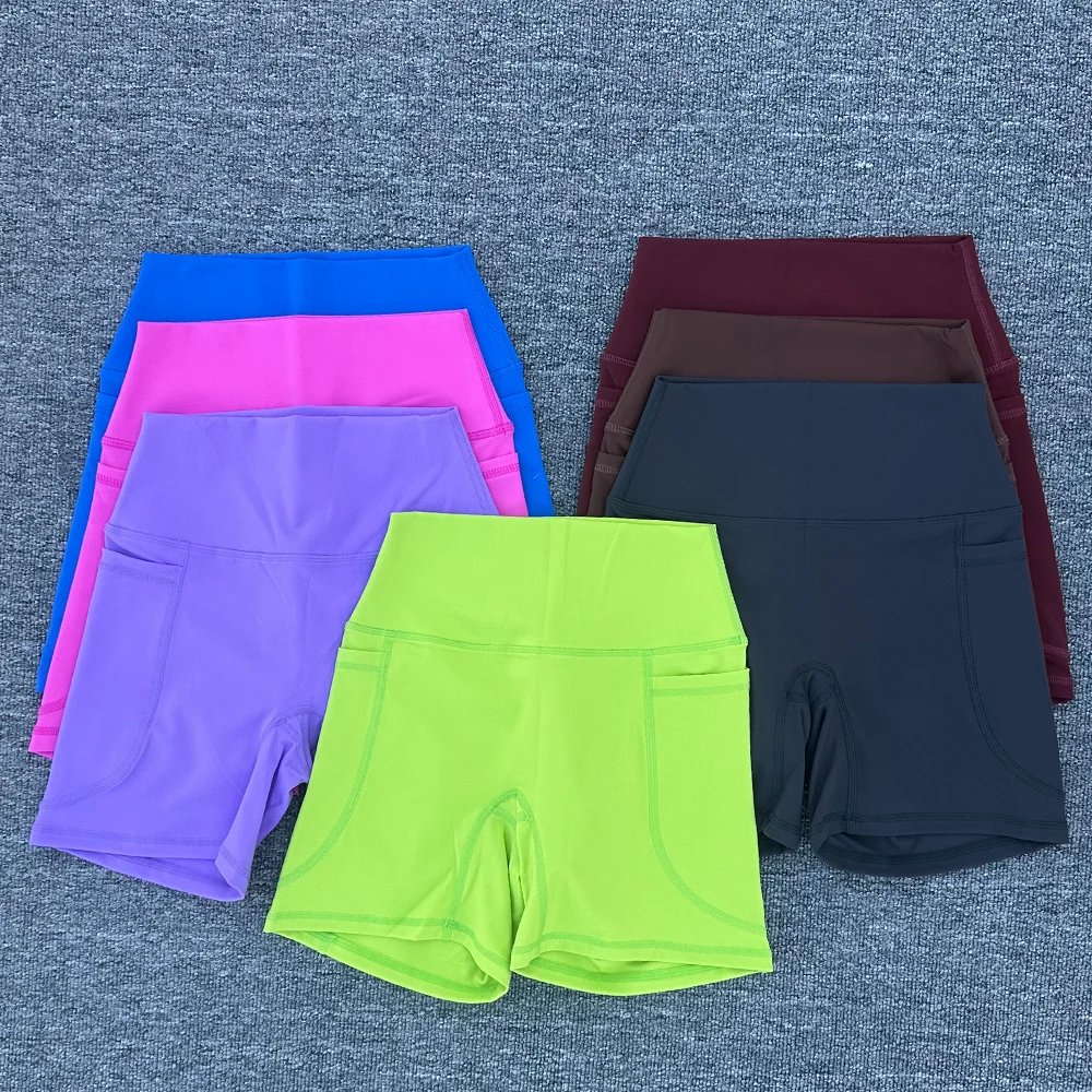 Mulheres bolso esportes shorts de cintura alta hip levantamento shorts yoga curto treino correndo estiramento fitness atlético esportes yoga legging