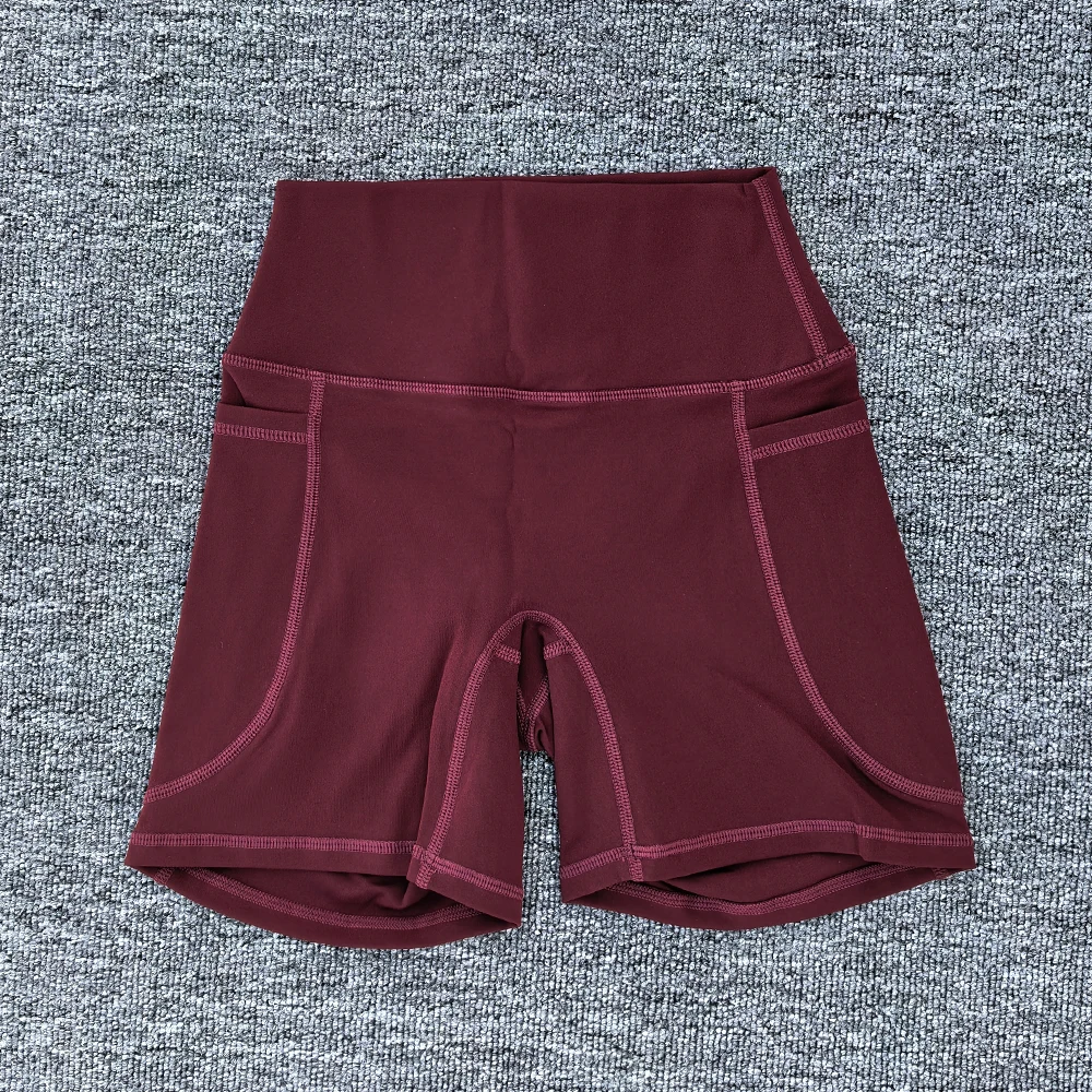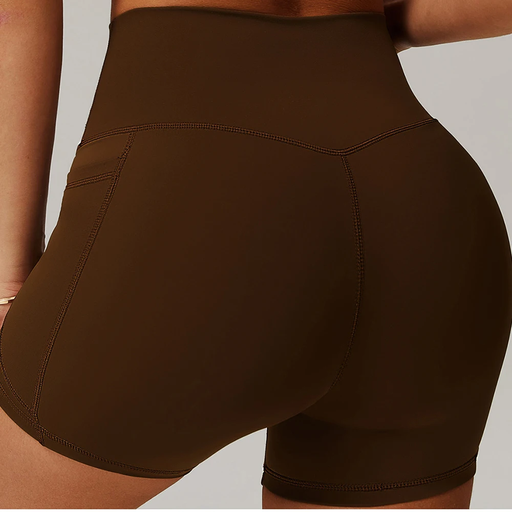 - > Mulheres bolso esportes shorts de cintura alta hip levantamento shorts yoga curto treino correndo estiramento fitness atlético esportes yoga legging