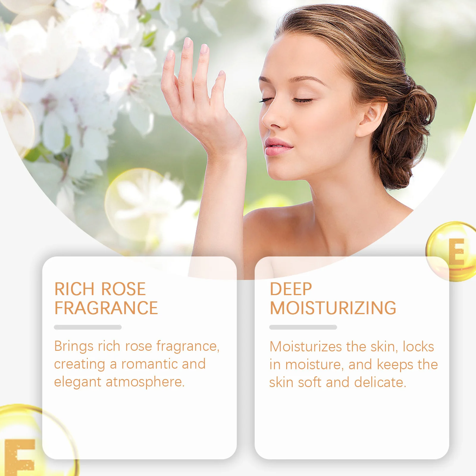 1. Traz uma rica fragrância de rosa criando uma atmosfera romântica e elegante.Hidrata a pele, retém a umidade e mantém a pele macia e delicada.