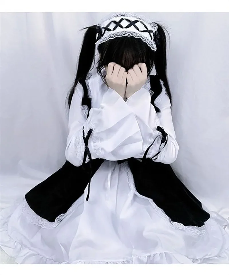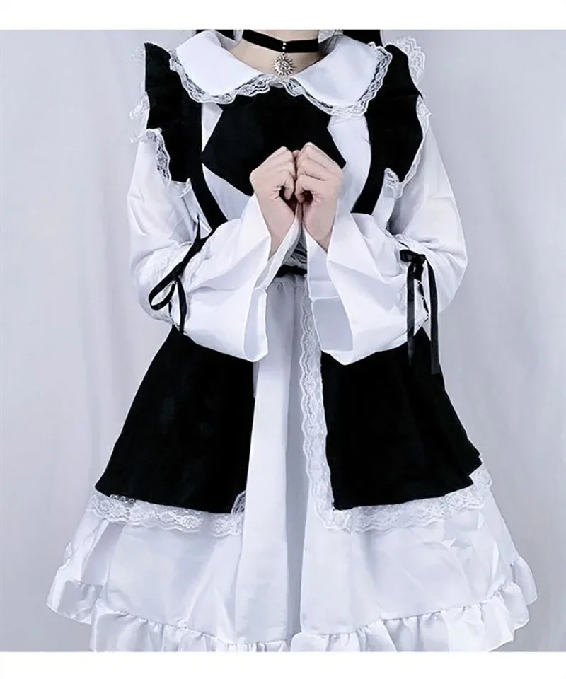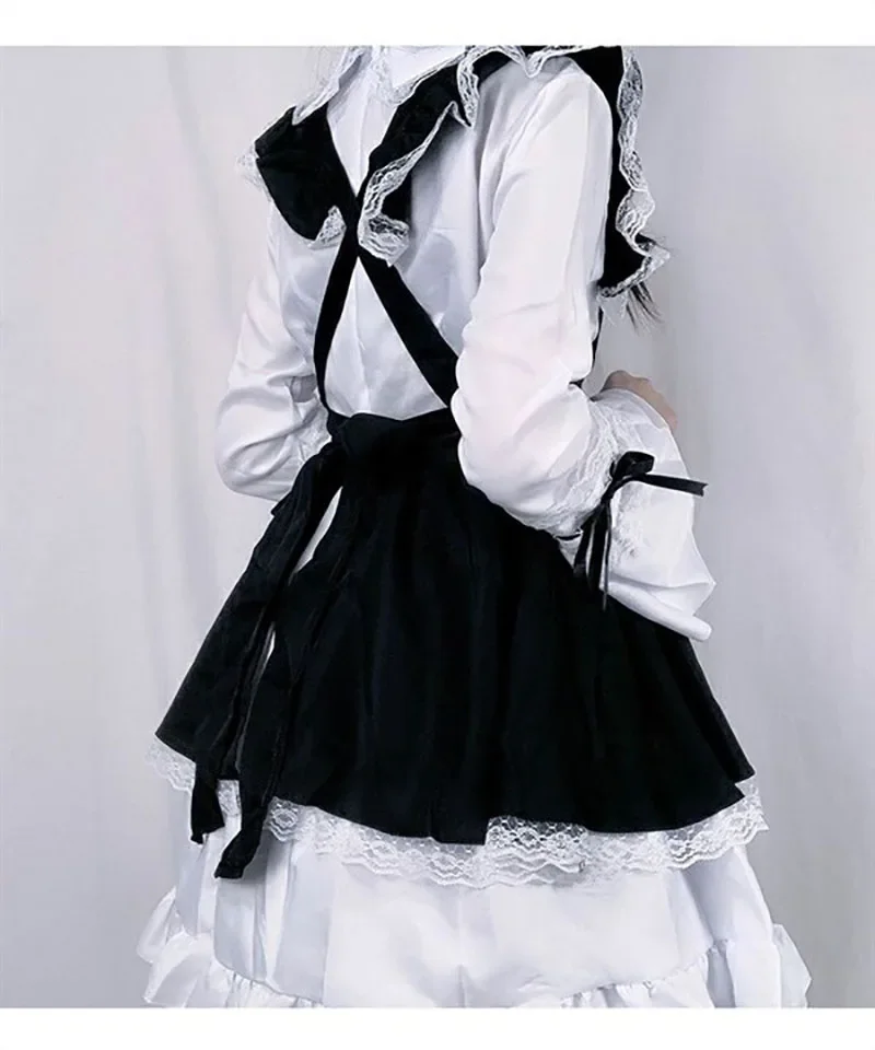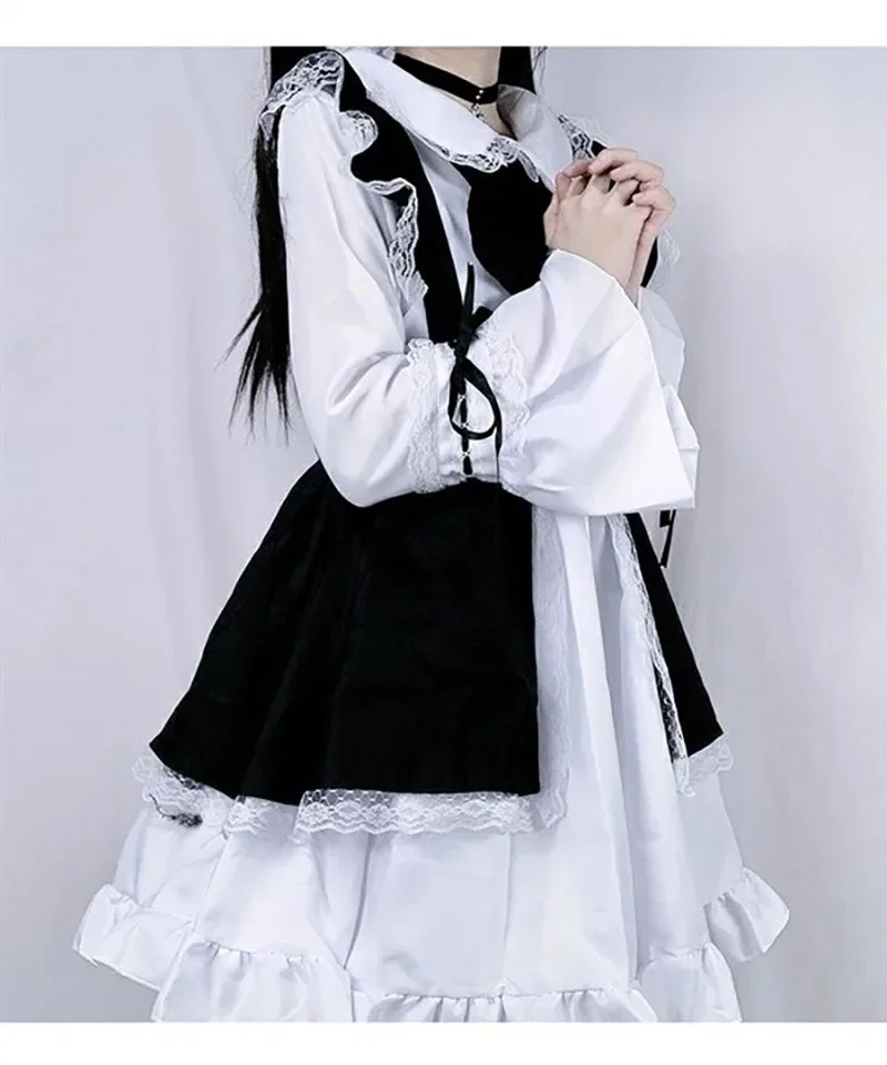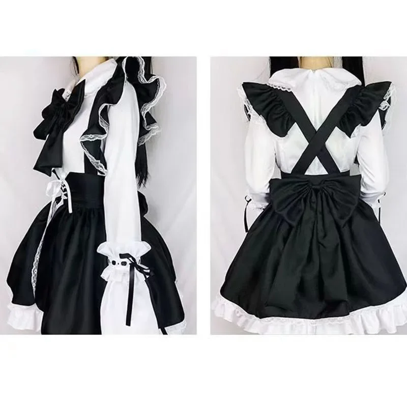 Mulheres homens empregada roupa lolita cosplay bonito sexy erótico kawaii café traje preto branco masculino uniforme avental vestido bonito bowknot