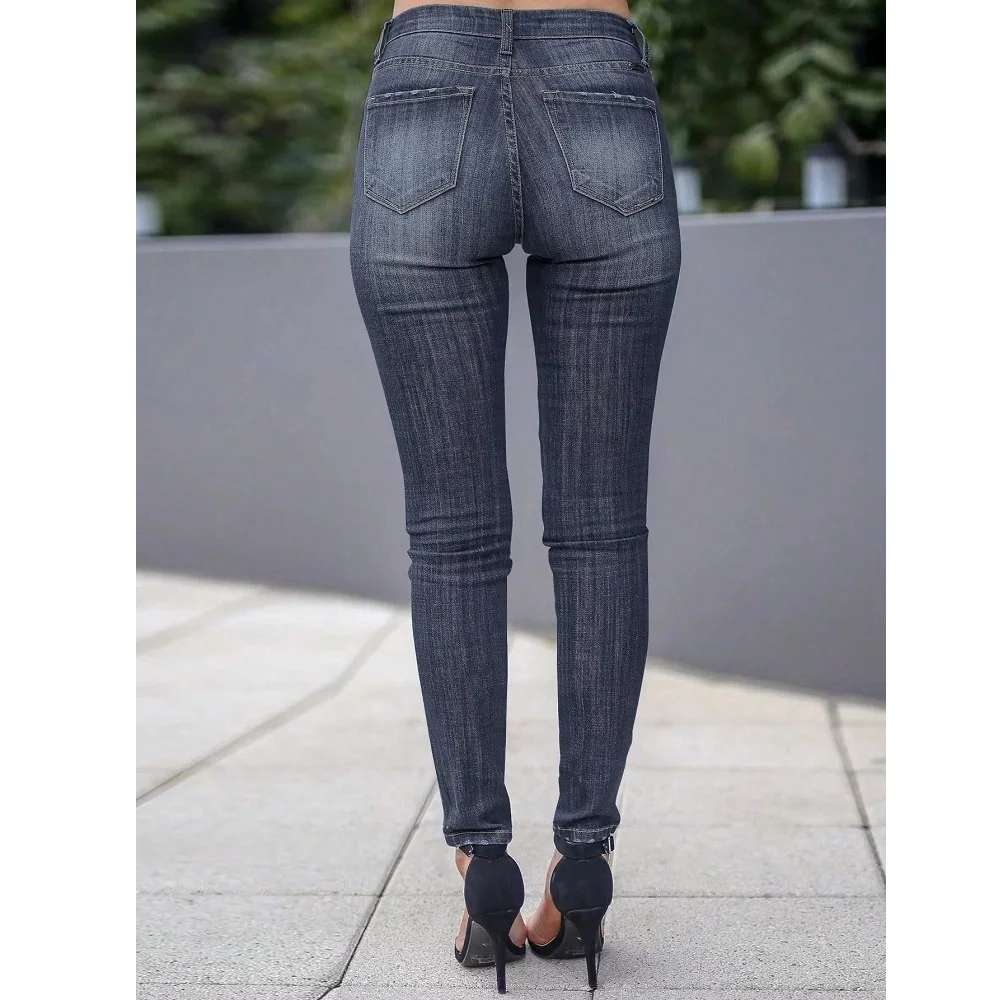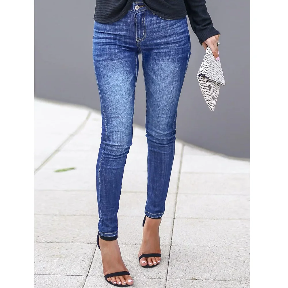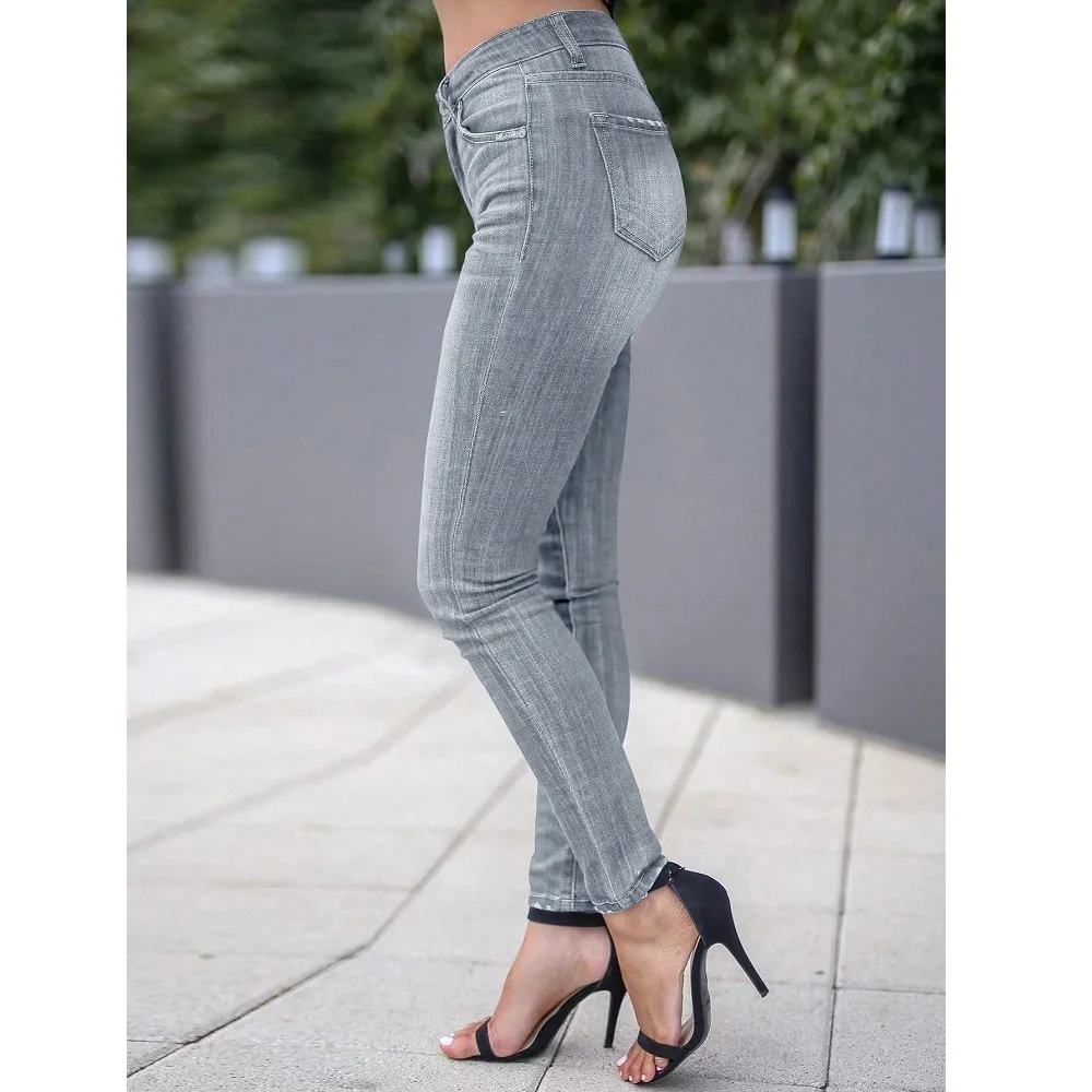 Mulheres mais novo magro estiramento jeans cor sólida magro lápis calças senhoras comprimento total denim jeans