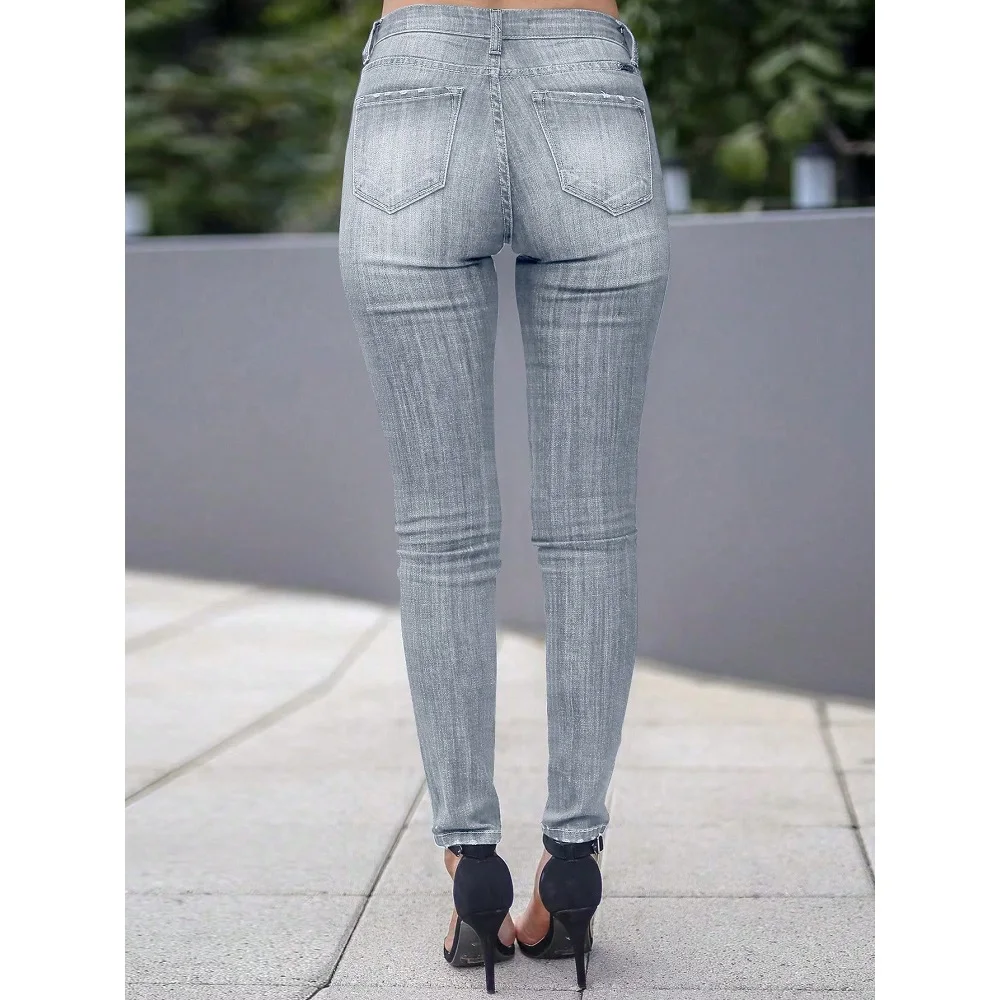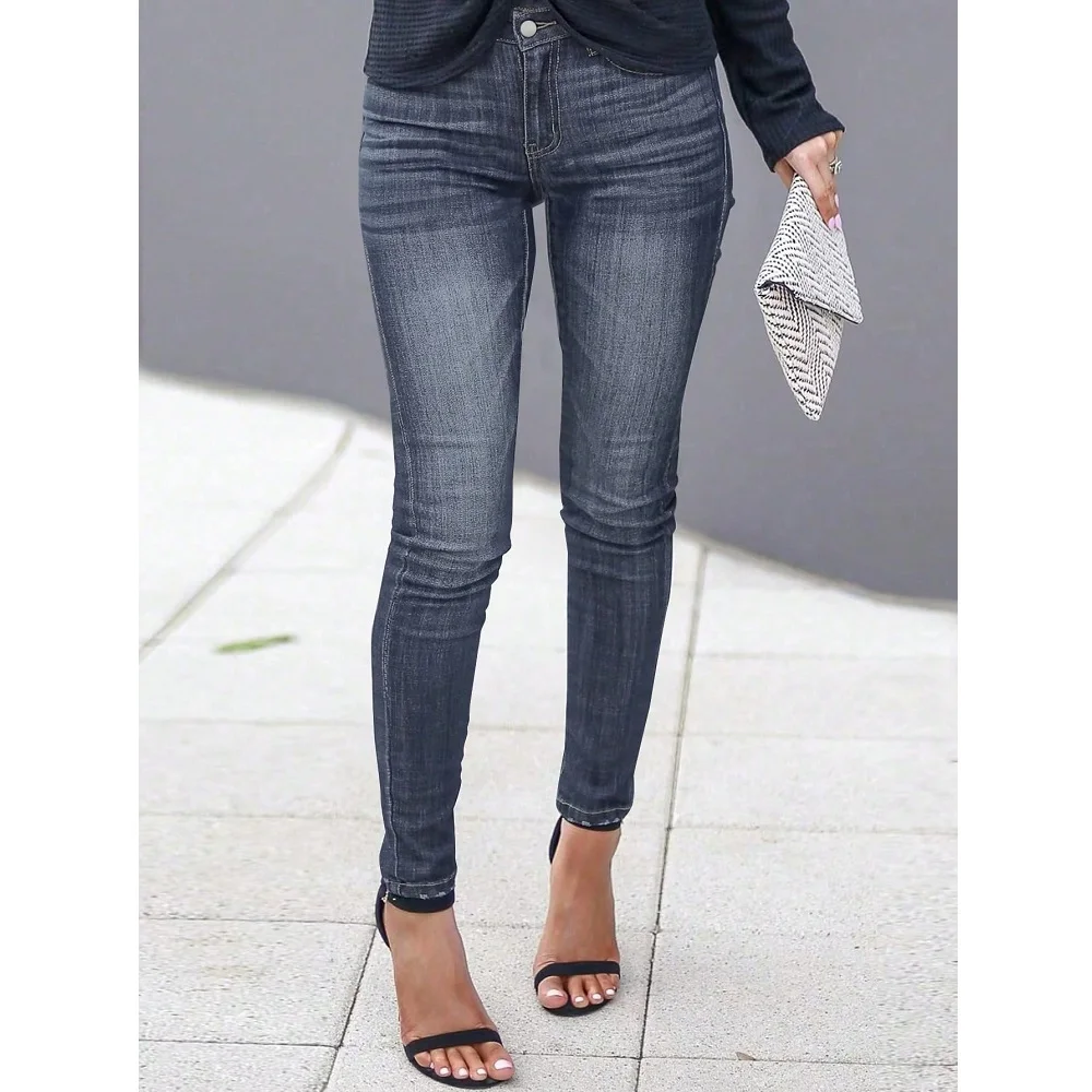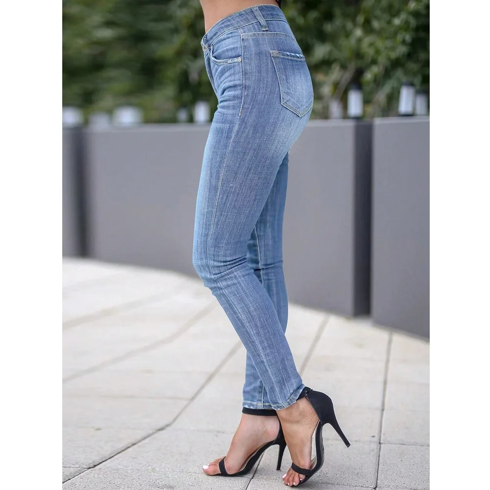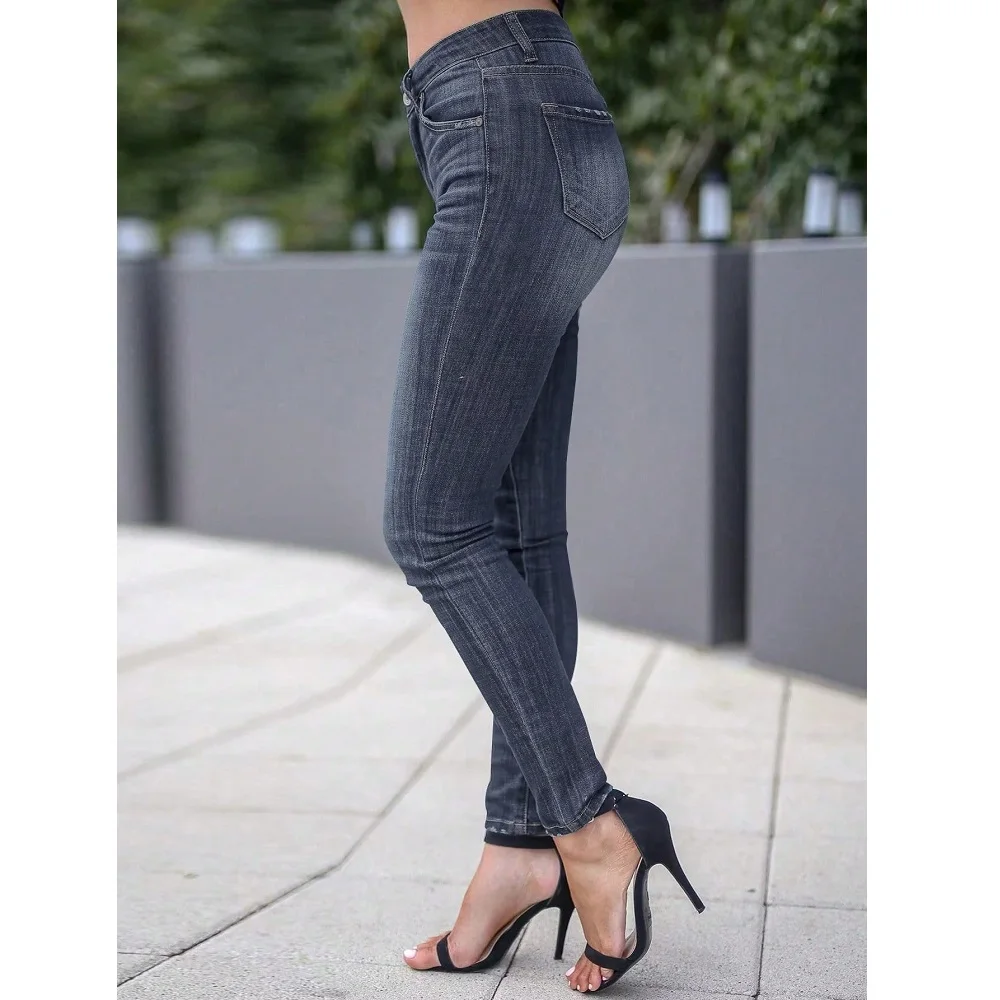 Mulheres mais novo magro estiramento jeans cor sólida magro lápis calças senhoras comprimento total denim jeans