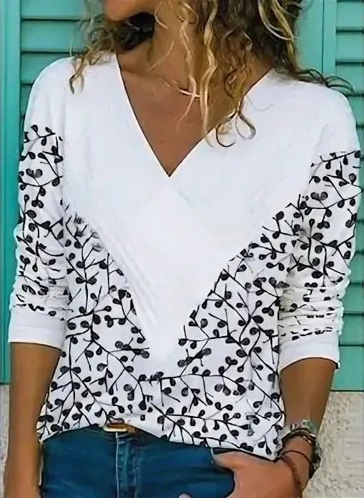 Mulheres outono inverno blusas t camisa contraste geométrico longo manga cheia impressão solta camisas femininas primavera outono elegante senhora topos