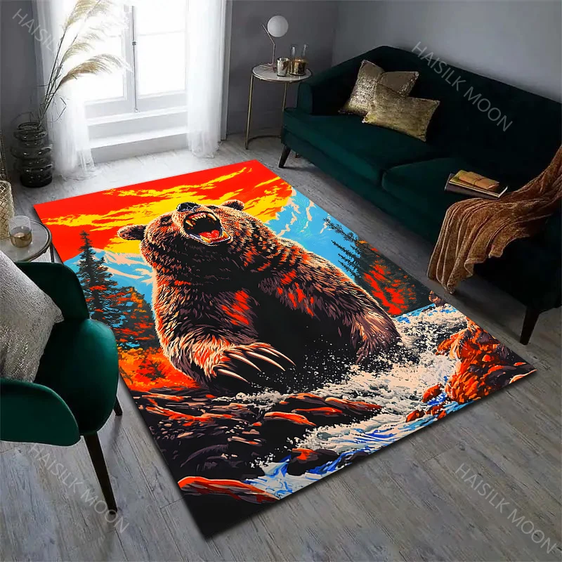 Multi tamanho marrom urso padrão tapete para sala de estar quarto sofá decoração de casa antiderrapante tapete de jogo ao ar livre