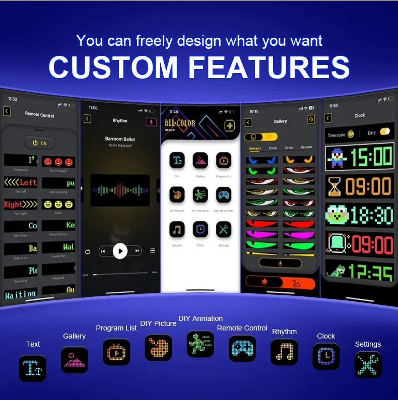 【Controle de aplicativo inteligente】Conecte a matriz de LED através do APP, você pode criar texto, padrões, animações DIY de acordo com suas próprias necessidades e cenas, e também pode ajustar o brilho e a velocidade para atender perfeitamente às suas necessidades.