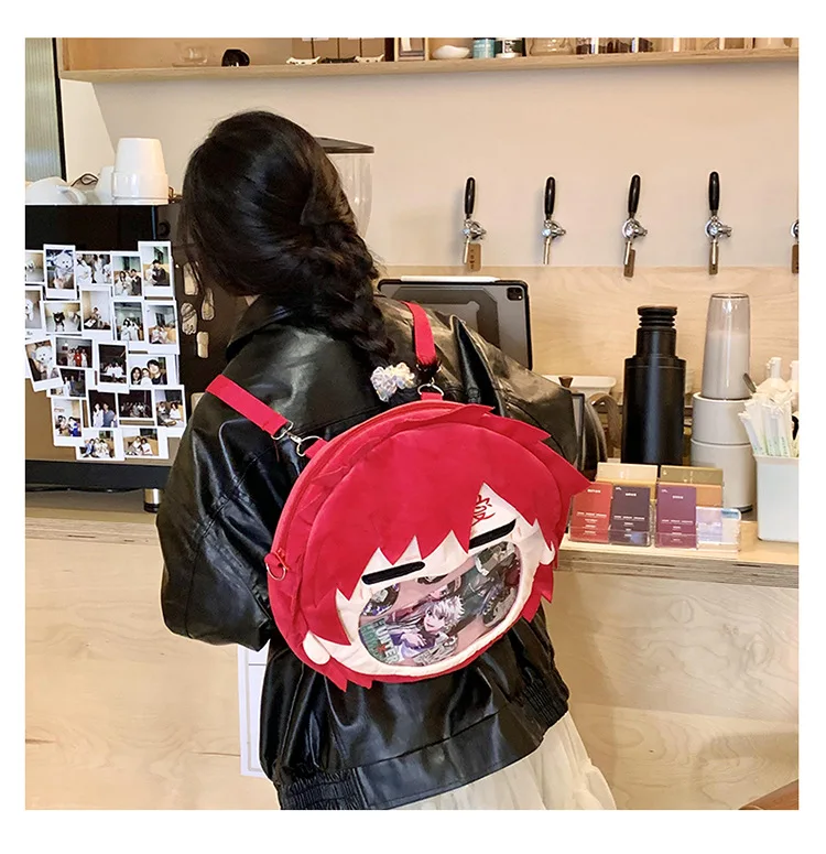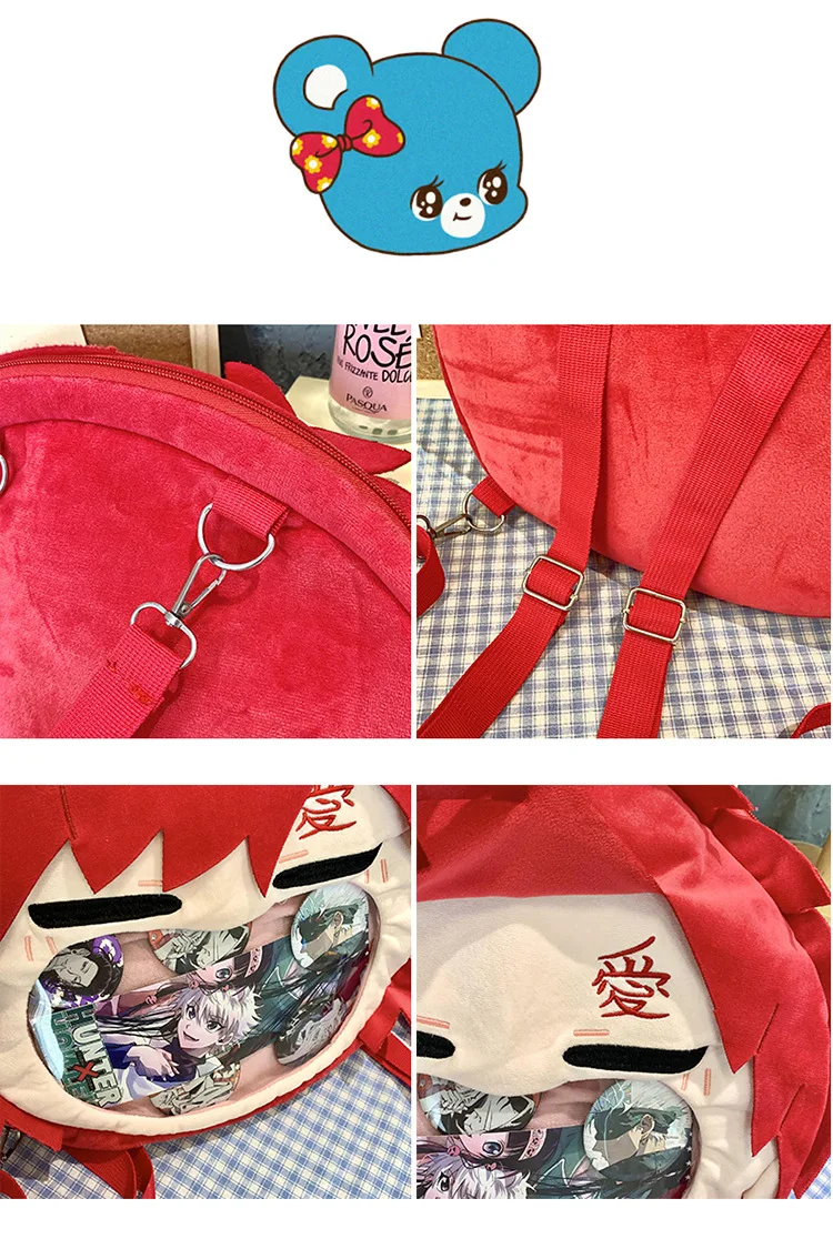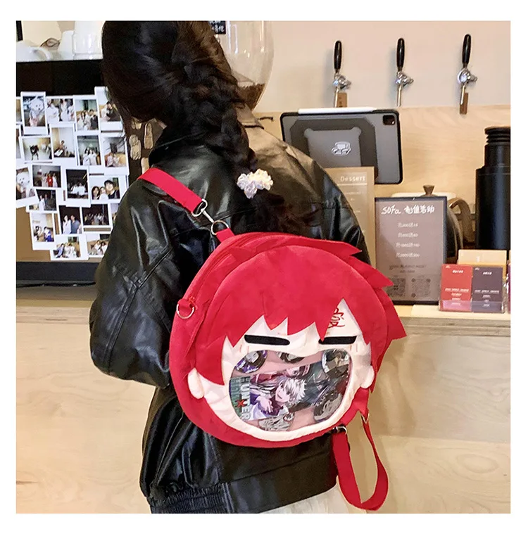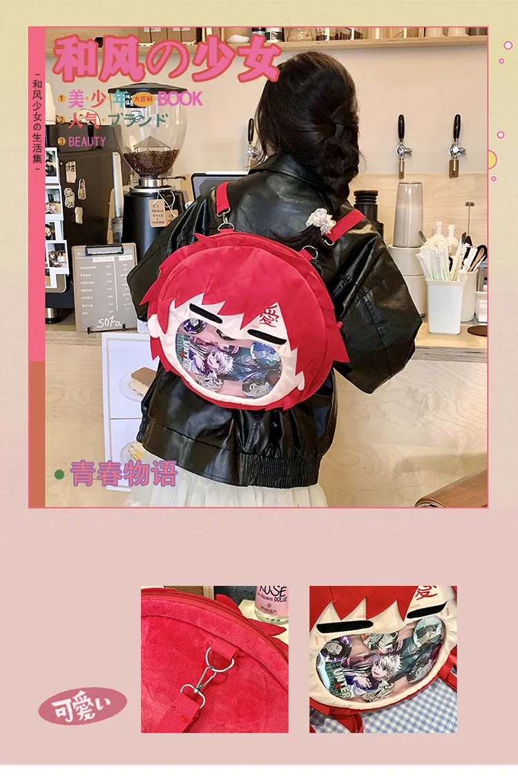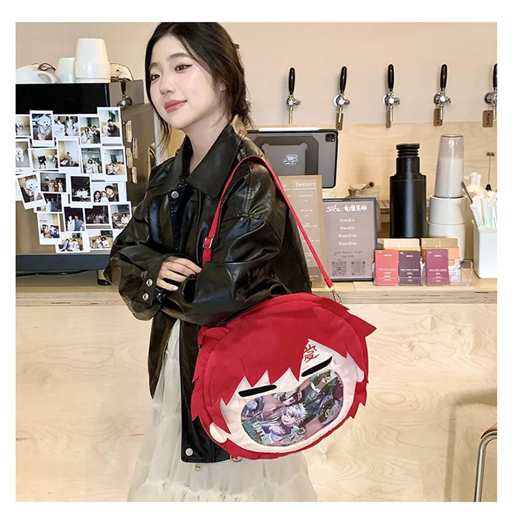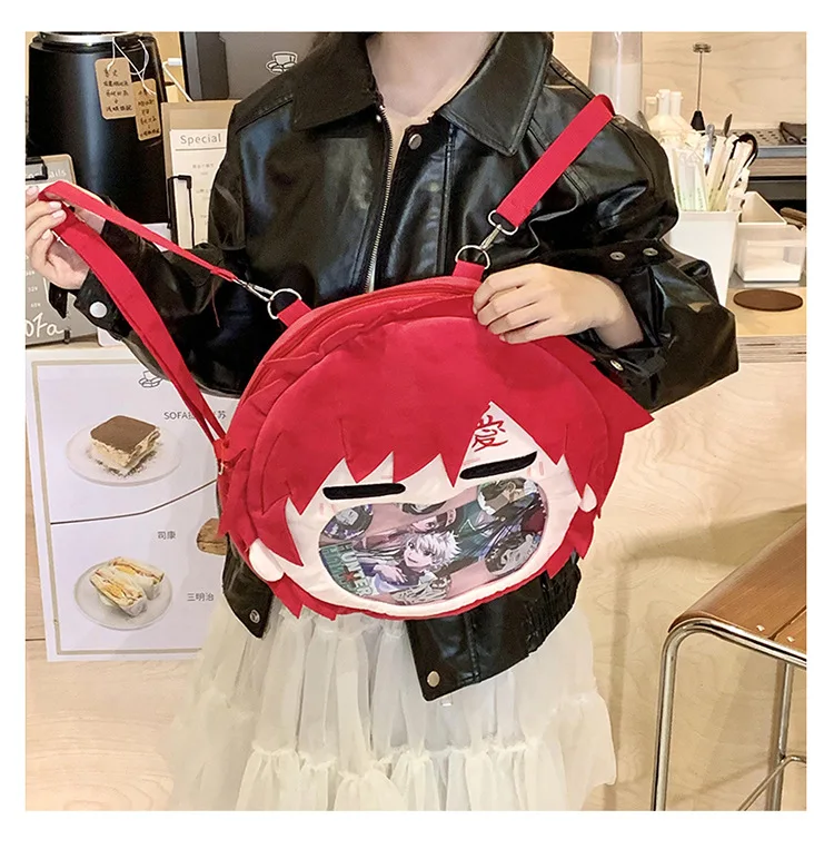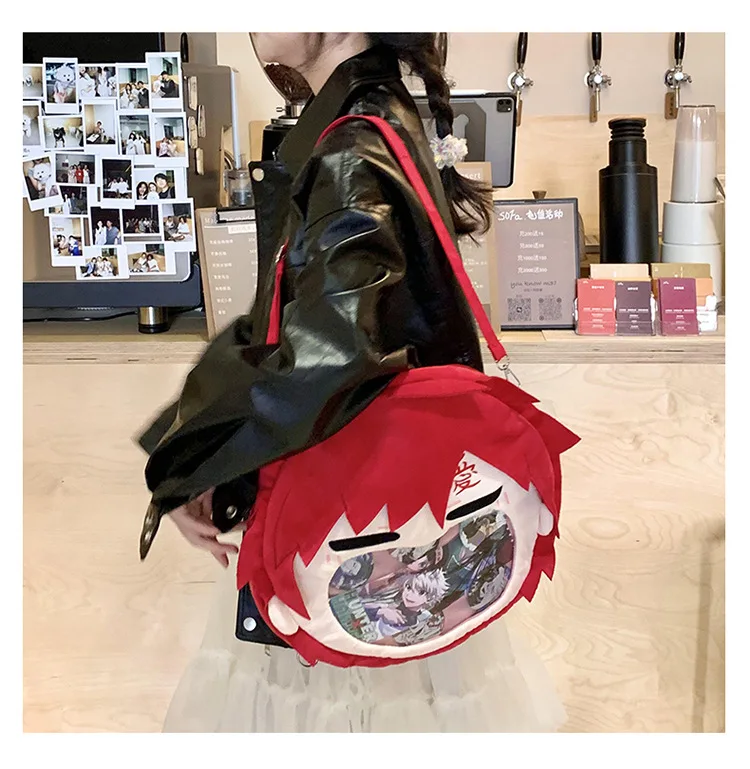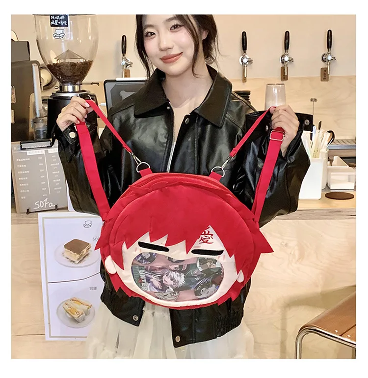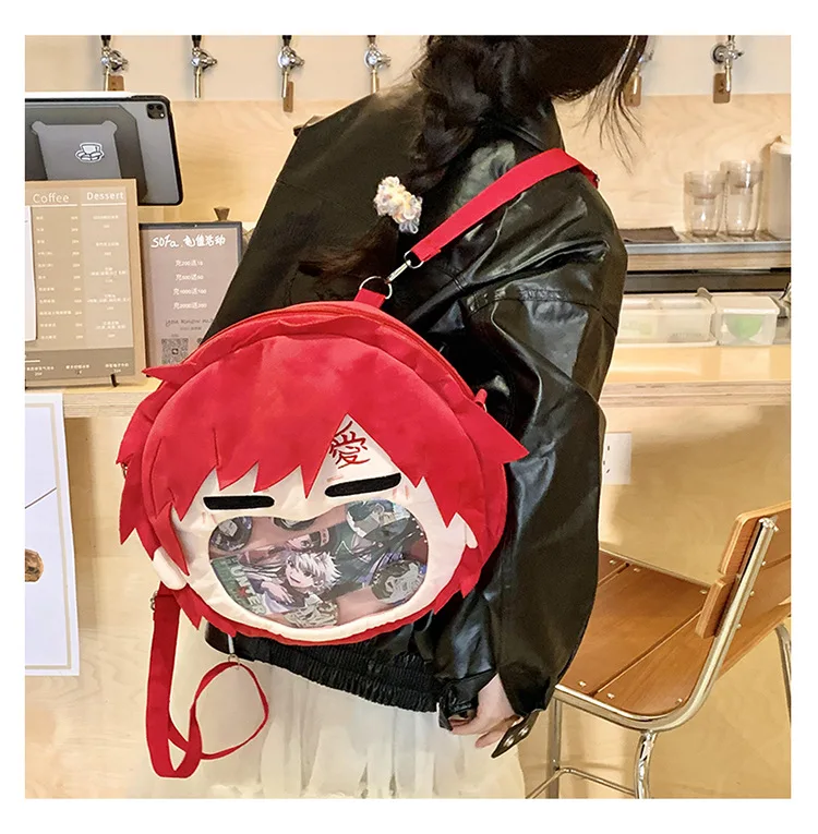 - > Naruto mochila gaara saco de pelúcia itabag transparente commuter versátil crossbody saco cosplay crachá exibição armazenamento presentes do feriado