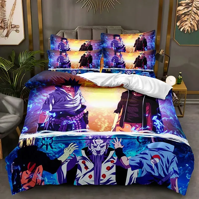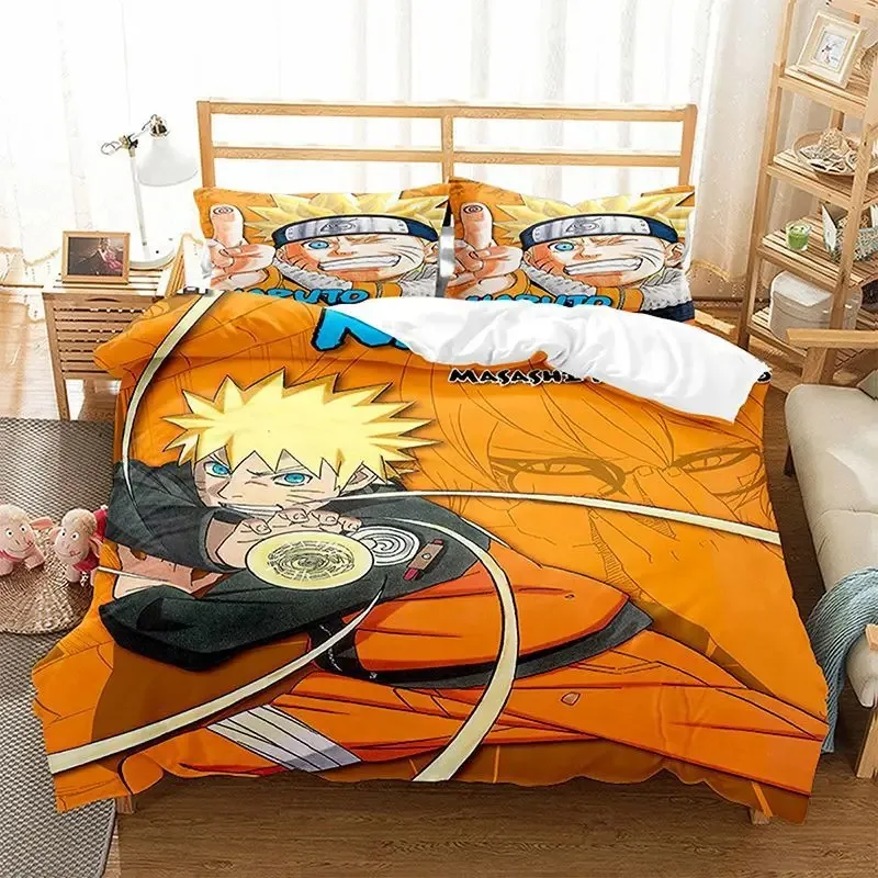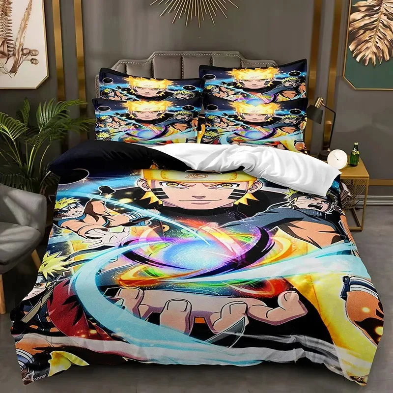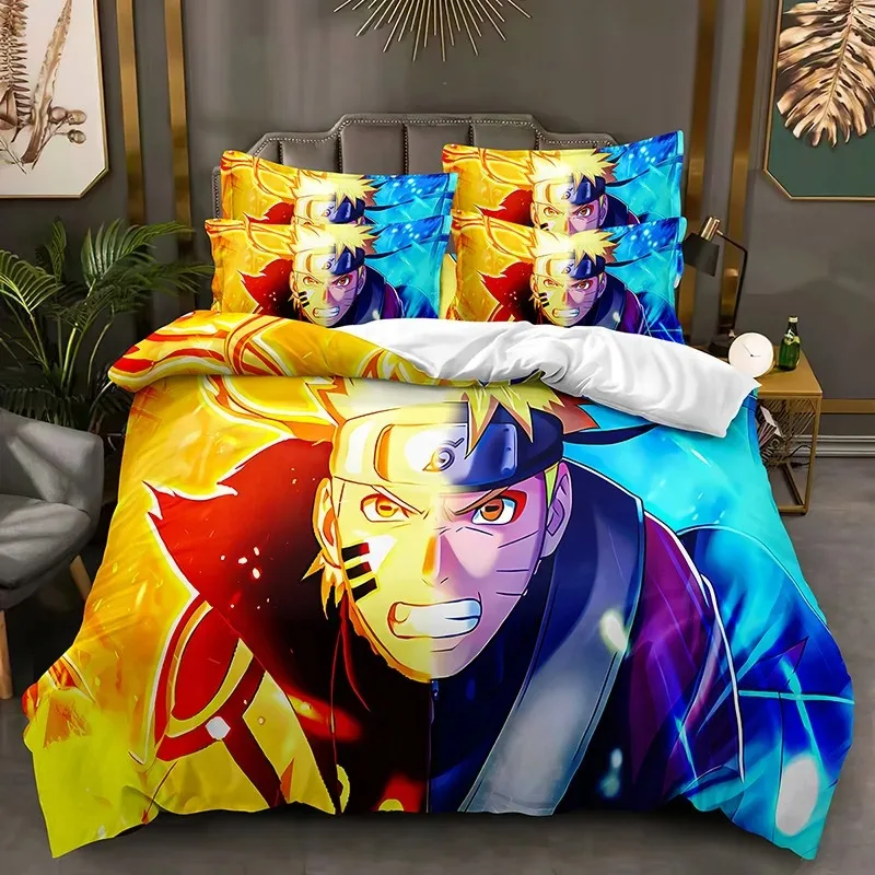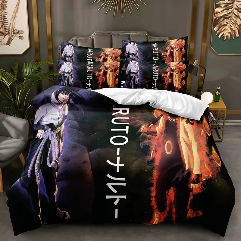 Narutos uzumakizd padrão conjunto de cama anime impresso poliéster fronha colcha conjunto 3 peças crianças adulto capa conjunto duplo rei