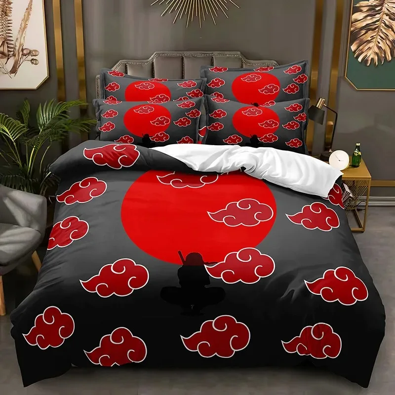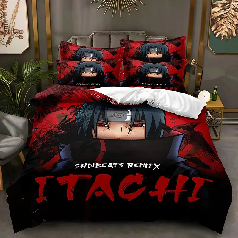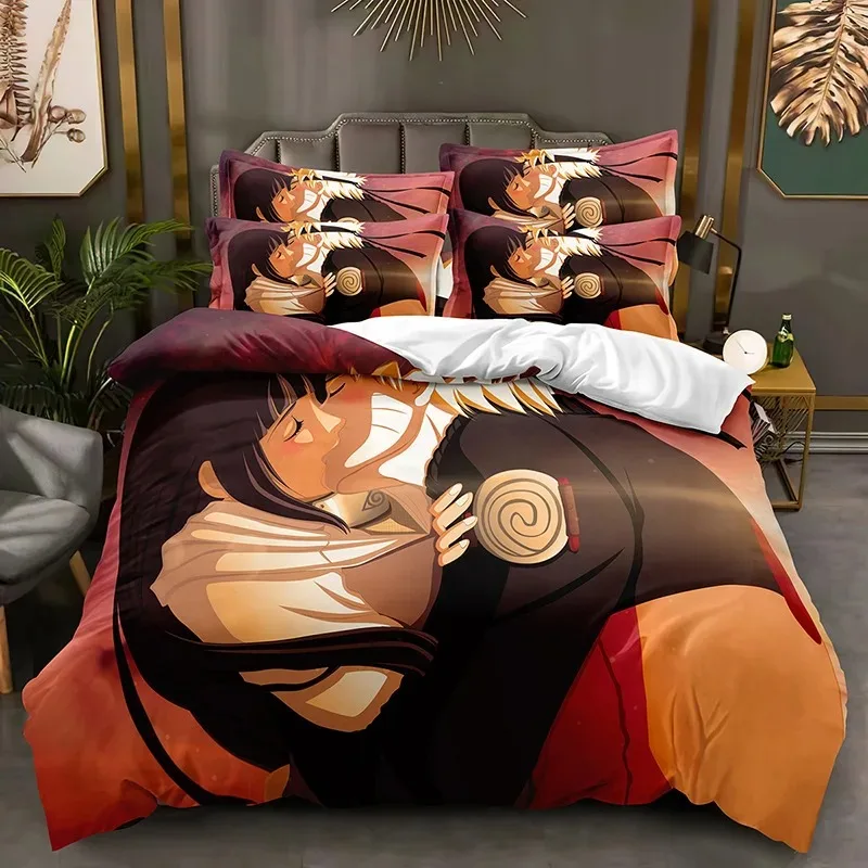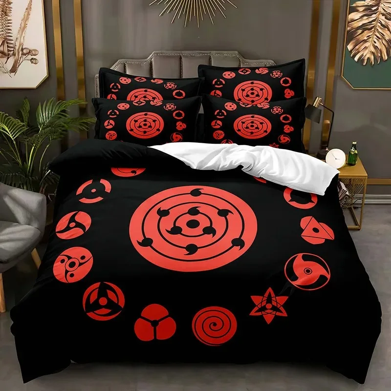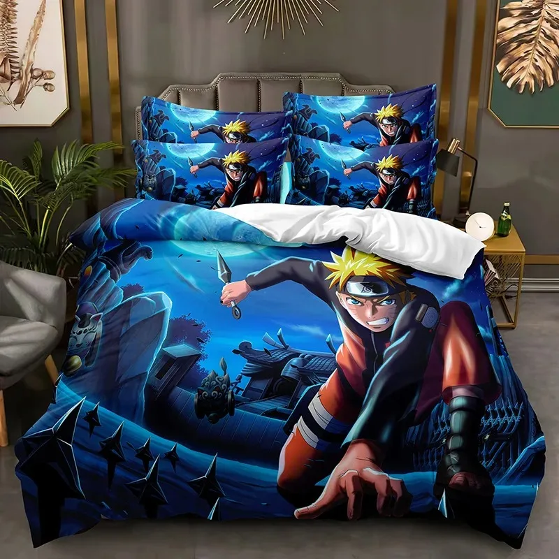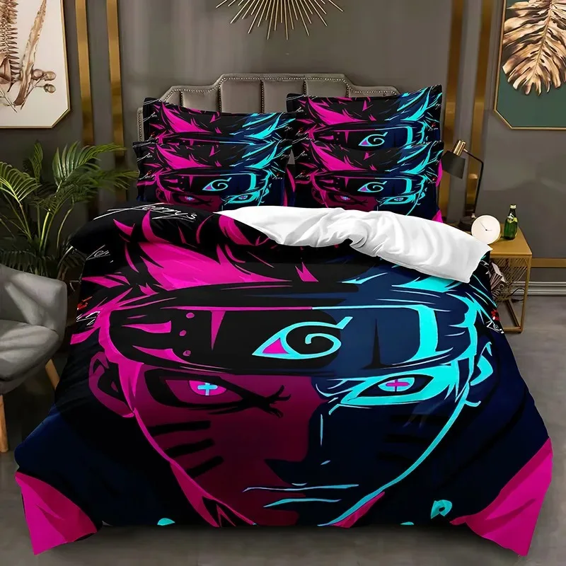Narutos uzumakizd padrão conjunto de cama anime impresso poliéster fronha colcha conjunto 3 peças crianças adulto capa conjunto duplo rei