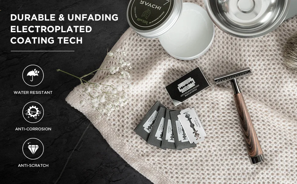 Navalha de segurança avançada com borda dupla, cabo de madeira falsa, resistente, ferramentas de barbear masculinas de alta qualidade, incluindo caixa de presente com 5 lâminas