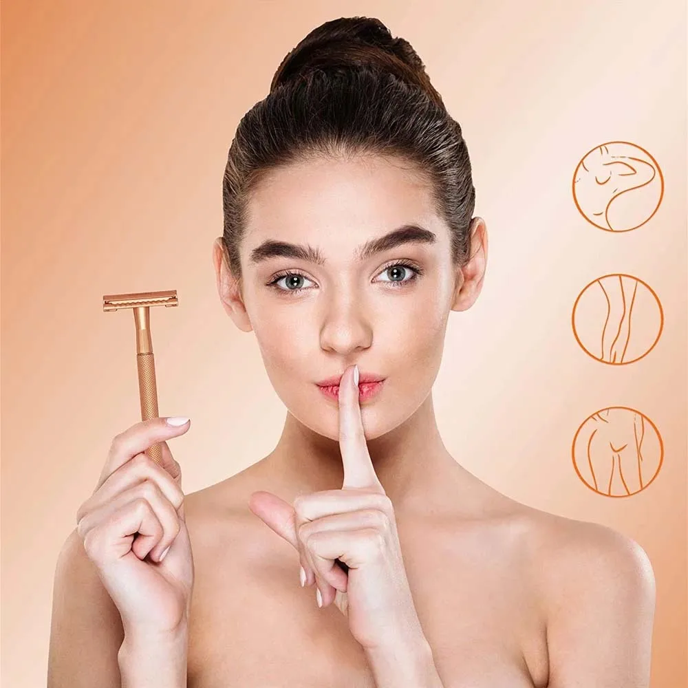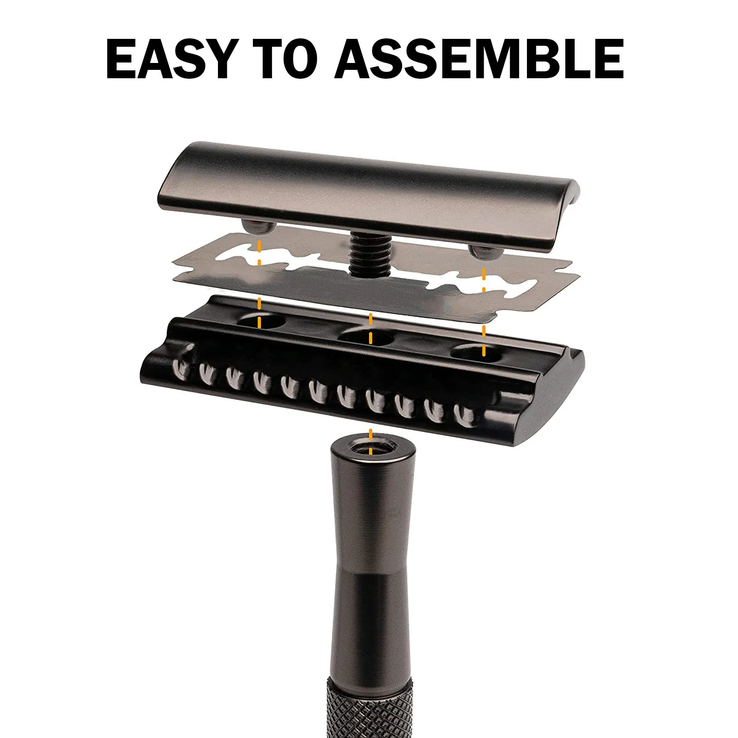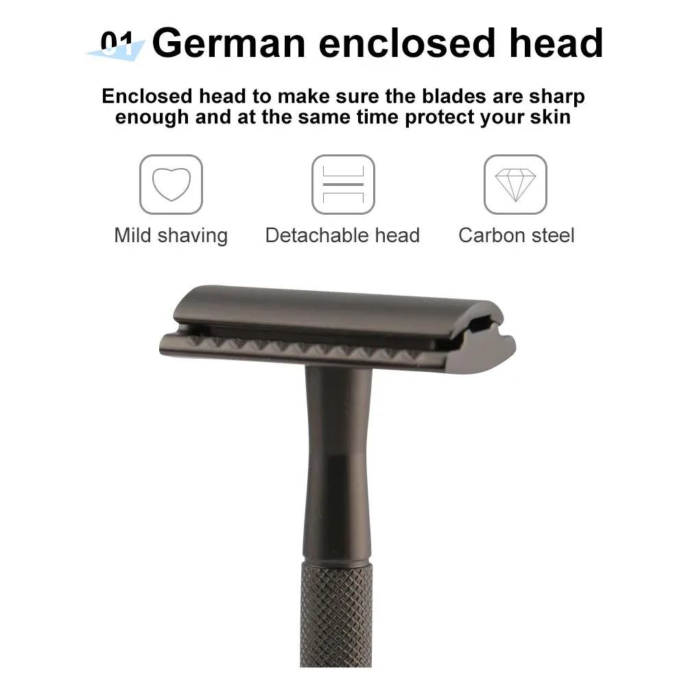 Navalha de segurança de aço inoxidável com alça ponderada para homens, recargas de lâmina de borda dupla, navalha de lâmina única para barbear, barbeador masculino