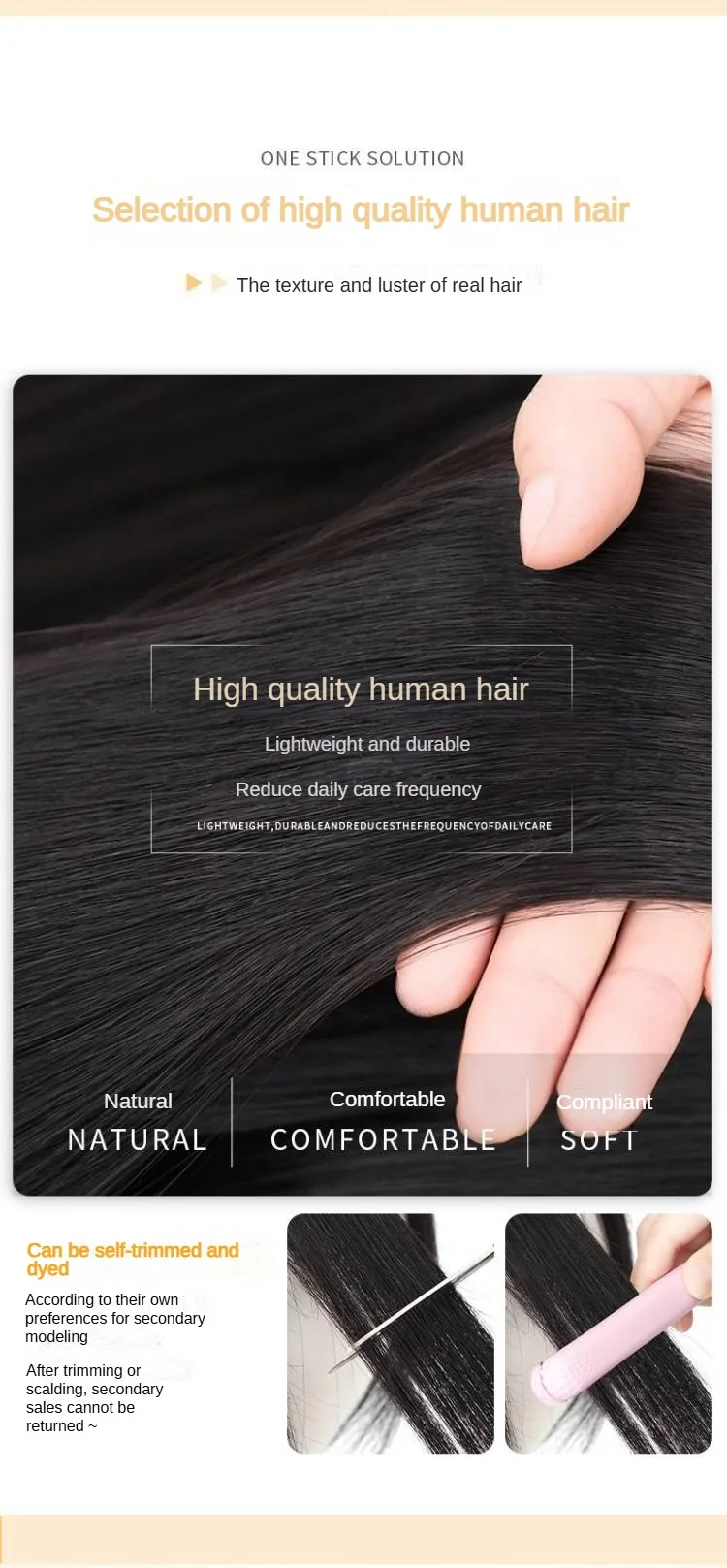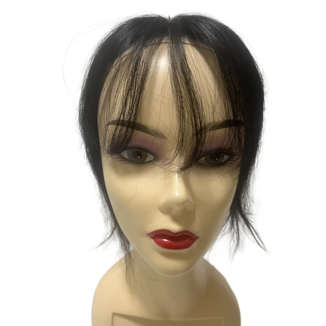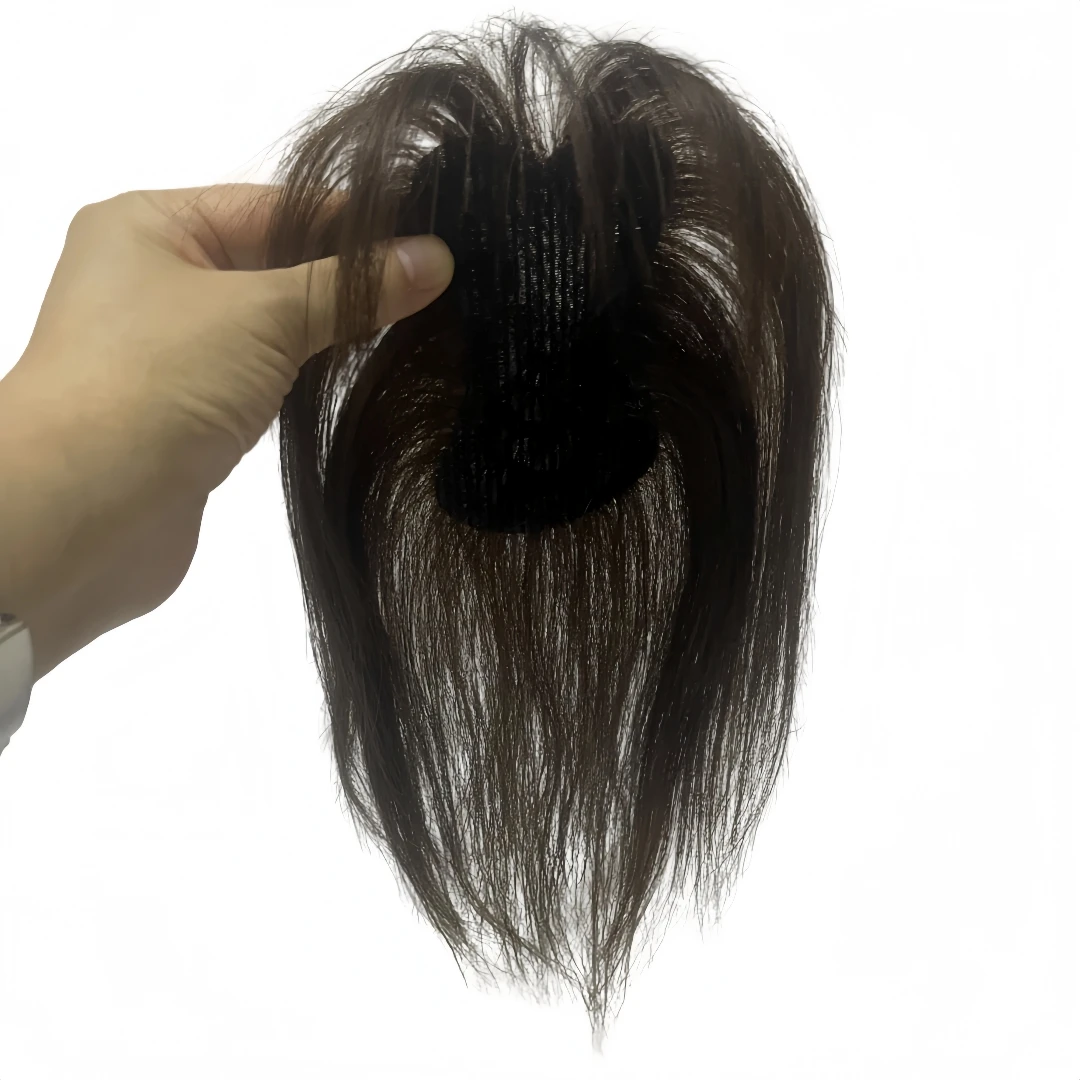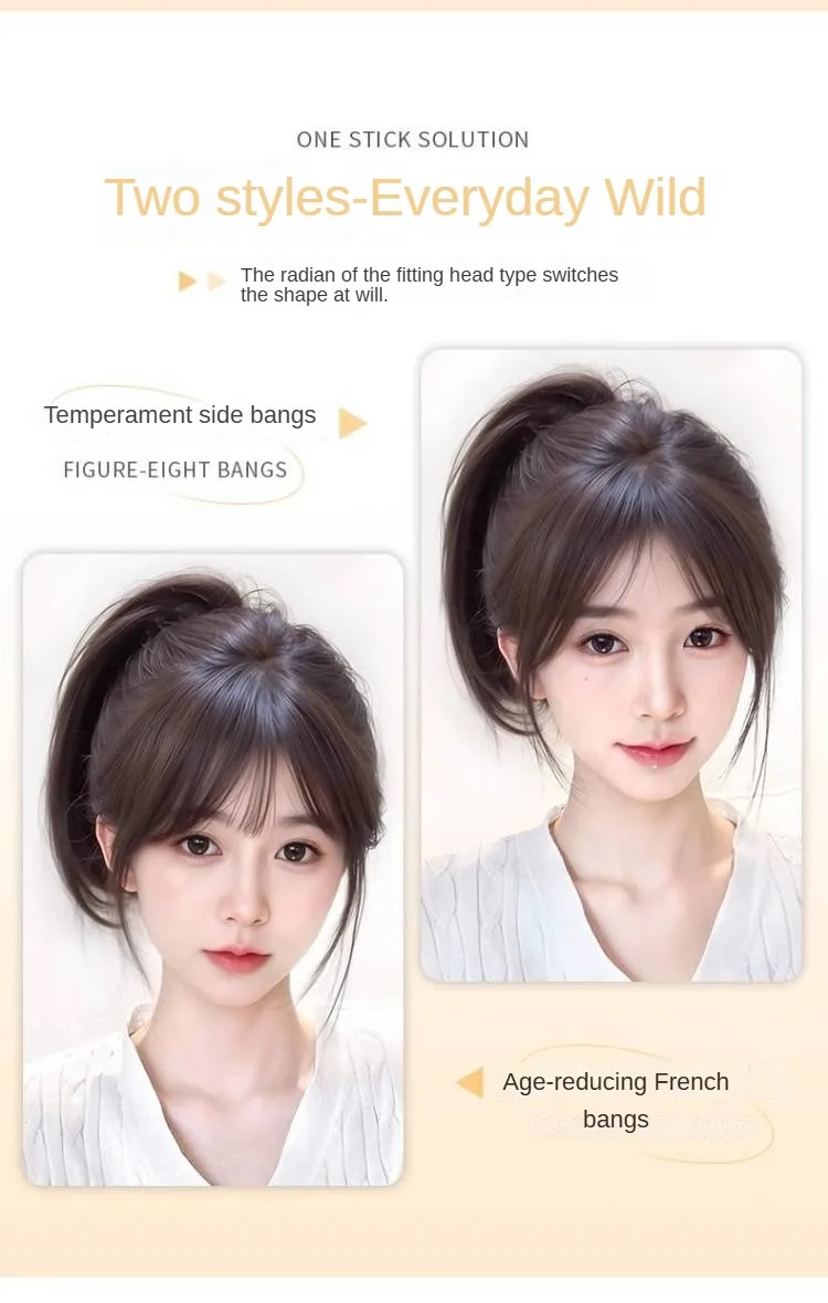 - > Nenhum clipes de cabelo humano franja francesa gancho e laço pasta mágica toppers para mulheres fácil de usar adesivos de costura remendos de cabelo extensão