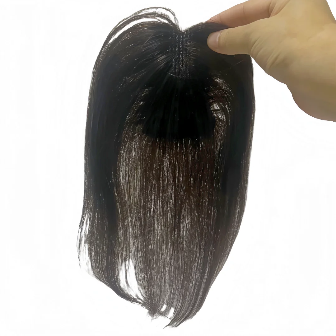 Nenhum clipes de cabelo humano franja francesa gancho e laço pasta mágica toppers para mulheres fácil de usar adesivos de costura remendos de cabelo extensão