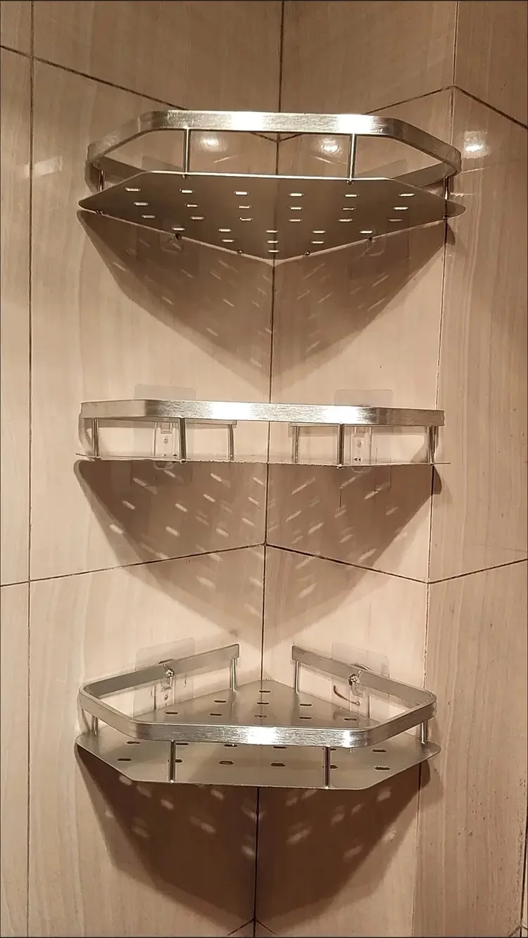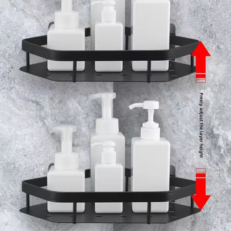 Nenhum necessidade de perfuração prateleira do banheiro liga alumínio shampoo rack organizador maquiagem prateleira do chuveiro acessórios do banheiro prateleira canto