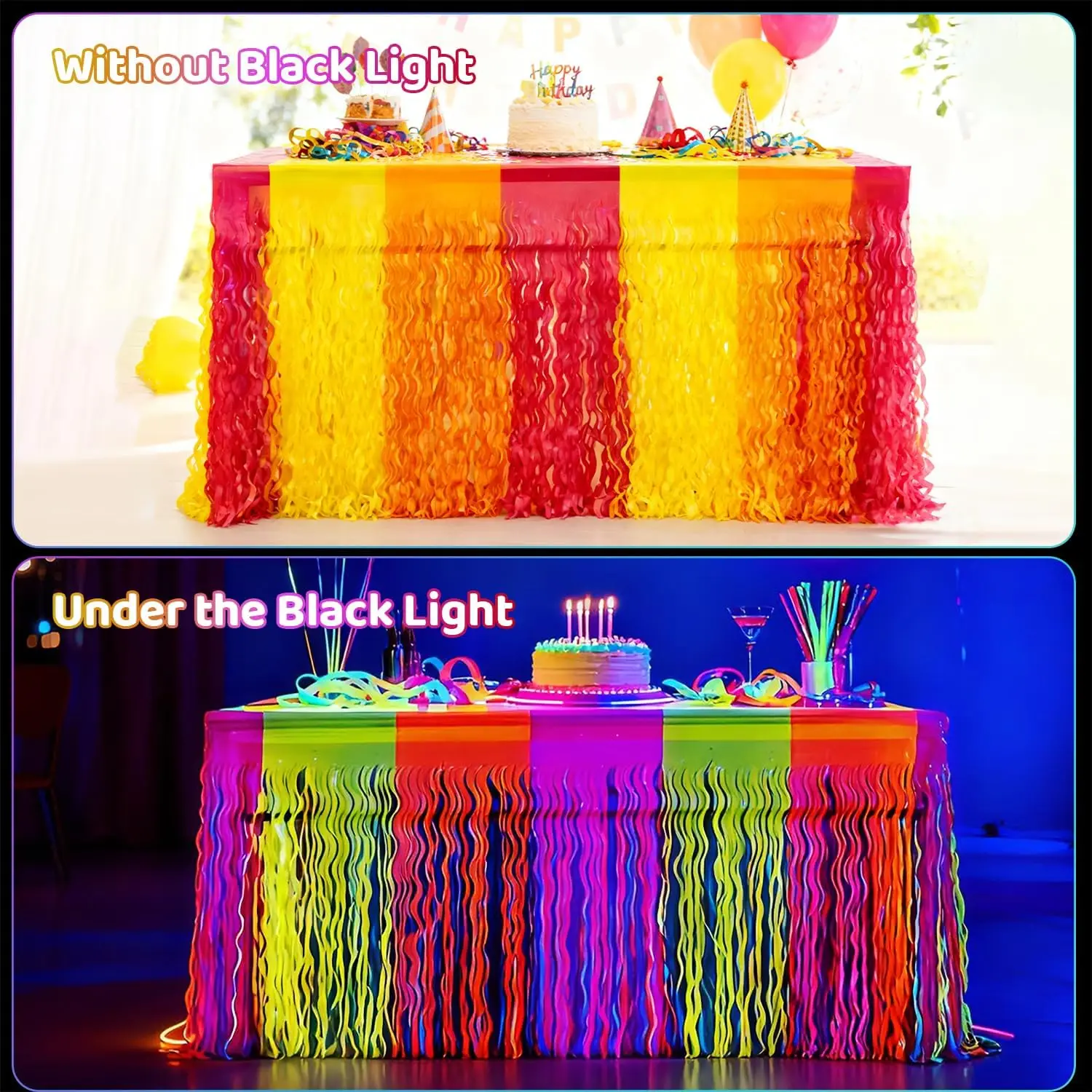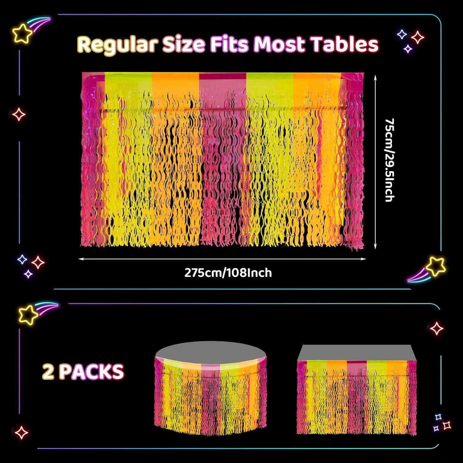 Neon fluorescente laranja amarelo fúcsia ondulado metálico enfeites folha franja saias de mesa que brilham no escuro fontes de festa decorações brilham