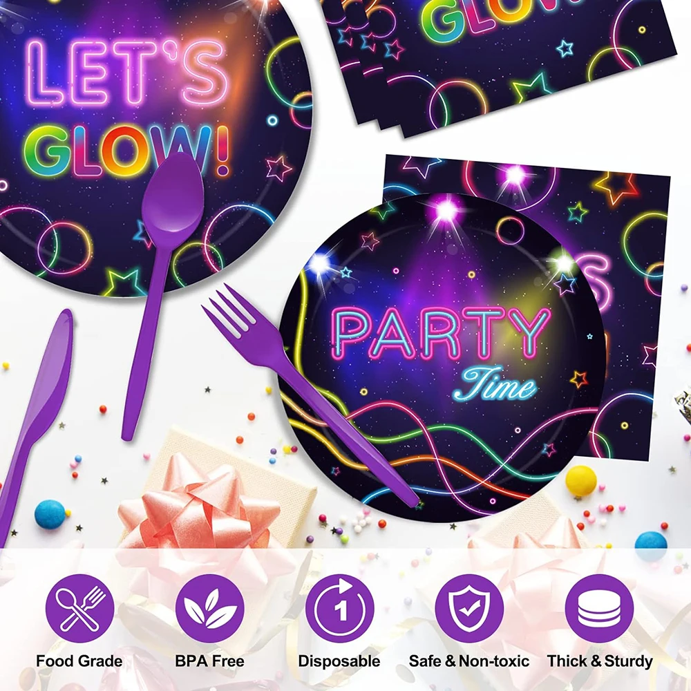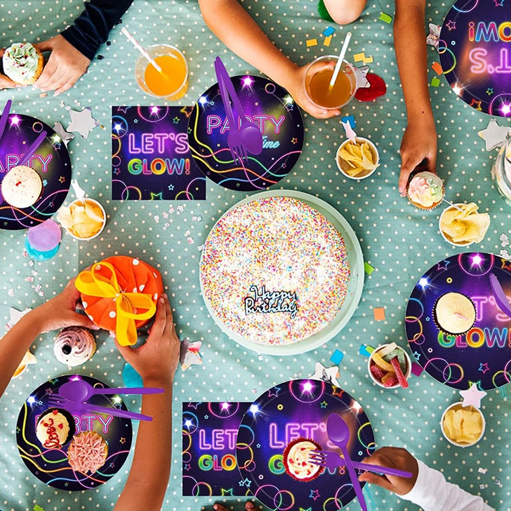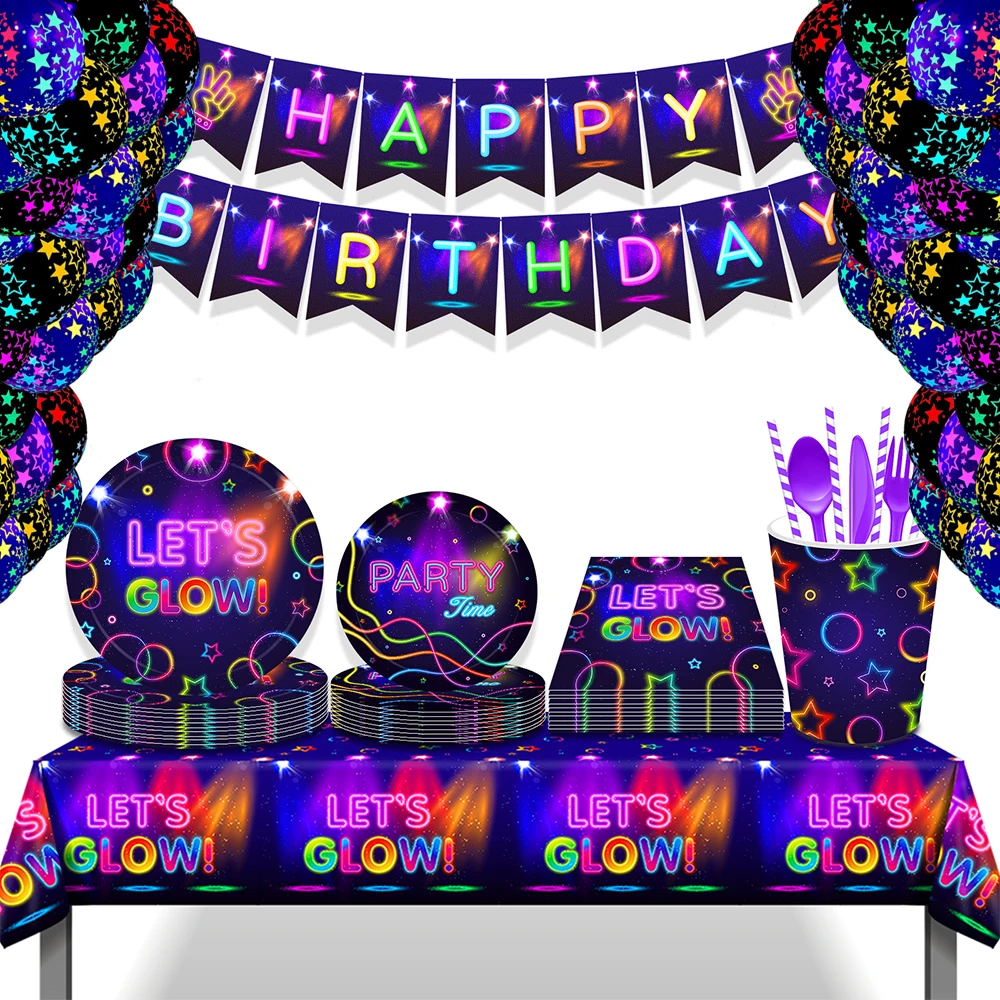 Brilho Partido Toalha De Mesa Guardanapos Copos Placas Banner Neon Látex Balões para Brilho Festa De Aniversário Disco Decoração Do Casamento Suprimentos