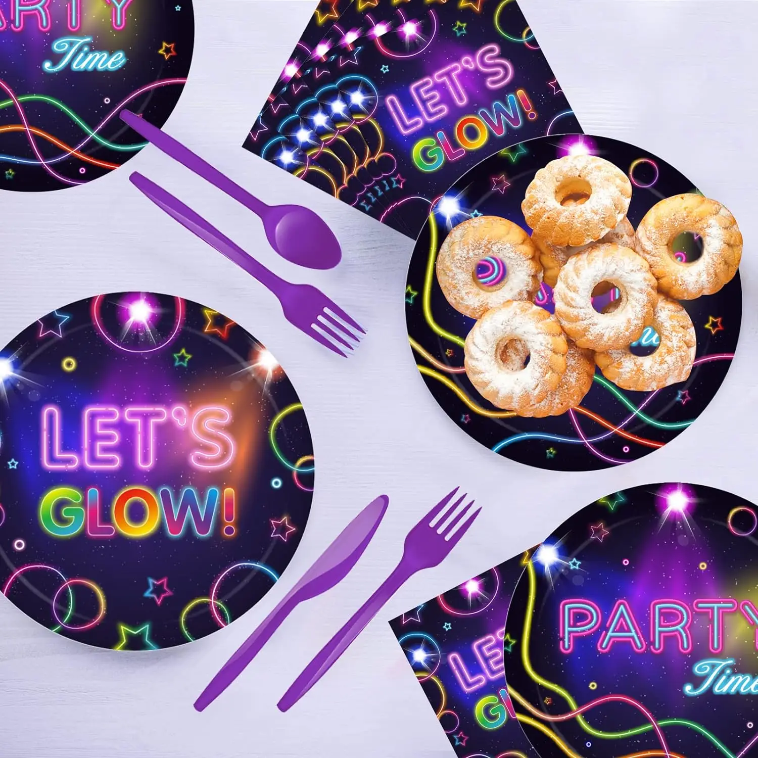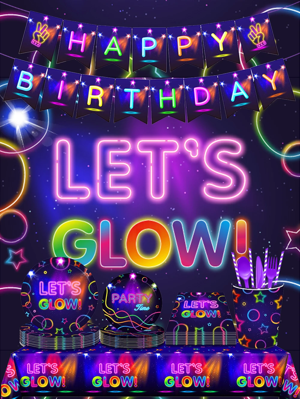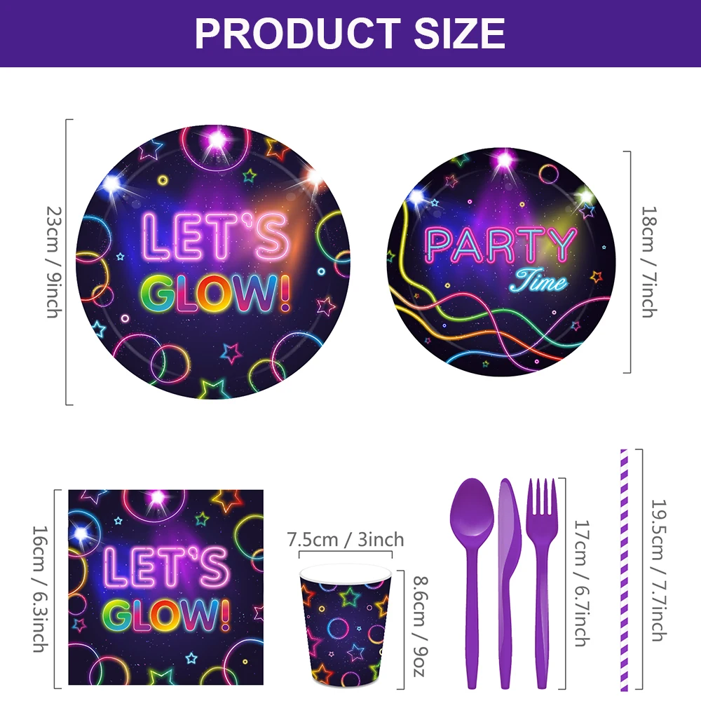Brilho Partido Toalha De Mesa Guardanapos Copos Placas Banner Neon Látex Balões para Brilho Festa De Aniversário Disco Decoração Do Casamento Suprimentos