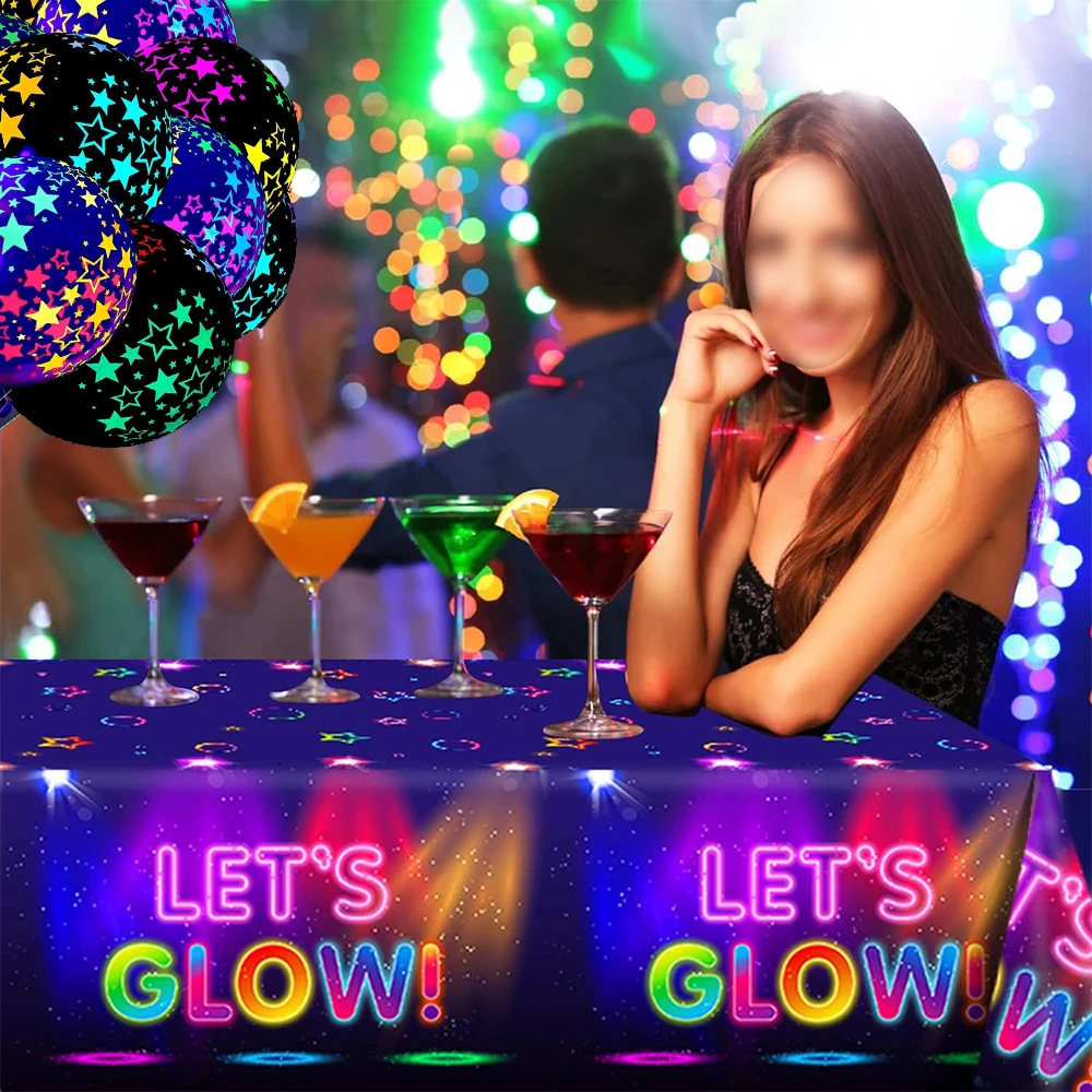 Neon Látex Balões para Festa de Aniversário, Glow Party Toalha De Mesa, Guardanapos, Copos, Pratos, Banner, Decoração Suprimentos, Disco, Casamento