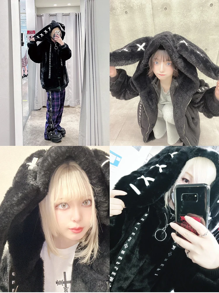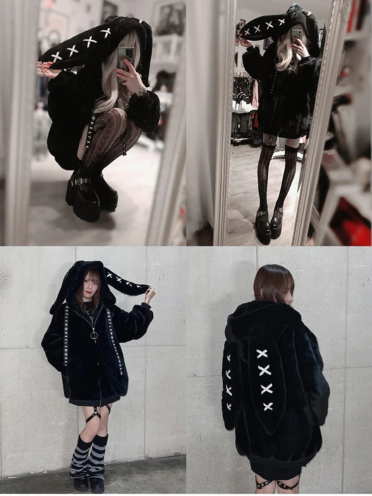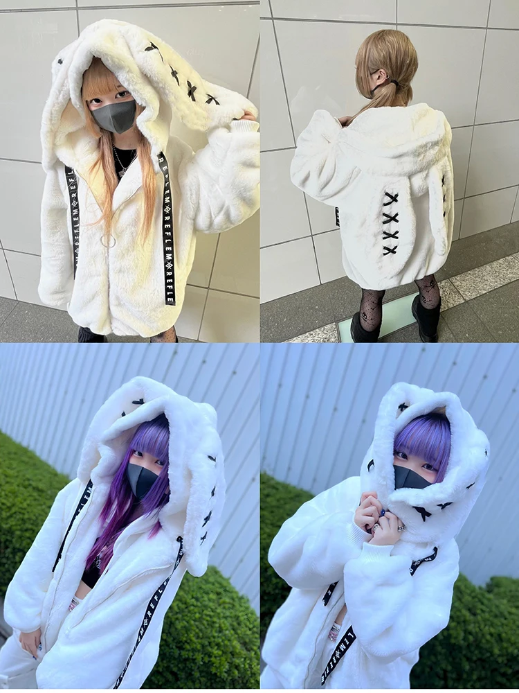 - > Nerazzurri inverno doce bonito kawaii macio grosso quente branco casaco de pele do falso feminino com orelhas de coelho bonito fofo jaqueta com capuz 2024