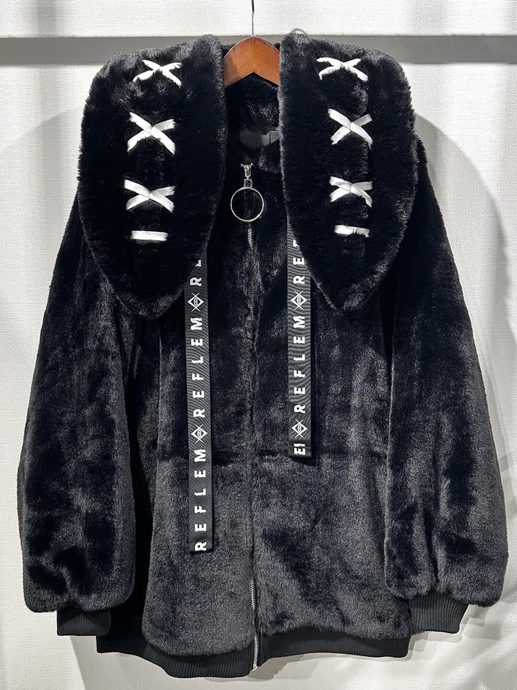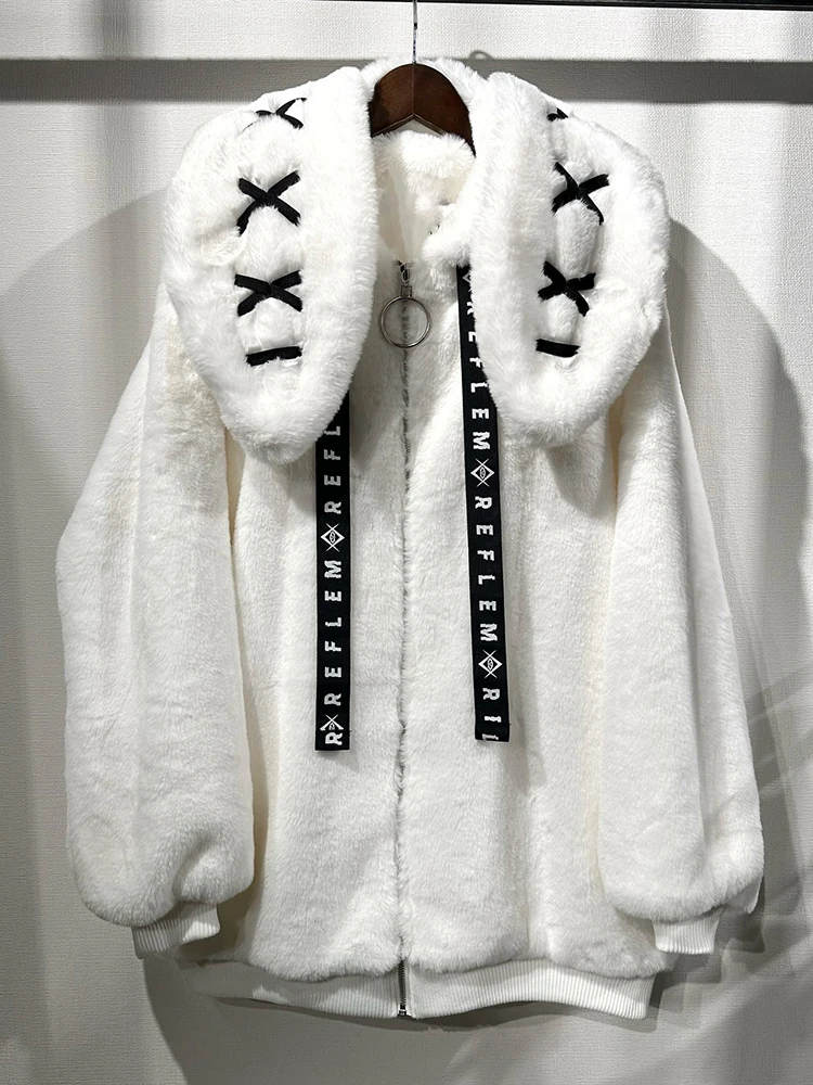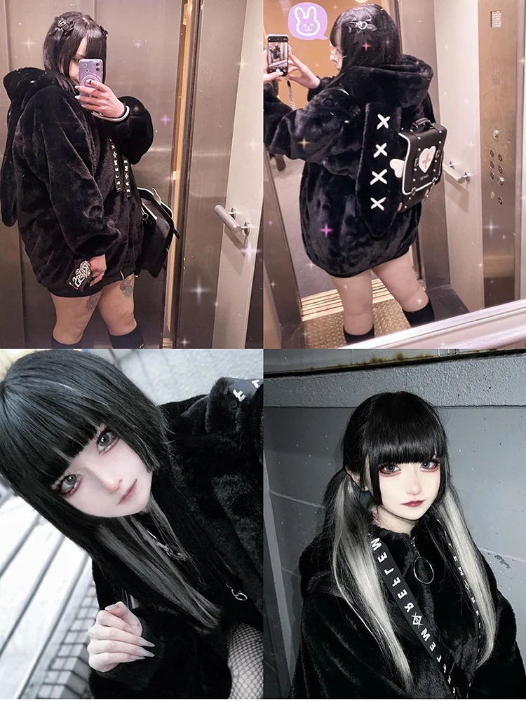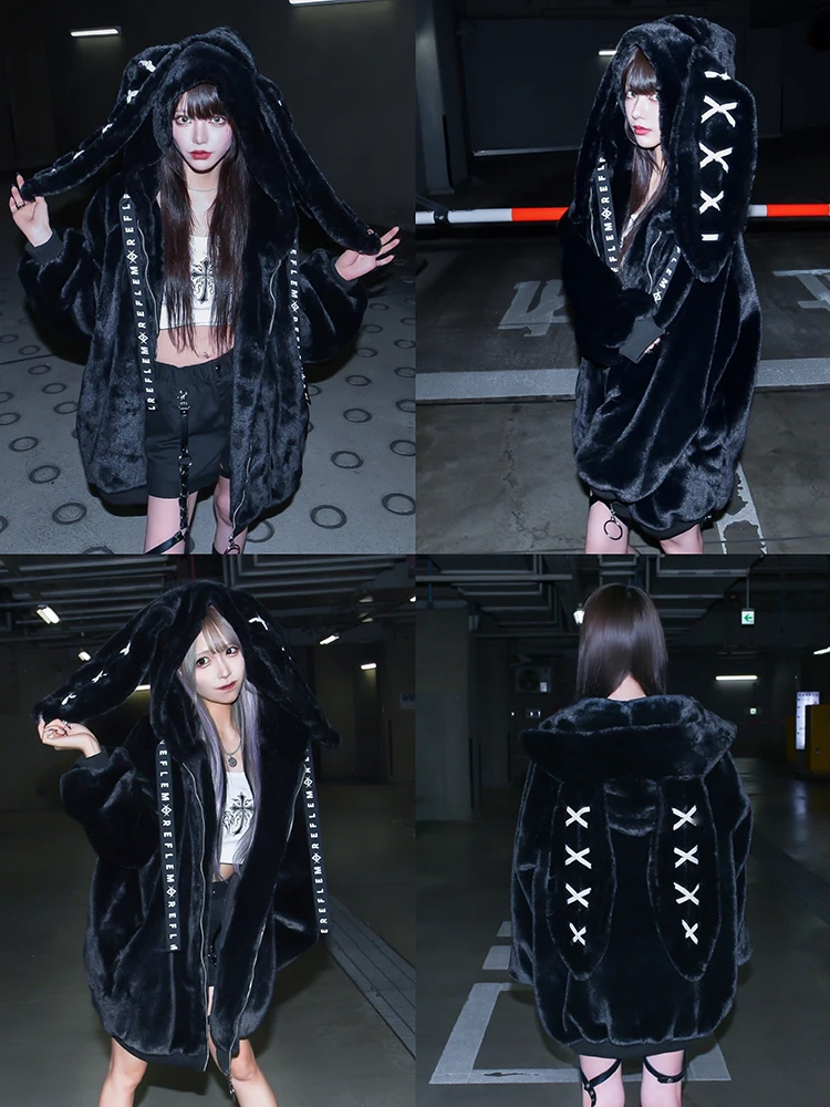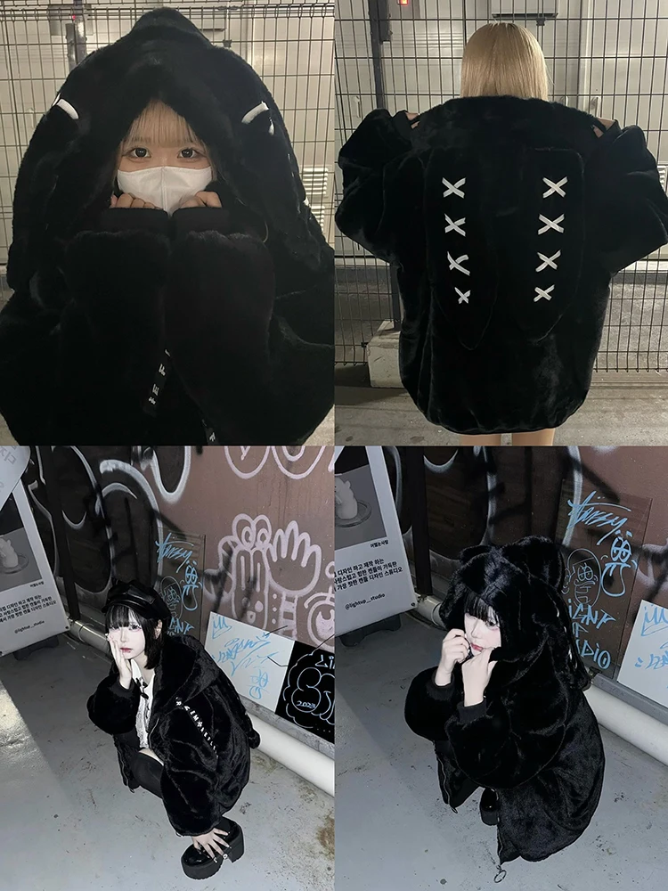 Nerazzurri inverno doce bonito kawaii macio grosso quente branco casaco de pele do falso feminino com orelhas de coelho bonito fofo jaqueta com capuz 2024