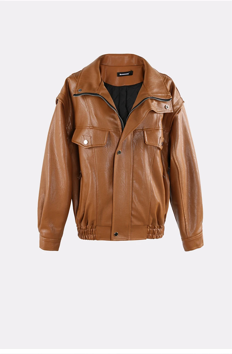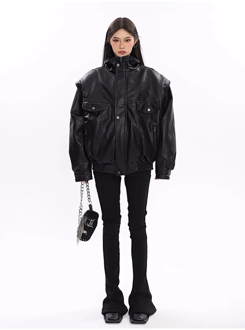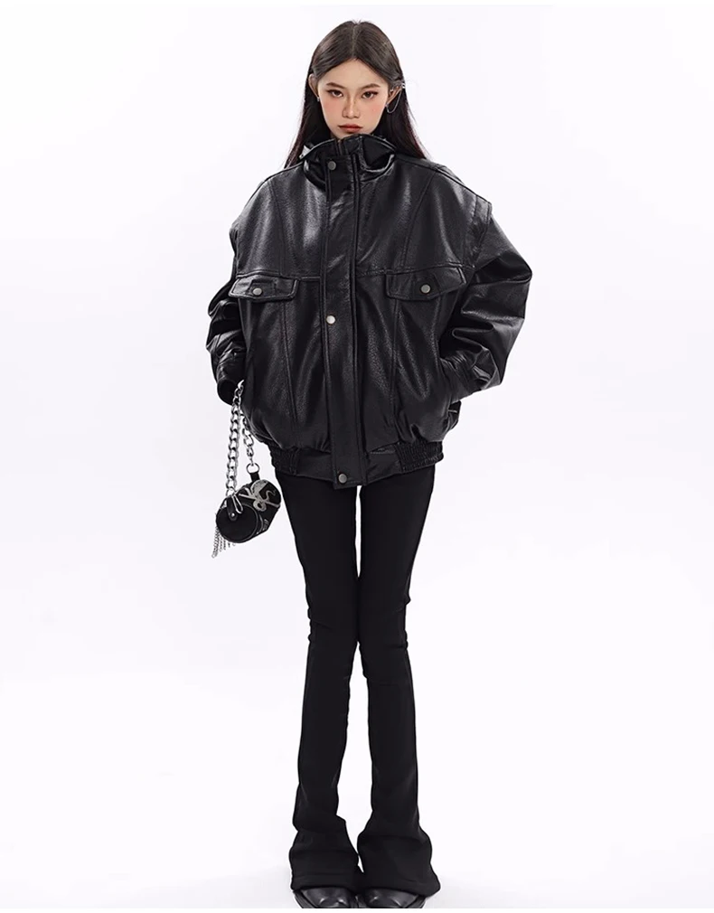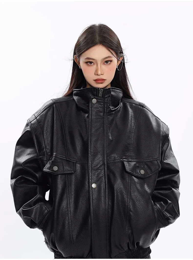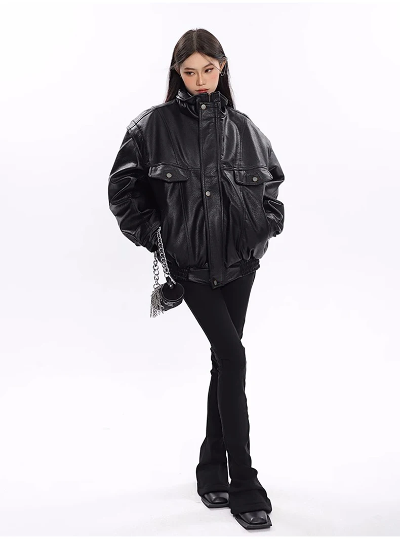 - > Nerazzurri-Jaqueta de couro PU preta grossa para mulheres, extragrande, à prova de vento, zíper, grosso, legal, designer, roupas unissex, primavera, outono, 2023