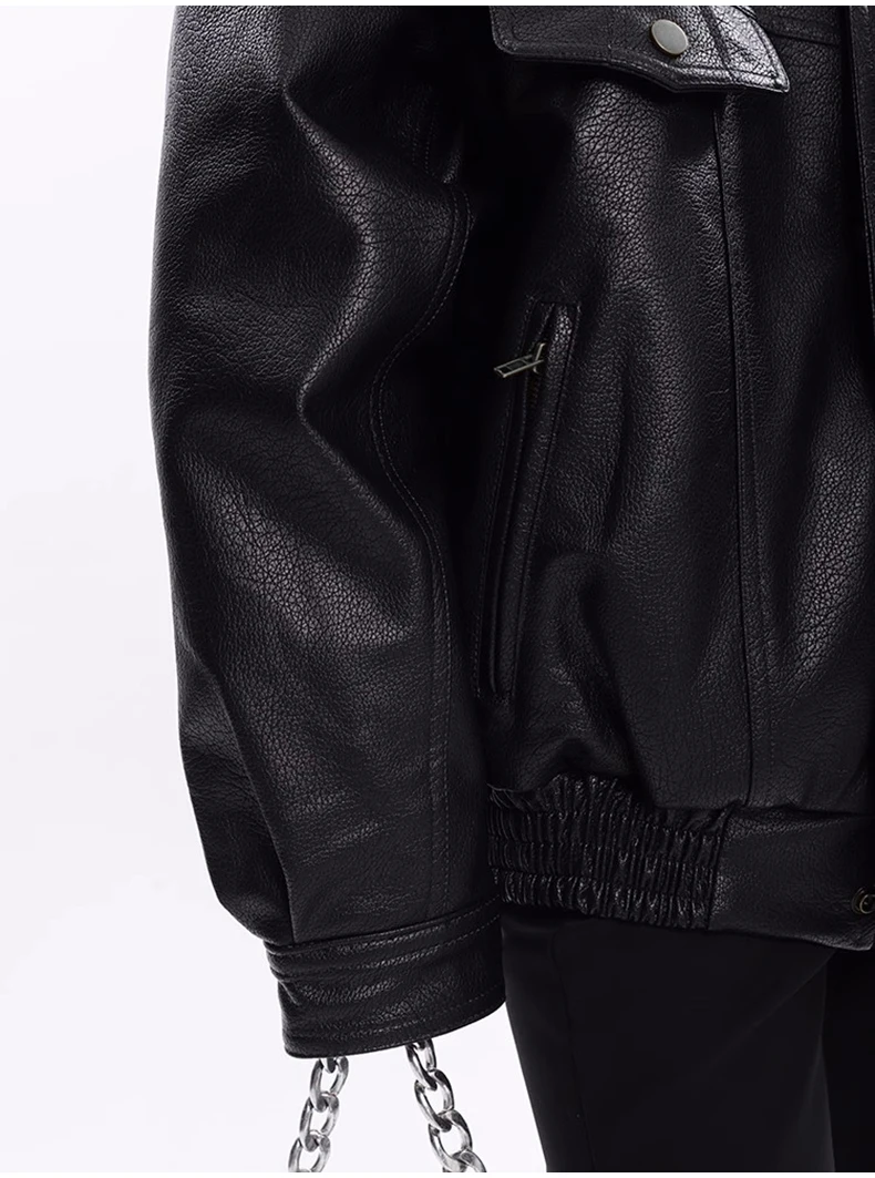 Nerazzurri-Jaqueta de couro PU preta grossa para mulheres, extragrande, à prova de vento, zíper, grosso, legal, designer, roupas unissex, primavera, outono, 2023