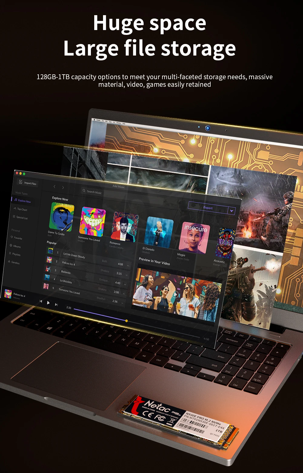 - > Netac ssd nvme m2 1tb 128gb 256gb 512gb m.2 ssd nvme pcie disco rígido interno unidade de estado sólido para portátil desktop