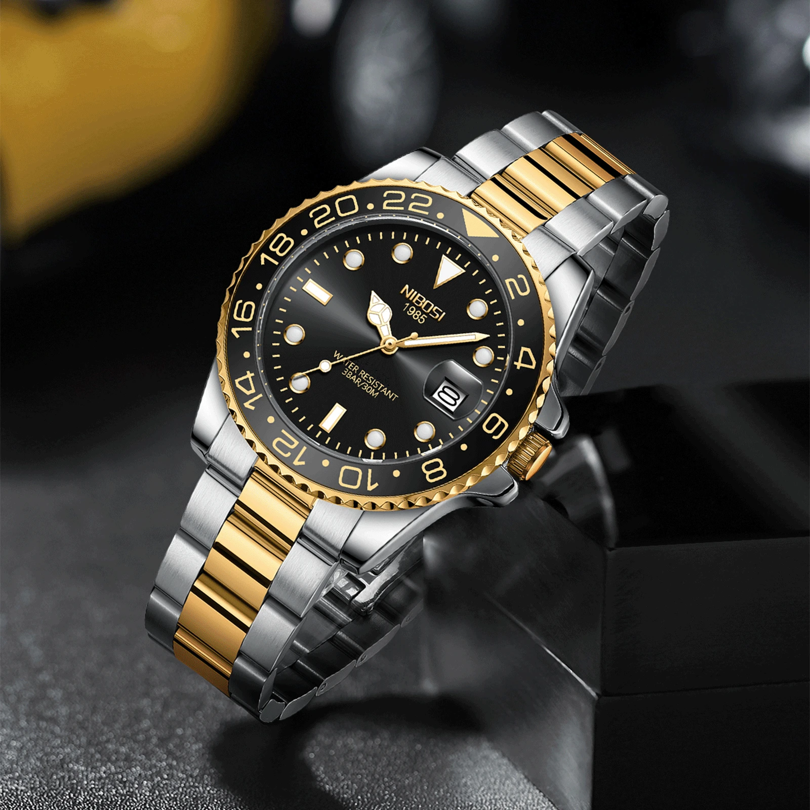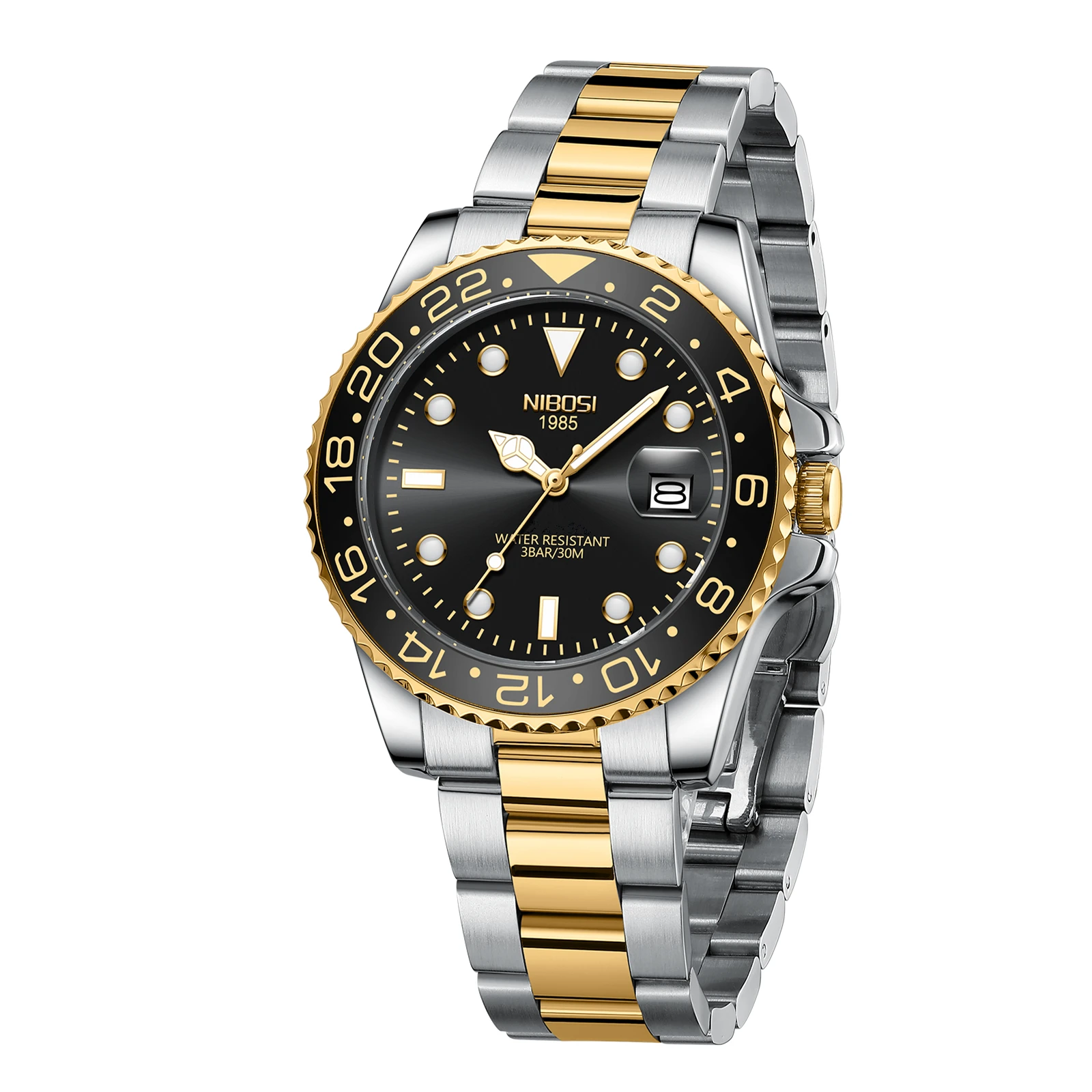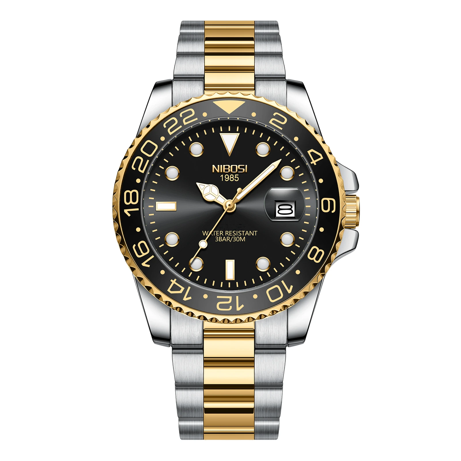 Relógio Masculino NIBOSI Dourado e Preto, Marca Top de Luxo, Quartzo, À Prova D'Água, Luminoso, Aço Inoxidável, Relógio de Pulso Relogio Masculino.