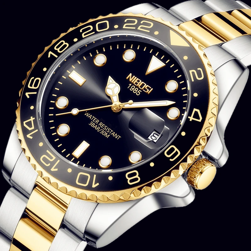 - > Nibosi ouro preto relógio masculino marca superior de luxo quartzo relógios à prova dwaterproof água luminosa aço inoxidável papel relógio relogio masculino