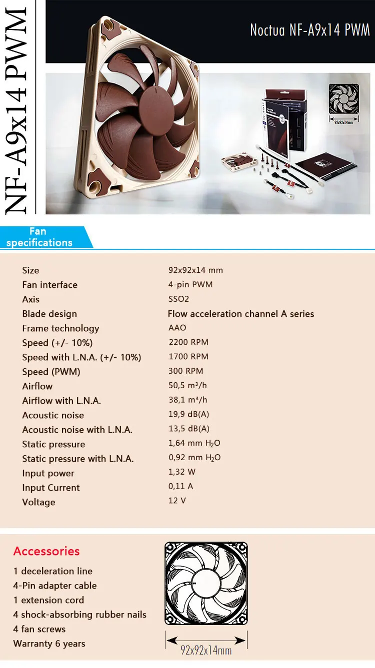- > Noctua-Ventilador CPU ultra-fino, ventilador NF-A9x14 PWM 9 centímetros, rolamento magneticamente estável, ventilador do chassi de 4 pinos, ultra-silencioso, 14mm, ultra-fino