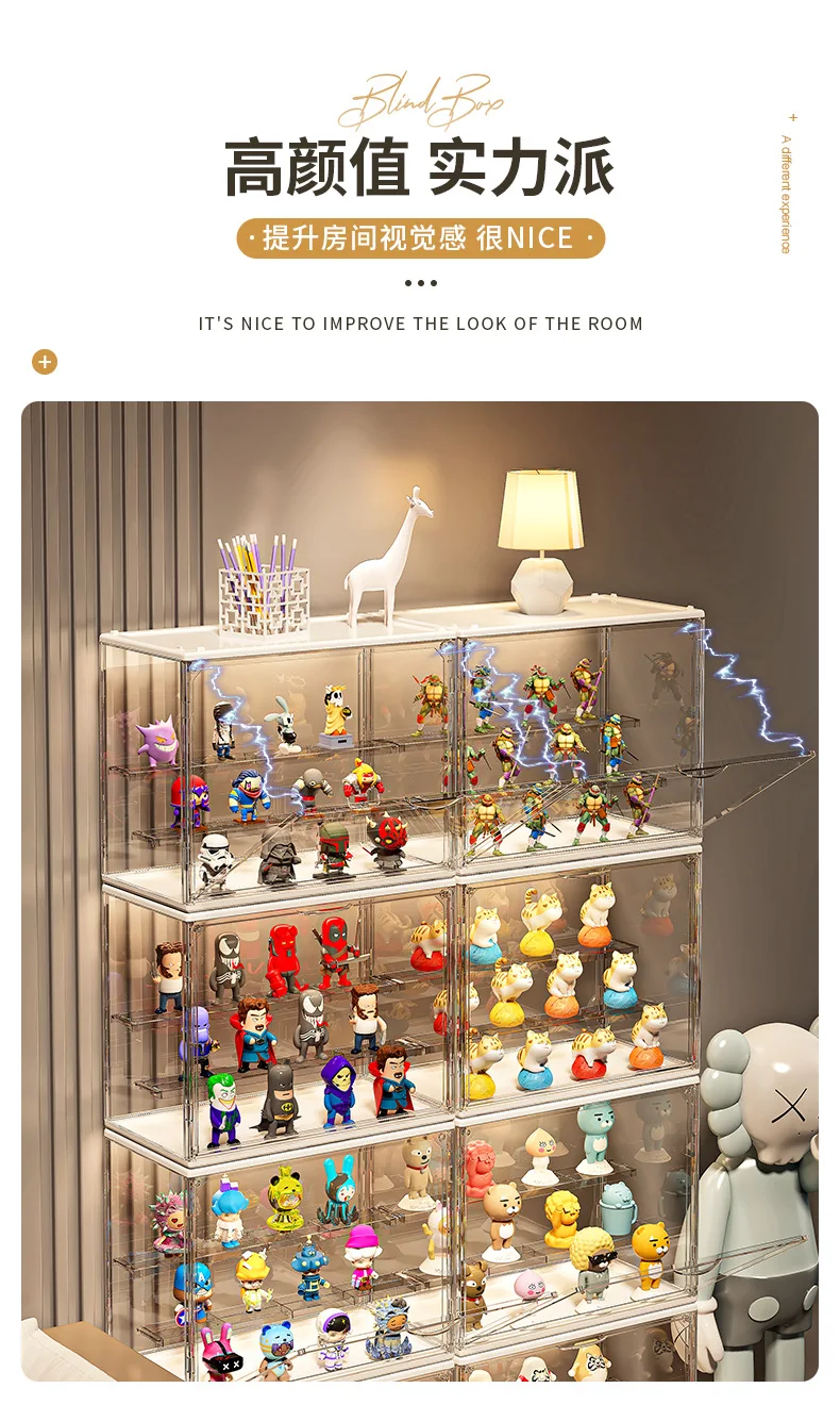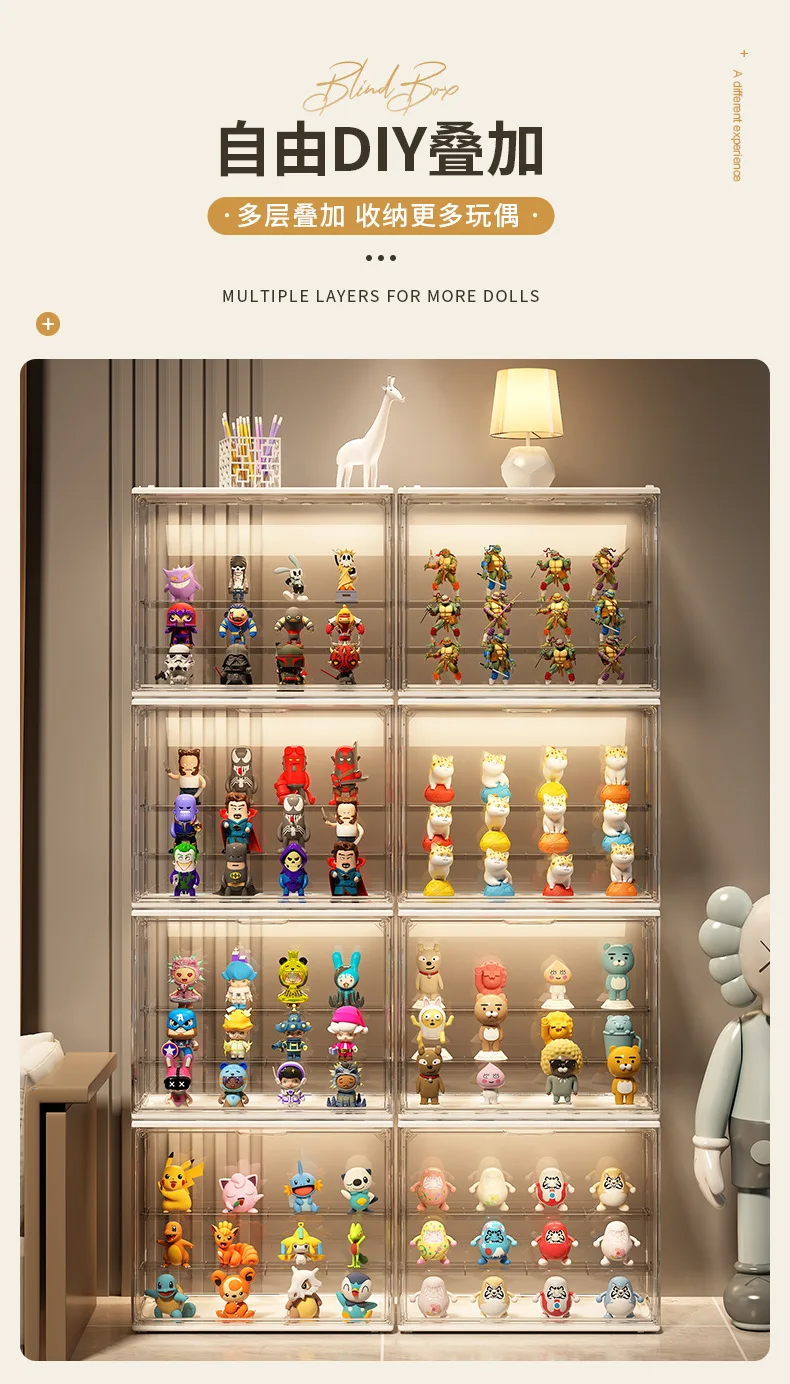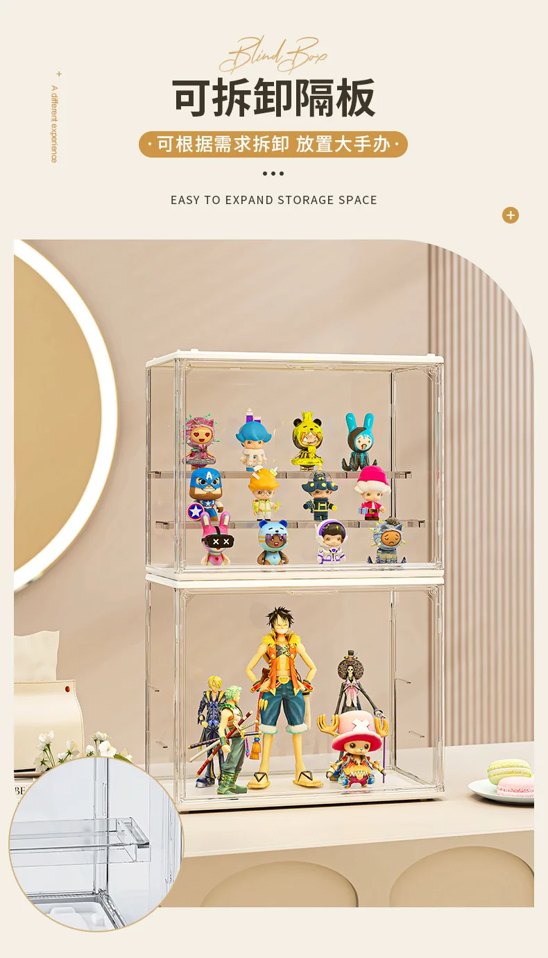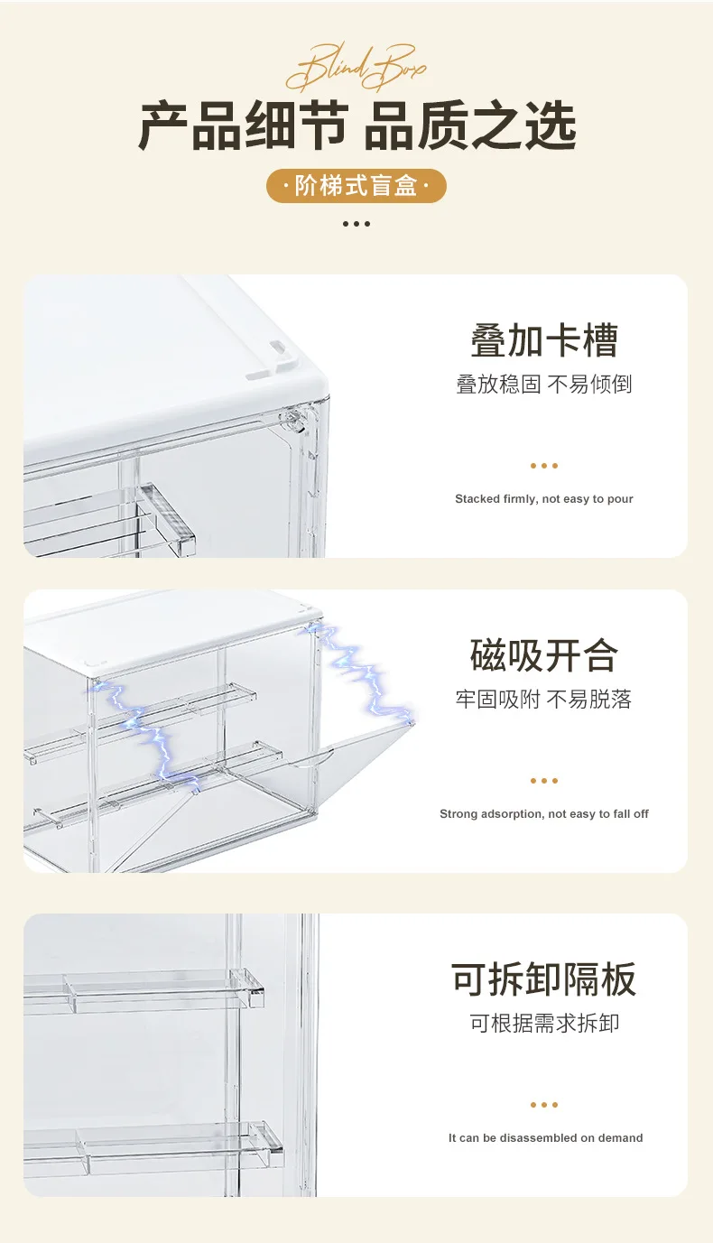 - > Nova caixa de armazenamento de caixa cega acrílica de três camadas, para figuras colecionáveis e caixa cega brinquedos figuras de ação caixa organizadora de mesa